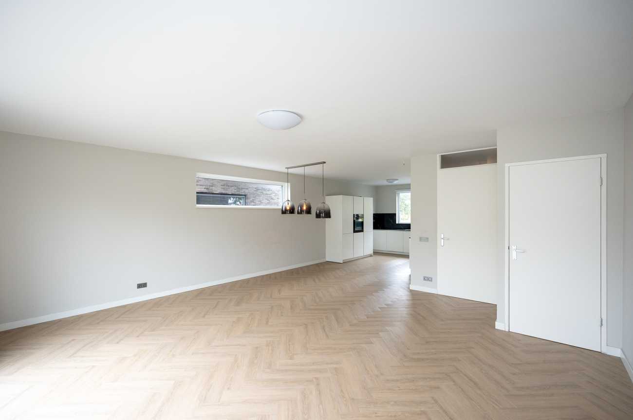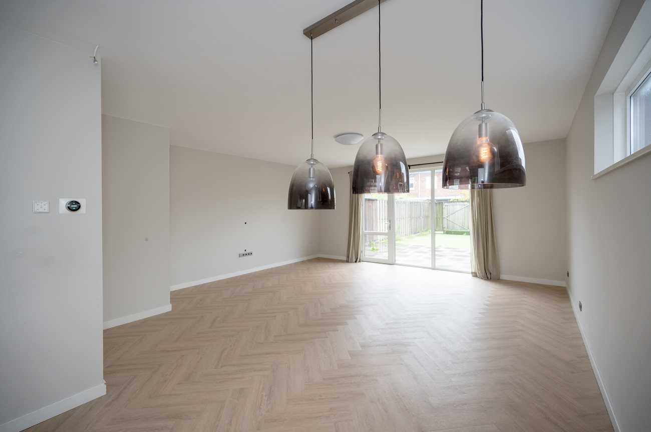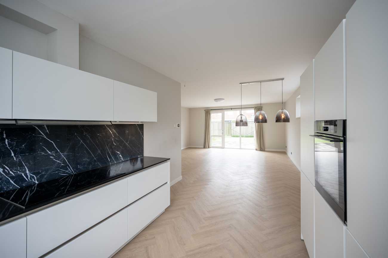 Upon entering the house, you enter the spacious entrance hall. From this hall, you have access to the modern tiled toilet with a hand basin, the meter cupboard, and the staircase to the first floor. The hall also provides access to the living area of ??the house. At the front of the house is the open-plan kitchen, which, thanks to the windows, not only receives plenty of natural light but also offers unobstructed views of the city canal and the adjacent Cascade Park. The kitchen has a practical layout and is equipped with various built-in appliances, including a ceramic hob, an oven, a refrigerator, a dishwasher, and an extractor hood. This fully equipped kitchen offers ample work and storage space. Adjacent to the spacious and inviting living room, which, thanks to the large windows at the rear and French doors leading to the garden, provides a bright and pleasant living space. The backyard is conveniently located south-facing, allowing you to enjoy optimal sunlight throughout the day. Both the living room and the hallway feature a high-quality finish with a stylish herringbone PVC floor. This floor is equipped with comfortable underfloor heating, contributing to a pleasant indoor climate throughout the year.