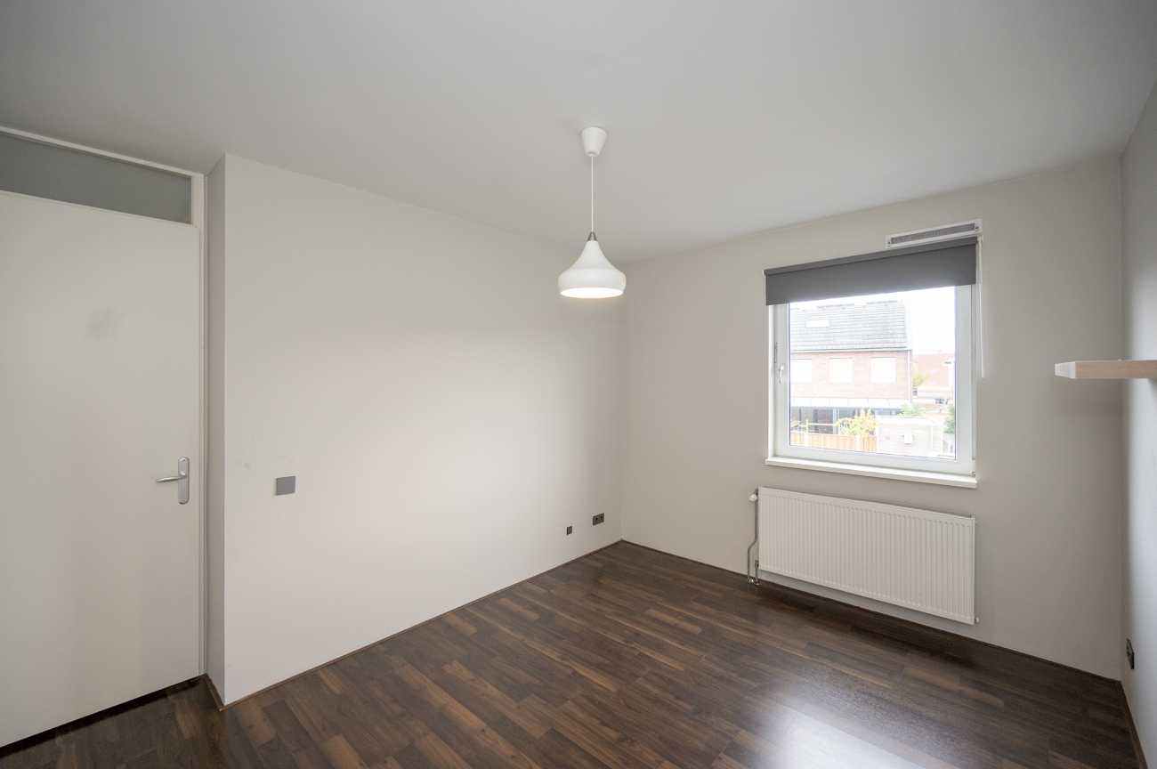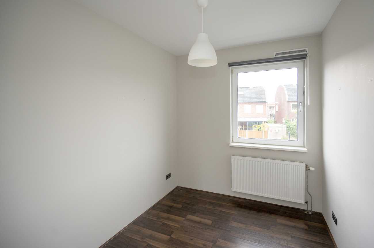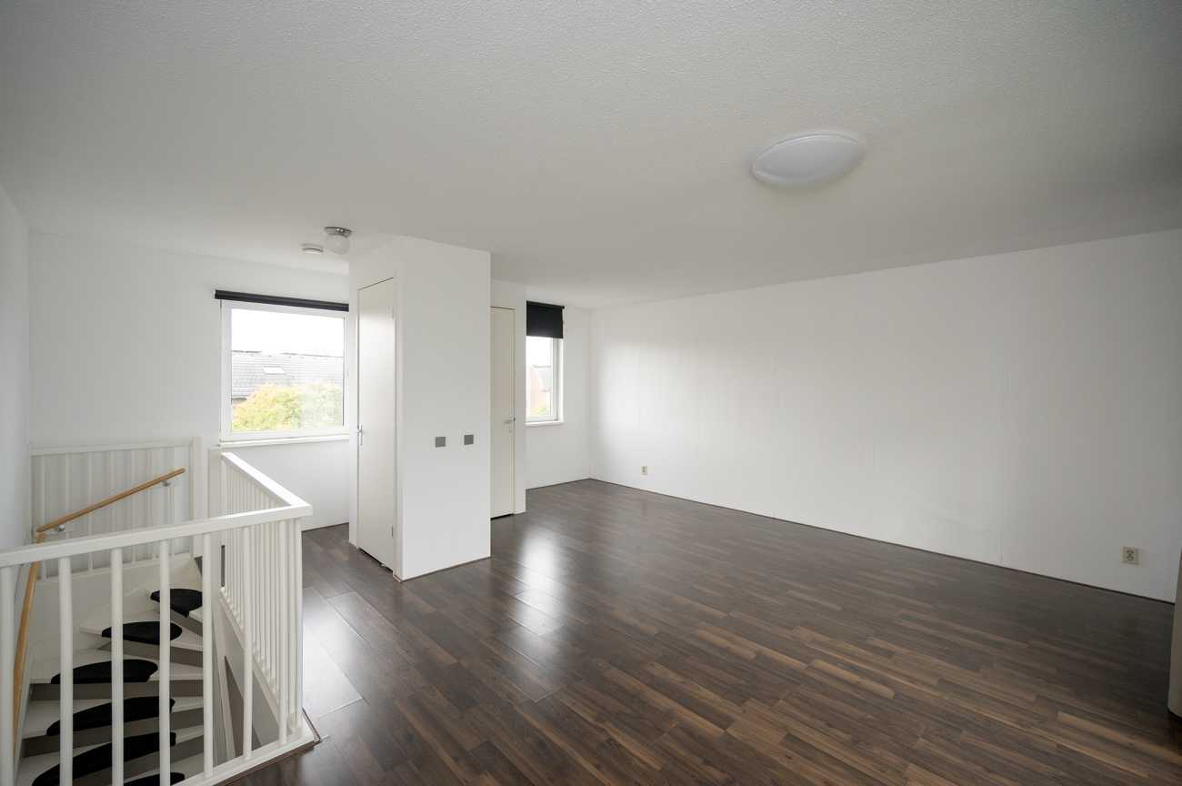 De tweede verdieping van de woning biedt een royale, multifunctionele ruimte die zich uitstrekt over de volledige lengte van het huis. Deze kamer is uitstekend voor gebruik als extra slaapkamer, werkkamer, hobbyruimte of zelfs als combinatie van meerdere functies. Aan de voorzijde beschikt de ruimte over twee grote openslaande deuren die toegang geven tot een zogenoemd Frans balkon. Vanaf deze plek heeft u een vrij en weids uitzicht over de aangrenzende stadsgracht en het groenrijke Cascadepark. Aan zowel de voor- als achterzijde zorgen de aanwezige raampartijen voor een overvloed aan natuurlijk daglicht, waardoor de gehele verdieping een zeer lichte en ruimtelijke indruk maakt. De vloerafwerking op deze verdieping bestaat, net als op de eerste verdieping, uit een kwalitatieve laminaatvloer in een warme houttint. De ruimte kan eventueel middels een wand in twee aparte kamers worden opgedeeld, waardoor de woning over 5 slaapkamers beschikt.