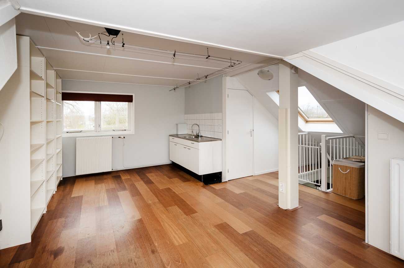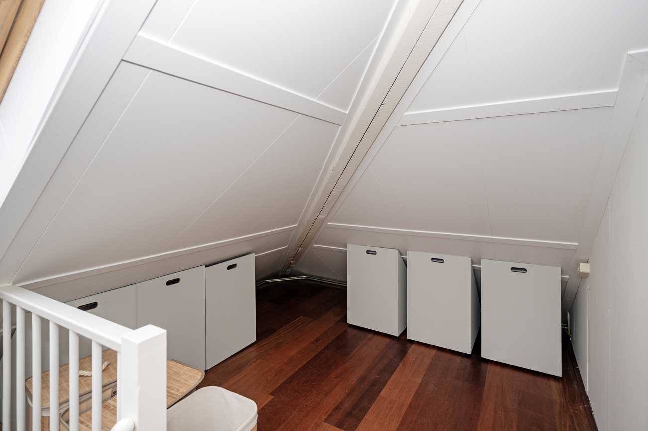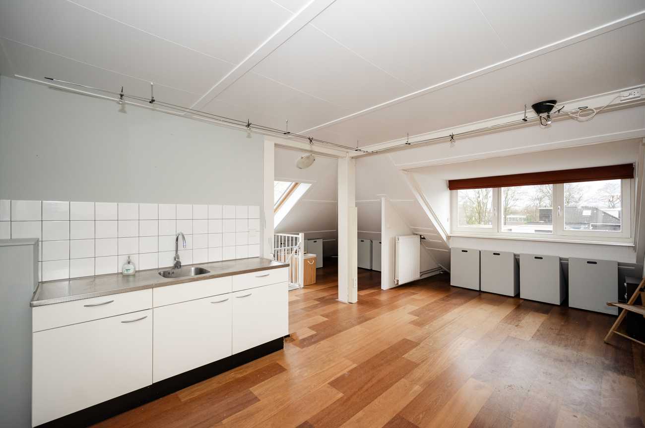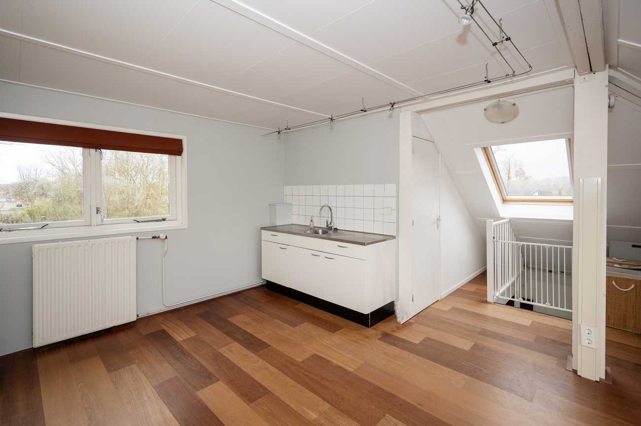 Via de vaste trap bereikt u de tweede verdieping. Deze ruime zolder is voorzien van een keukenblok en beschikt over een aparte cv-ruimte met aansluiting voor de wasmachine.