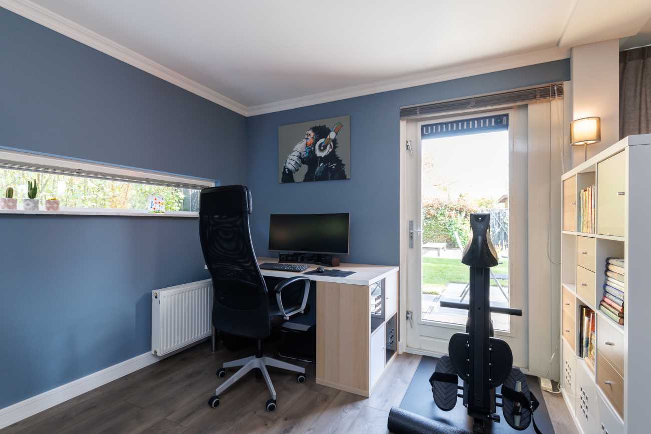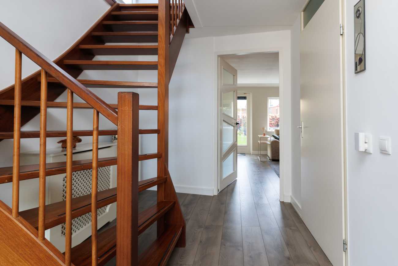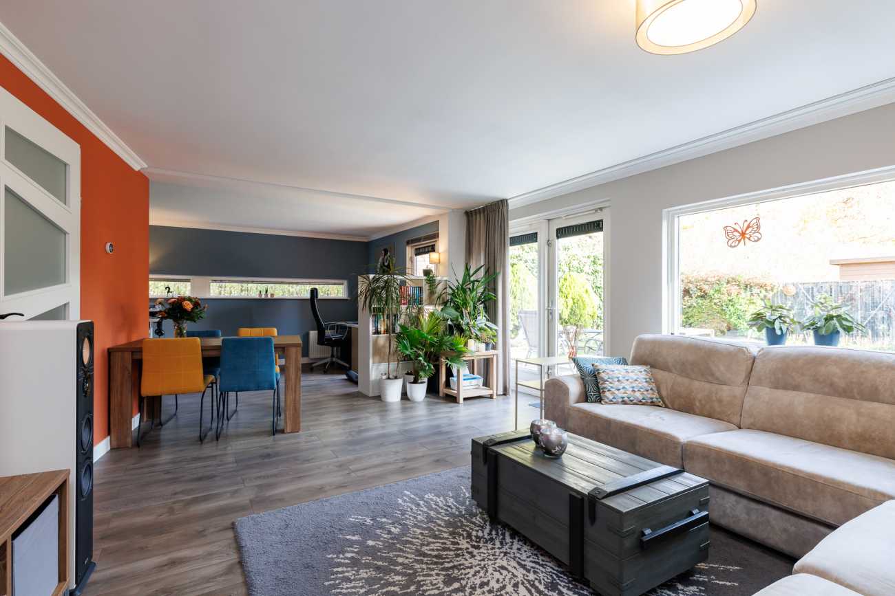 Via de oprit waar u meerdere auto’s kunt parkeren, komt u de woning via de entree binnen. De hal is voorzien van veel ramen aan de voorzijde van de woning, waardoor deze een mooie natuurlijke lichtinval heeft. In de hal treft u het toilet, de meterkast, toegangsdeur naar de inpandige garage, de trapopgang naar boven en de toegangsdeur naar de woonkamer. De tuingerichte woonkamer beschikt over openslaande deuren en een aparte deur naar de achtertuin en is voorzien van een nette laminaat vloer met vloerverwarming als bijverwarming. De woonkamer kijkt mooi uit over de achtertuin en voelt knus en huiselijk aan. Doordat er ook ramen aan de zijkant van de woning zijn, treedt er gedurende de dag veel daglicht naar binnen. De half open keuken bevindt zich aan de voorzijde van de woning. Deze is voorzien van veel kastenruimte, een dubbele spoelbak en een granieten werkblad. U komt hier niks tekort want u kunt gebruik maken van inbouwapparatuur waaronder een vaatwasser, oven en combimagnetron. In het midden van de keuken bevindt zich een kookeiland met inductie kookplaat en afzuigkap. Hier kunt u ook plaats nemen aan het barretje, dus gezellig om even bij te kletsen tijdens het koken!