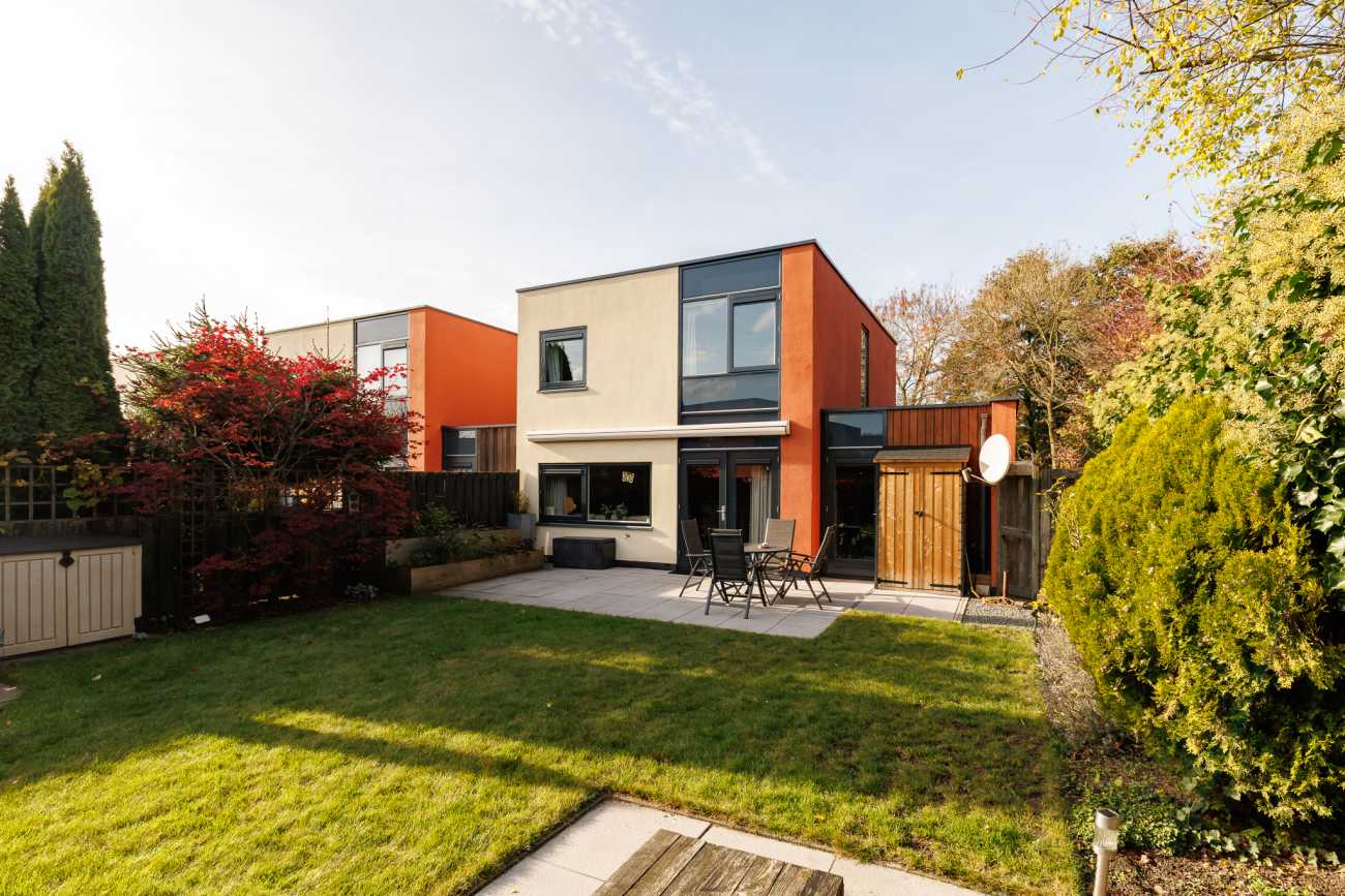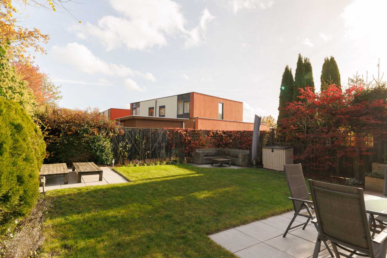 Aan de achterzijde is de woning omgeven door een extra brede en verzorgd aangelegde tuin. De achtertuin beschikt over meerdere terrassen, zodat u ieder moment van de dag een fijne plek heeft om te loungen. Hij is gelegen op het zuidoosten en door de ruime oppervlakte kunt u hier vanaf de ochtend tot einde van de dag van de zon genieten. U vindt hier diverse beplanting, een mooie groene heg als afscheiding en in het middenstuk gras. De ligging aan het fietspad en groen maakt dat u hier extra veel privacy heeft om in alle rust van de groene omgeving te genieten. Er is tevens een elektrisch zonnescherm aanwezig, waardoor het ook tijdens de warmere maanden heerlijk vertoeven is. U kunt de achtertuin via de woonkamer en zijkant via de poortdeur betreden.