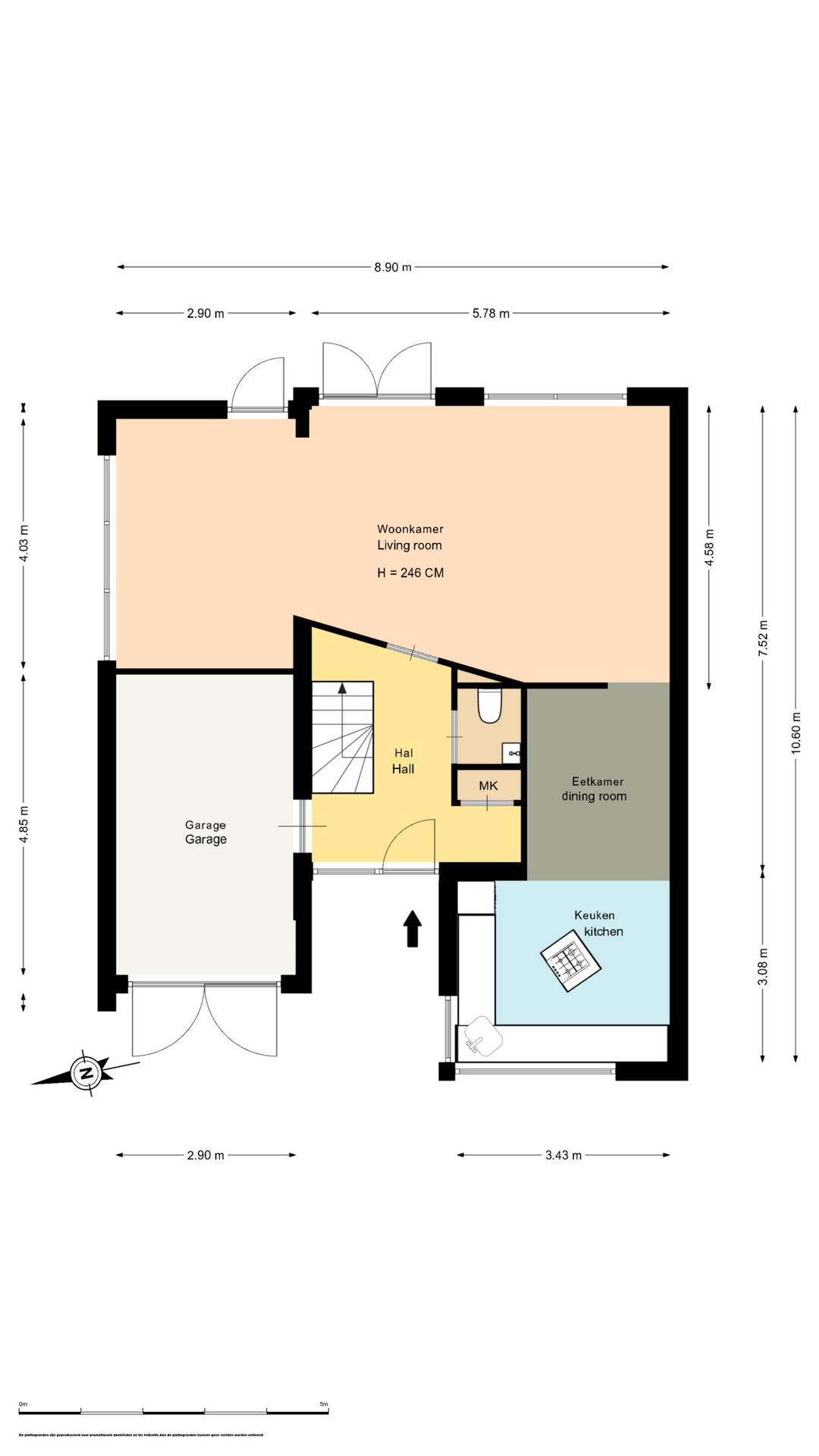The garage has an area of ??approximately 14 m². It can be accessed both from inside the hallway and from outside through double doors. The garage can be used for multiple purposes and, with a few modifications, can also be incorporated into the living area. This is useful if, for example, you want an extra bedroom downstairs. Of course, it’s also very convenient to use the garage as a storage room or utility room, as you can store a large number of items there.