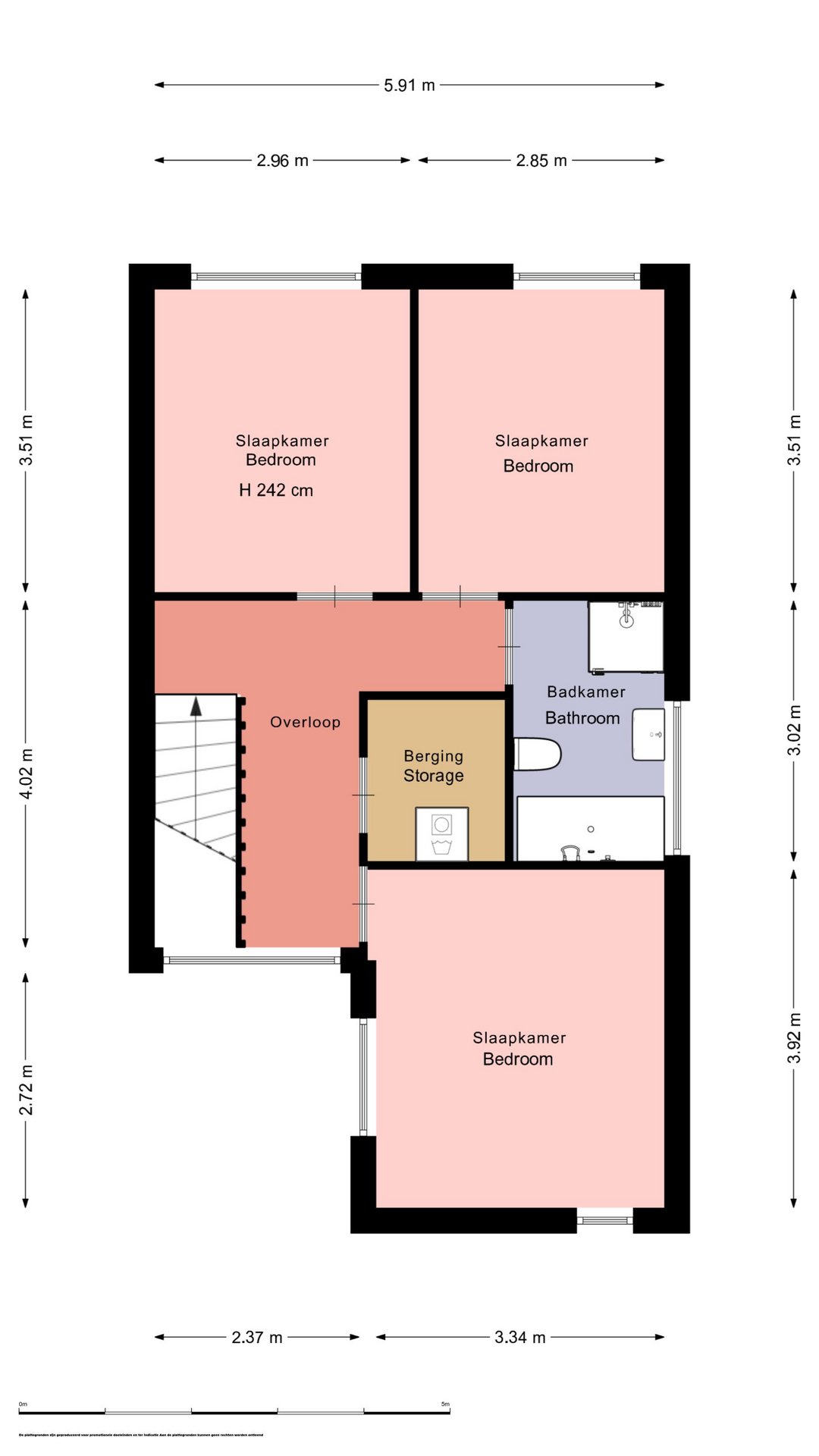 Via de trap bereikt u de heerlijk lichte overloop met toegang tot alle ruimtes. Op deze verdieping vindt u drie slaapkamers, de badkamer en een berging met wasmachineaansluiting. De grootste slaapkamer bevindt zich aan de voorzijde van de woning, de twee overige zijn aan de achterzijde gelegen. Alle kamers hebben een prima daglicht toetreding en de wanden en plafonds zijn netjes afgewerkt. De gehele verdieping is voorzien van een laminaat vloer. De badkamer is volledig betegeld en voorzien van een ligbad, douche, tweede toilet, wastafel en design radiator.