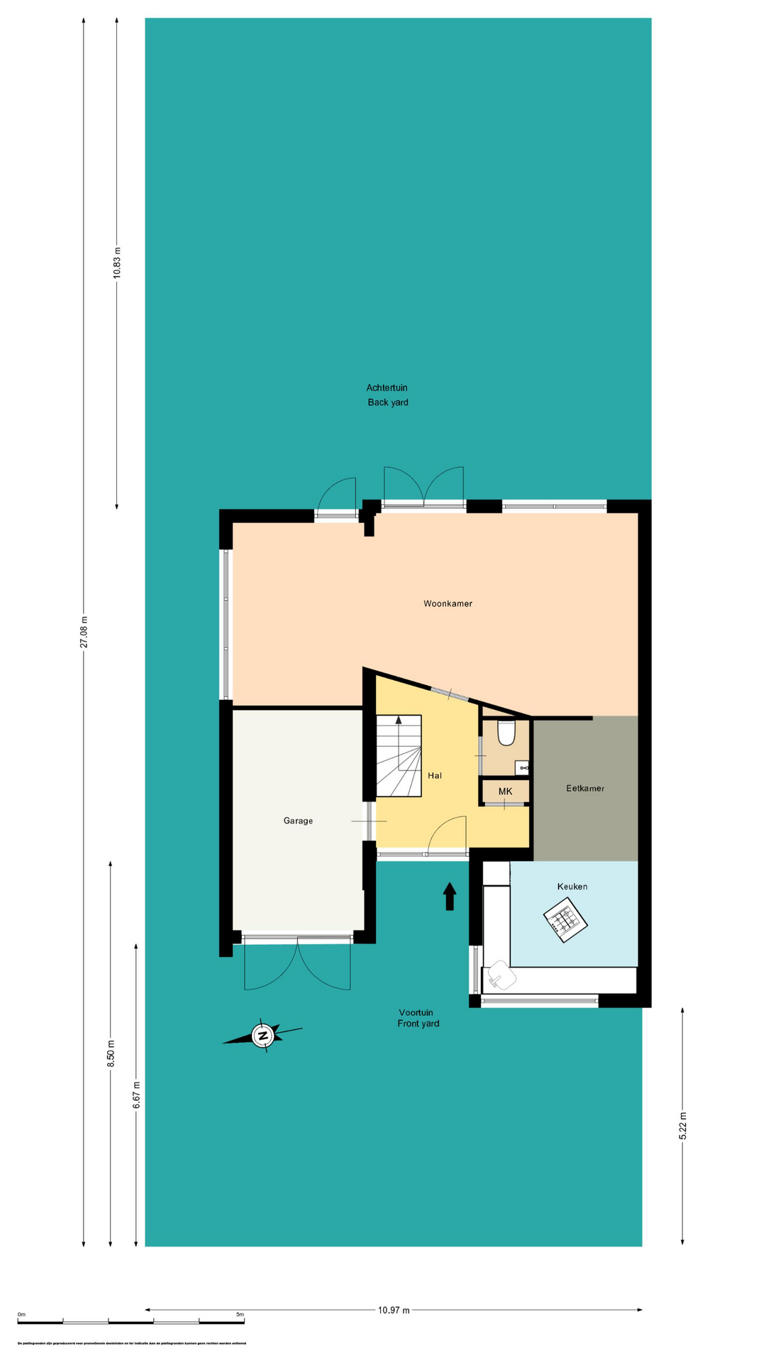De garage heeft een oppervlakte van circa 14 m2. Hij is zowel vanuit binnen via de hal te betreden als via buiten middels de dubbele deuren. De garage is voor meerdere doeleinden te gebruiken en met een aantal aanpassingen kan hij ook tot het woonoppervlak behoren. Dit is interessant wanneer u bv. een extra slaapkamer beneden wilt. Uiteraard is het ook erg prettig om de garage als berging of bijkeuken te benutten, want u kunt hier heel veel spullen opslaan.