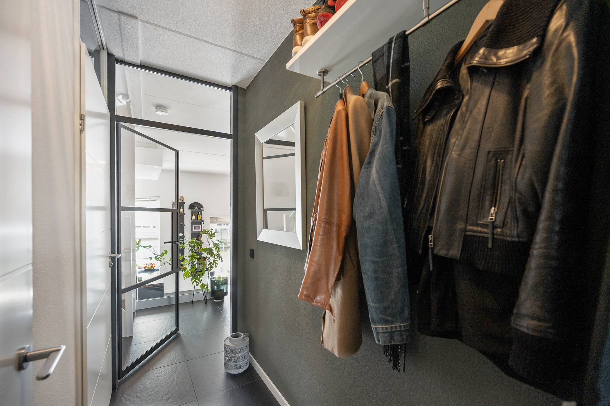 Via de ruime voortuin, die volledig te benutten is en beschikt over een eigen laadpaal, bereikt u de entree van de woning. Vanuit de voortuin is tevens de inpandige berging toegankelijk. Binnenkomst in de hal met toegang tot de inpandige berging, een separaat toilet en de woonkamer.