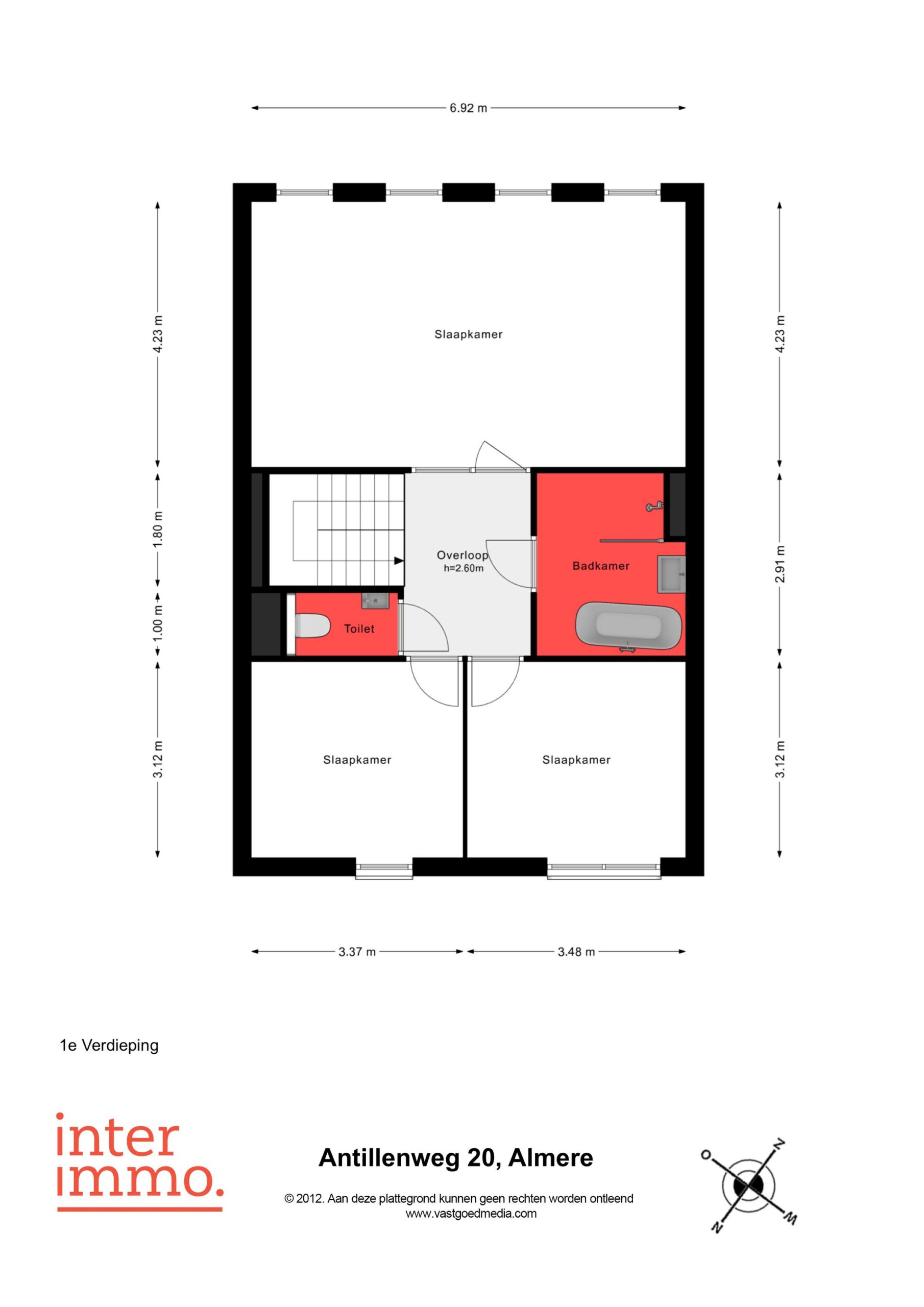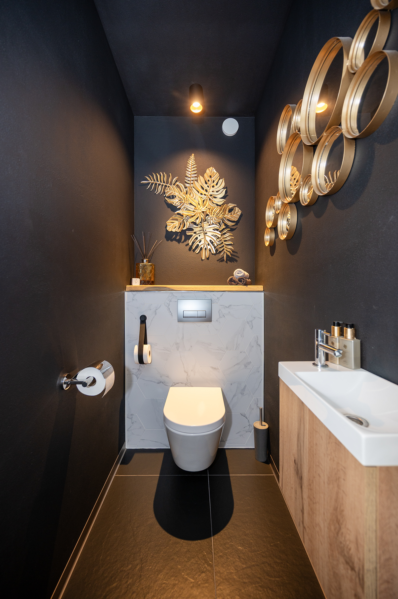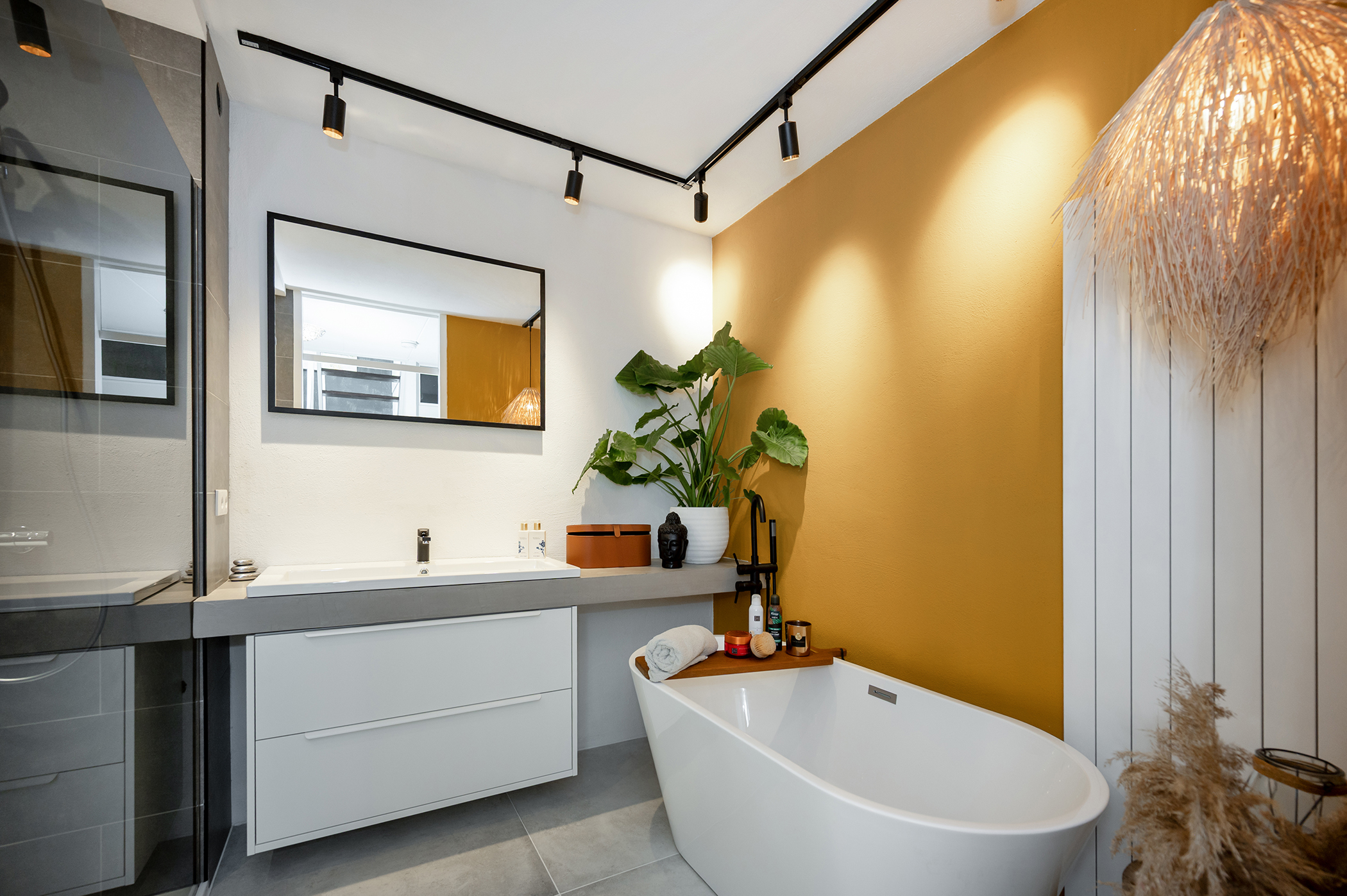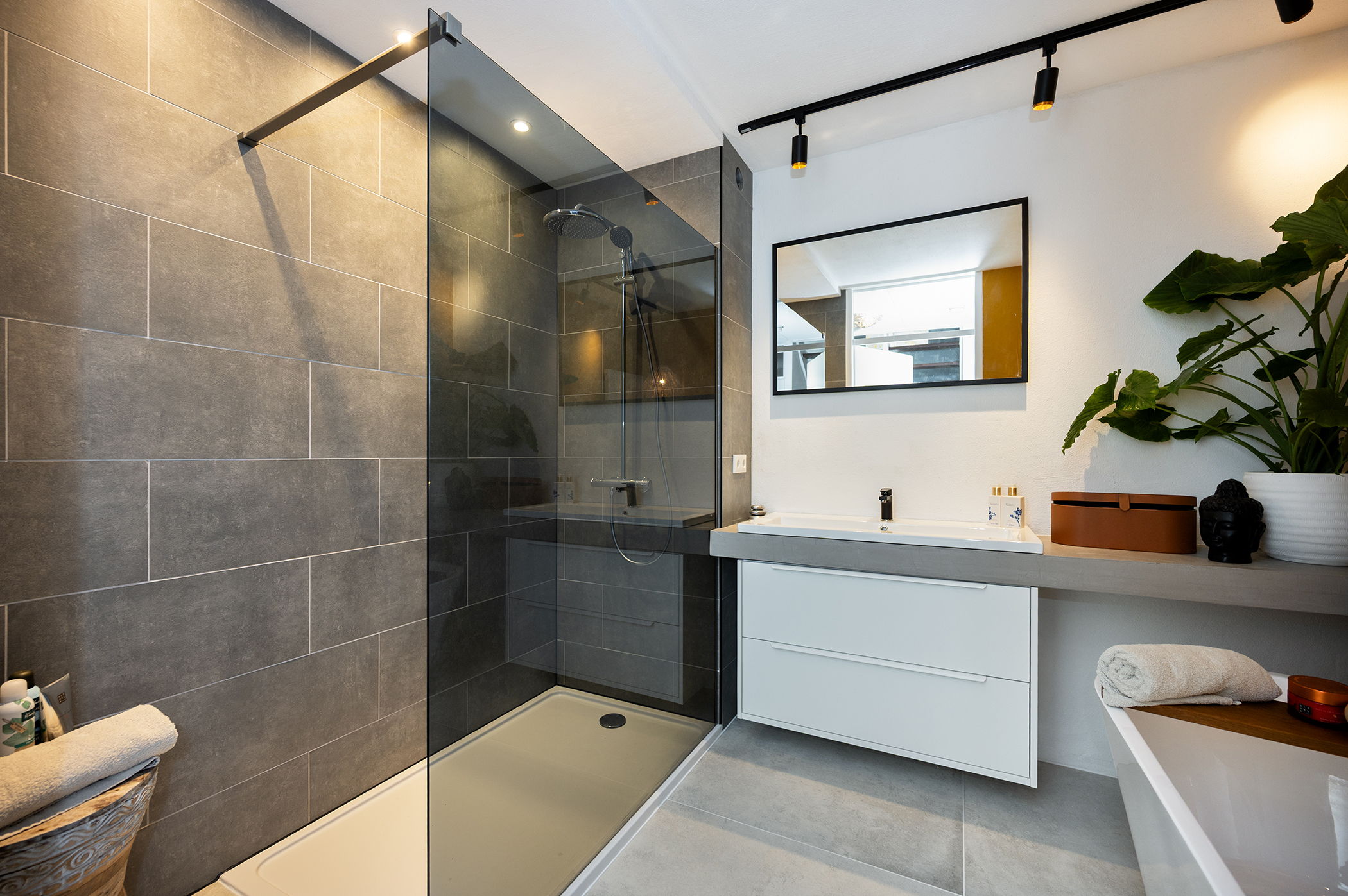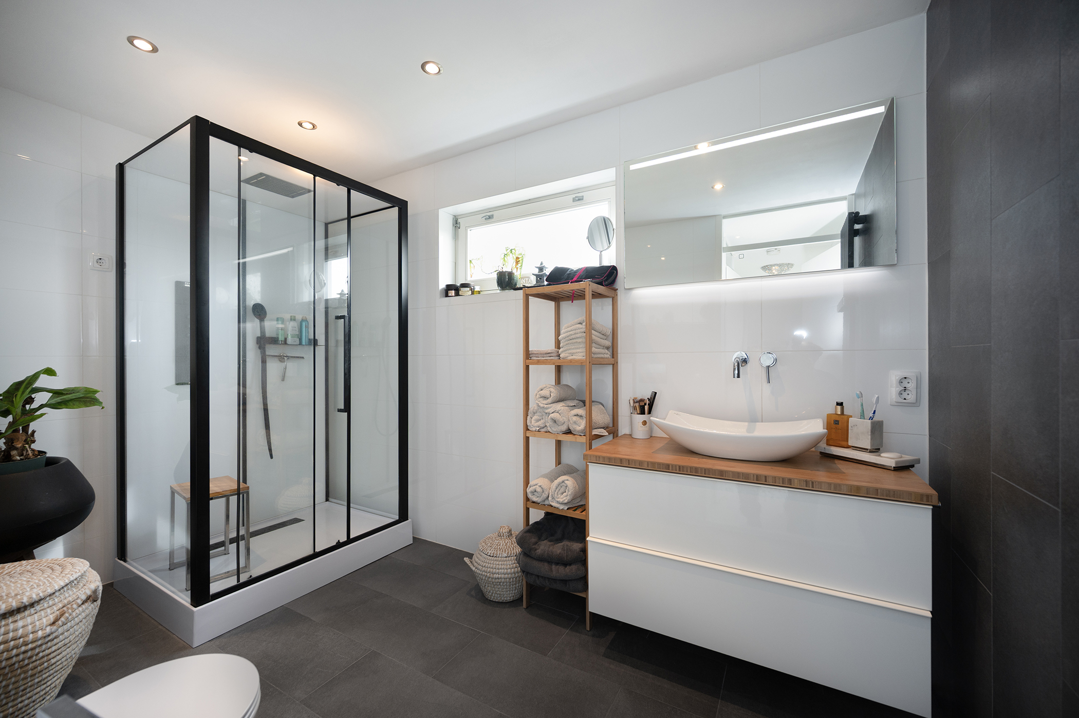 De ruime overloop beschikt over een separaat toilet, wat een groot pluspunt is. De recent vernieuwde badkamer is modern en strak afgewerkt, voorzien van een inloopdouche, vrijstaand bad en een stijlvol wastafelmeubel.