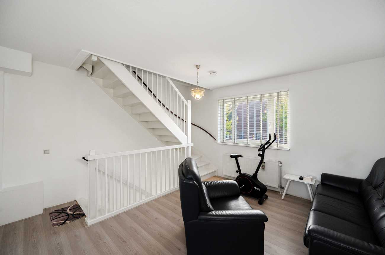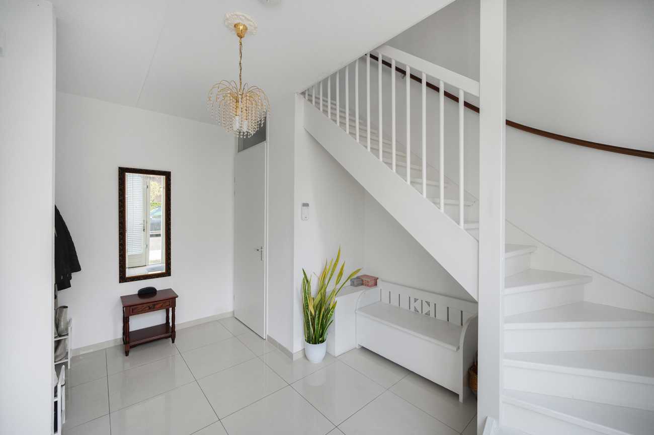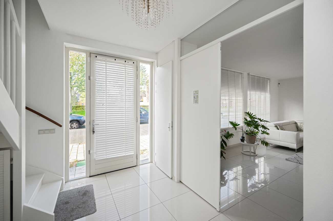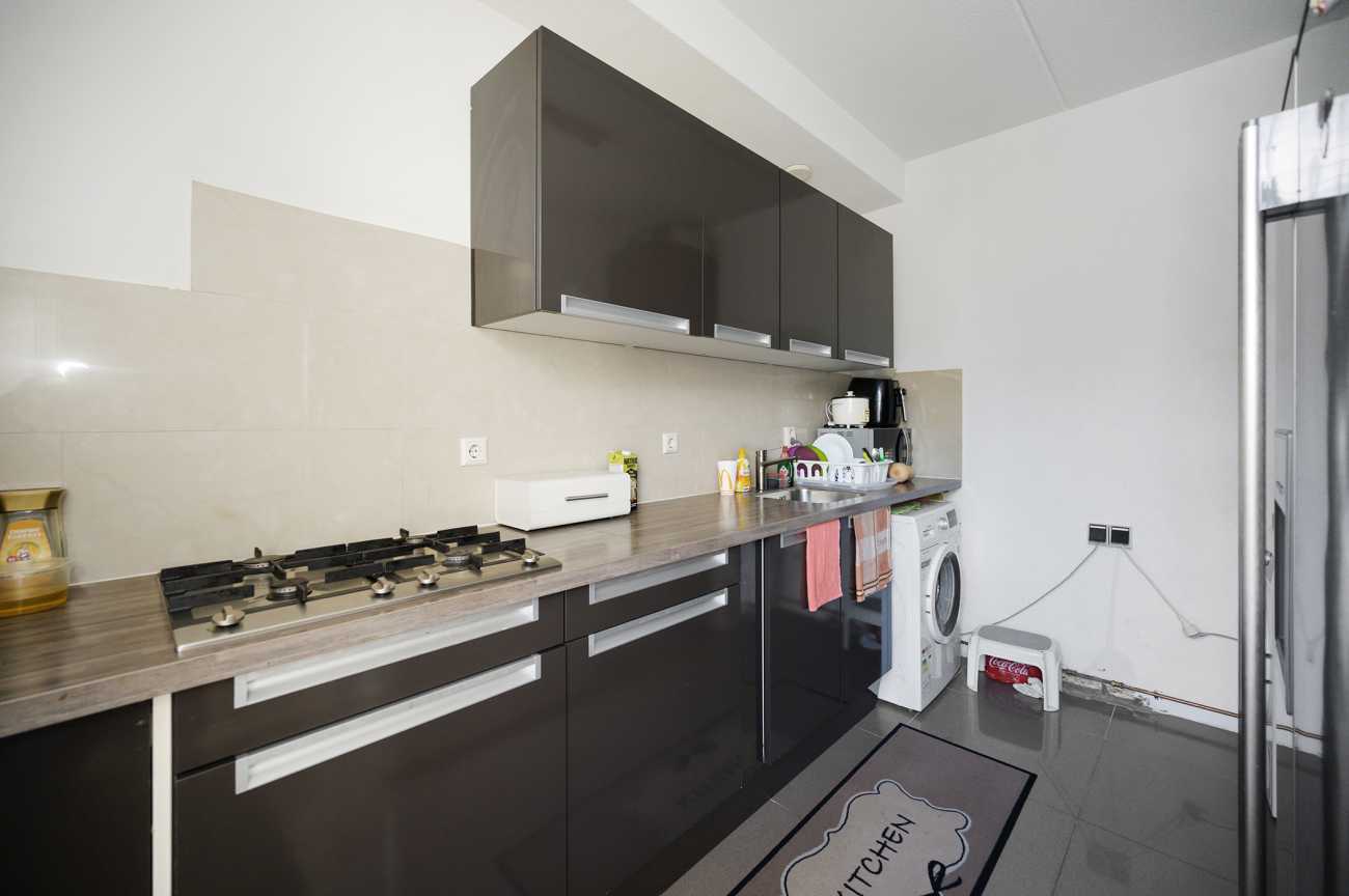 Via de entree met hal en apart toilet bereikt u de woonkamer. De woonkamer is ruim opgezet en voorzien van een lichte tegelvloer met vloerverwarming. Dankzij de grote ramen aan de voorzijde komt er veel natuurlijk licht binnen, wat de ruimte extra aangenaam maakt. Aan de achterzijde van de woning bevindt zich de eetkamer met de half open keuken. De moderne witte keuken is voorzien van een donker werkblad en is uitgerust met diverse inbouwapparatuur, waaronder een oven, magnetron, koel-vriescombinatie, kokend waterkraan en een inductiekookplaat met afzuiging. Direct naast de keuken vindt u de praktische bijkeuken met extra opbergruimte en aansluiting voor witgoed.