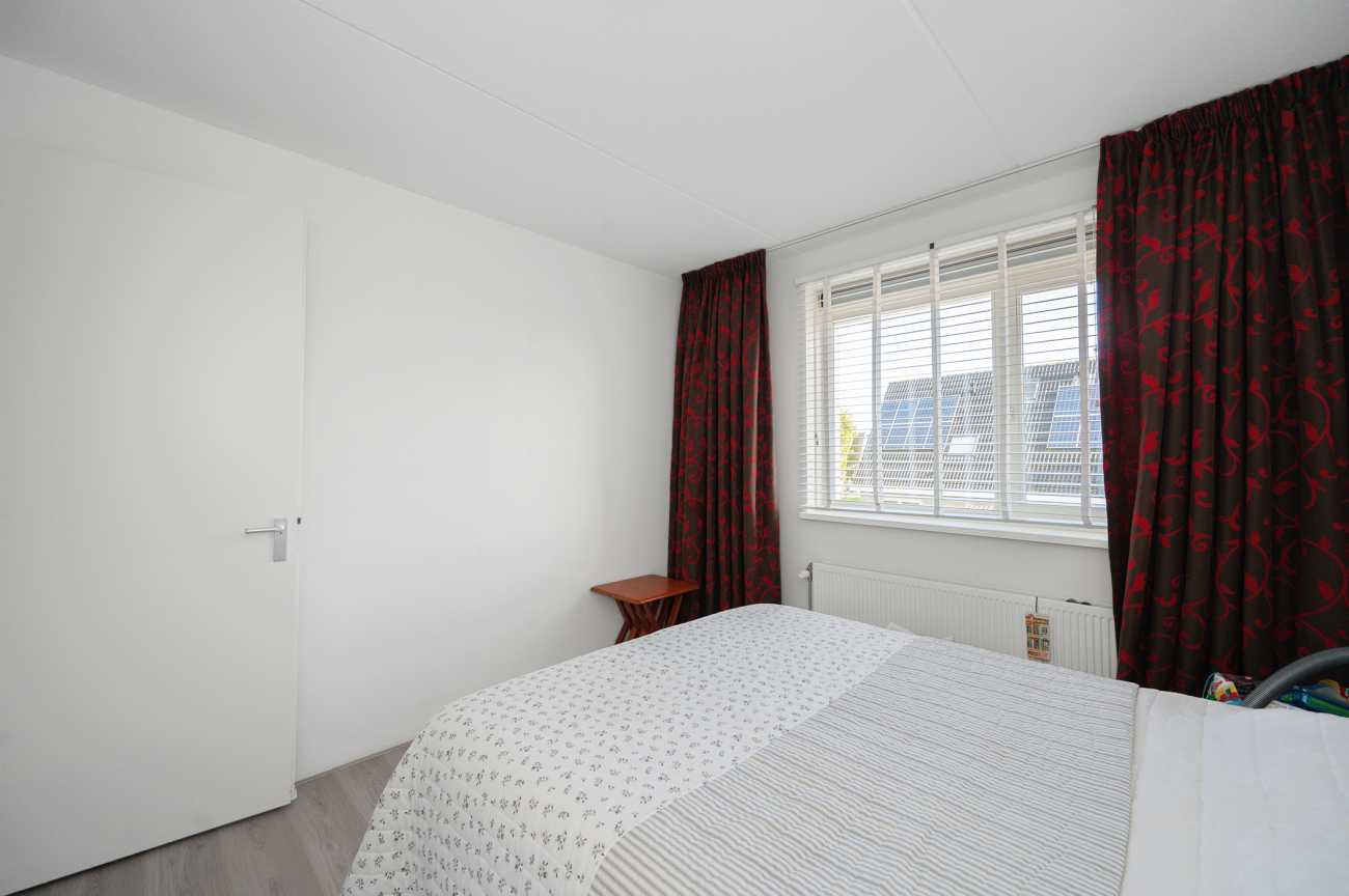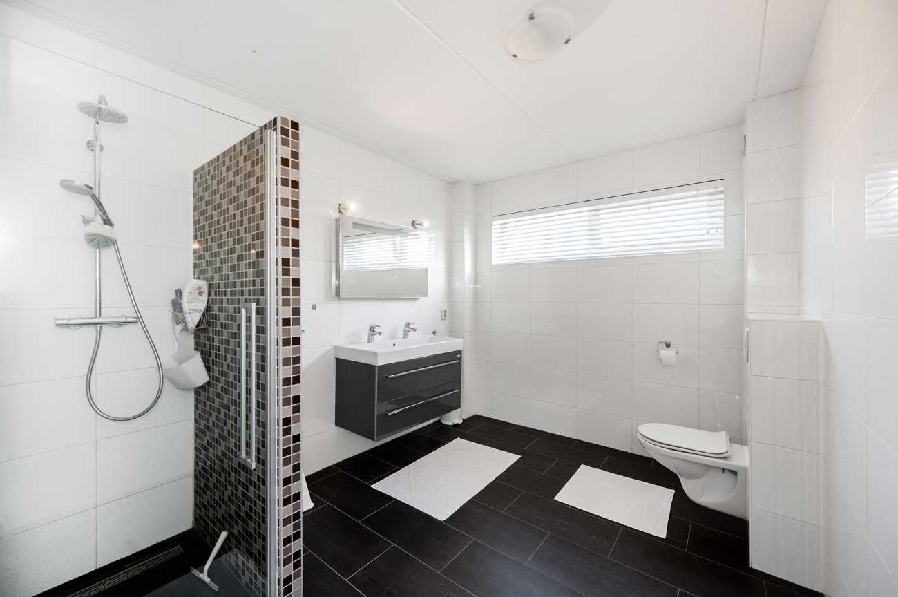 De ruime eerste verdieping beschikt over twee goed bemeten slaapkamers, waarvan één is uitgerust met een praktische inloopkast. Dankzij de grote raampartijen genieten alle vertrekken van een aangename hoeveelheid natuurlijk licht. De kamers lenen zich uitstekend voor gebruik als hoofdslaapkamer, kinderkamer of als comfortabele werk- of hobbyruimte. De gehele verdieping is voorzien van een nette laminaatvloer. De badkamer is royaal van opzet en volledig betegeld tot aan het plafond. Hier vindt u een wastafelmeubel, een ruime douche en een tweede toilet, de badkamer is voorzien van vloerverwarming.