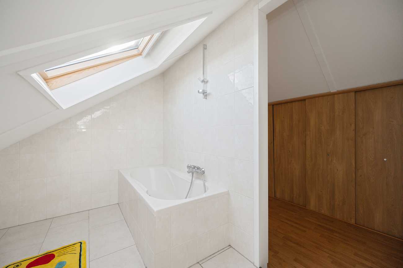 Vanaf de ruime overloop heeft u toegang tot twee slaapkamers. Achter de knieschotten bevindt zich extra bergruimte. Daarnaast is op deze verdieping een tweede badkamer gerealiseerd, die is voorzien van een (3e)toilet, wastafel en een ligbad.