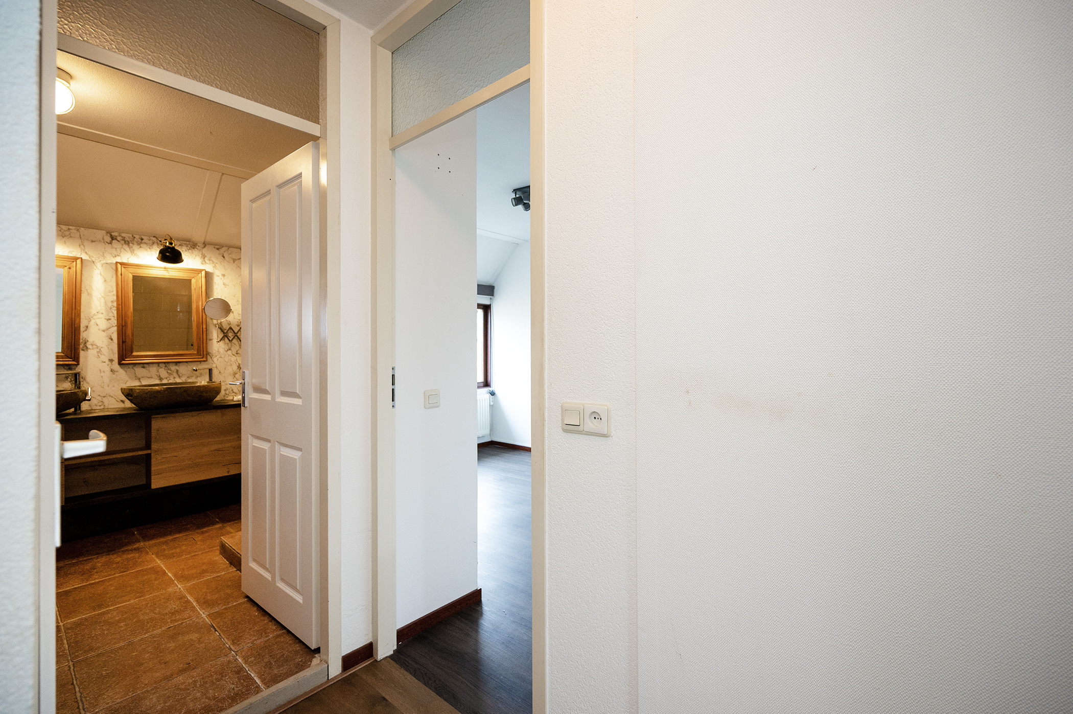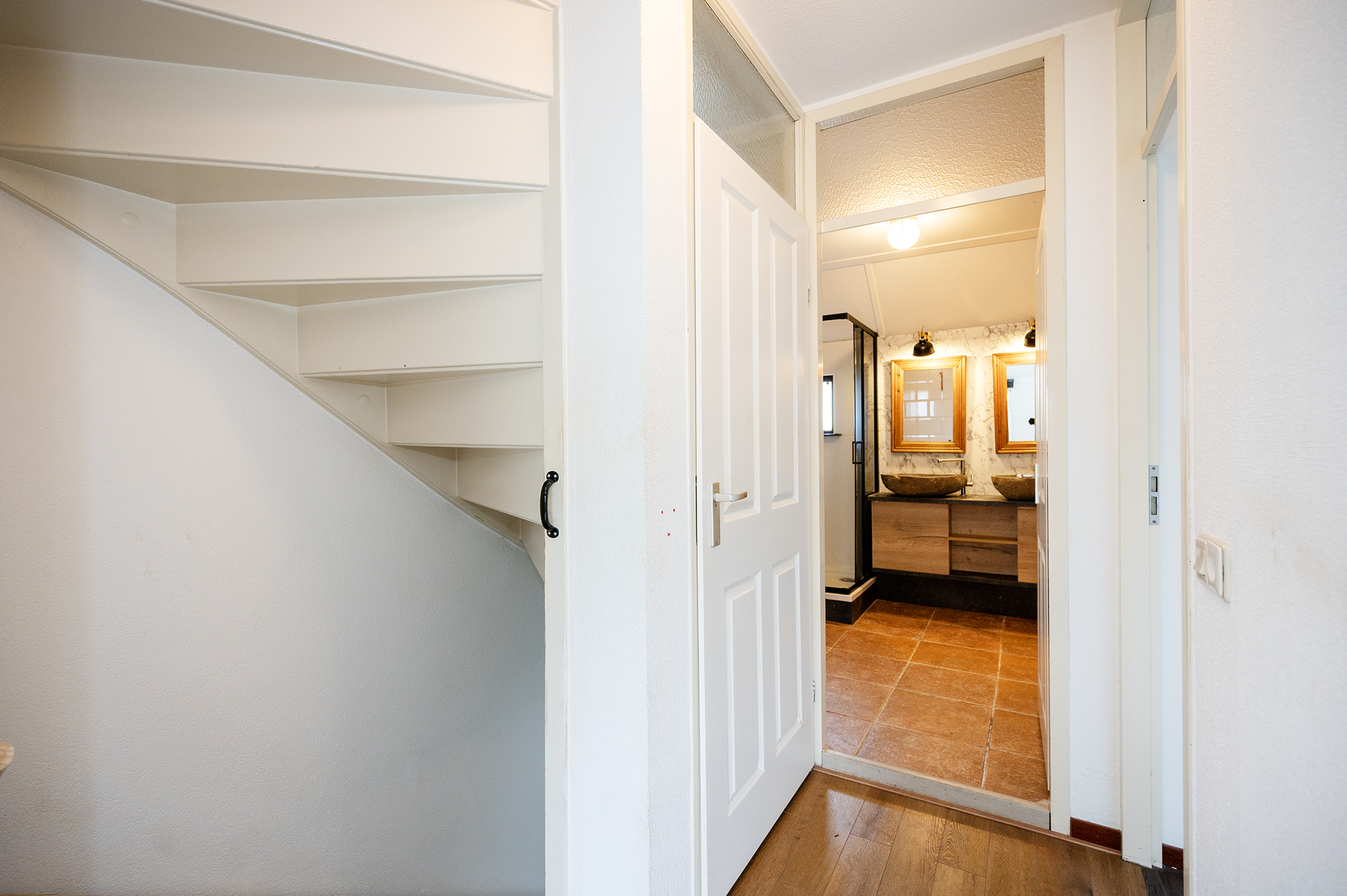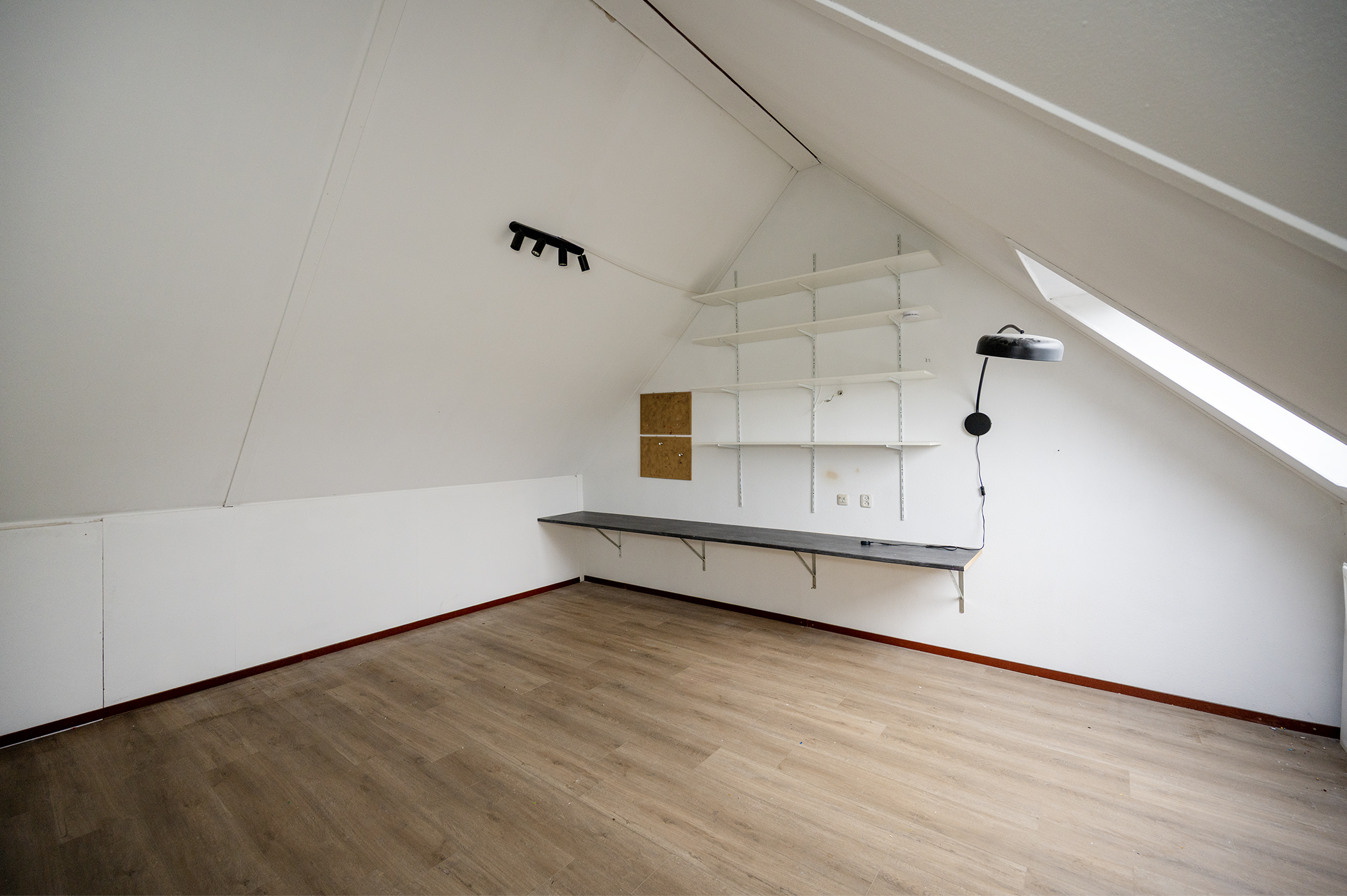 De vaste trap leidt naar de ruime open zolder. Deze verdieping is netjes afgewerkt en biedt plaats aan bijvoorbeeld een werkplek, logeerruimte of hobbykamer.