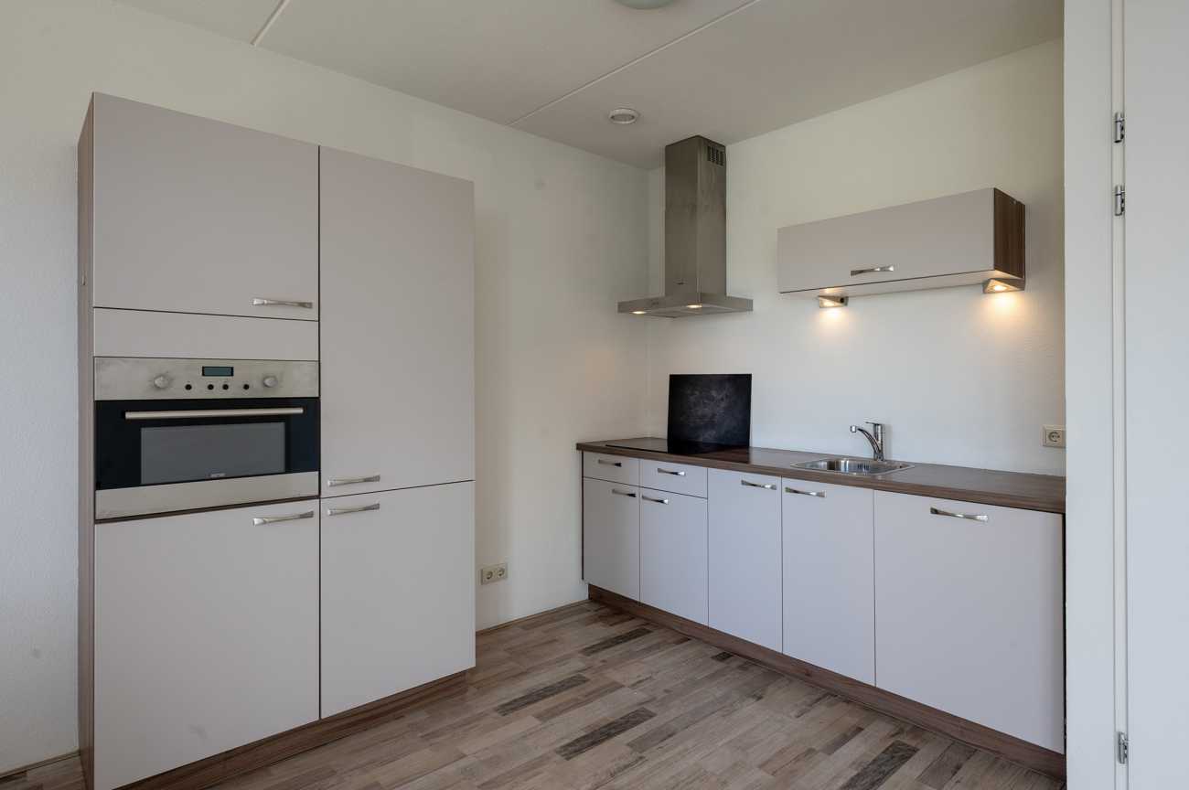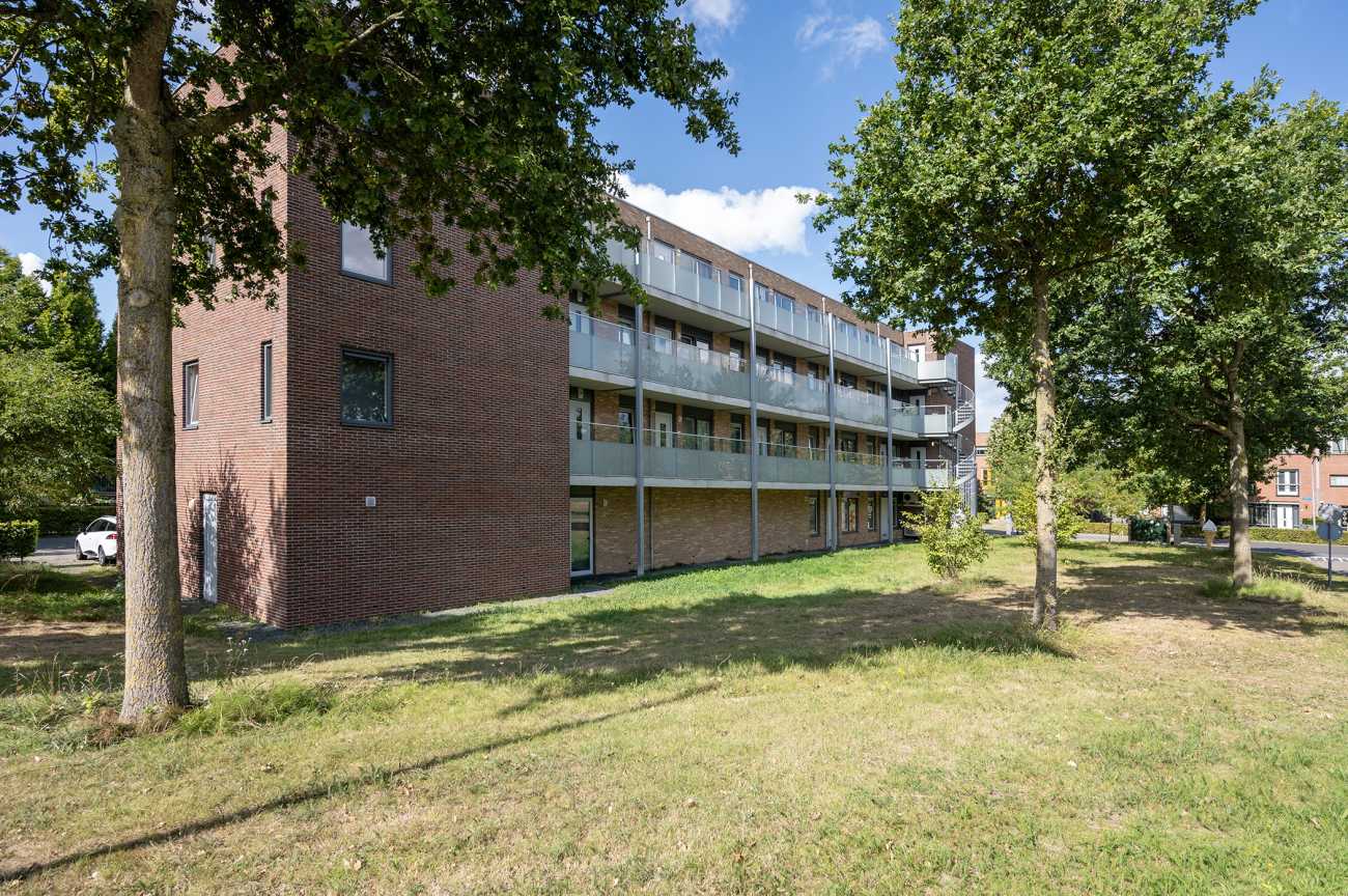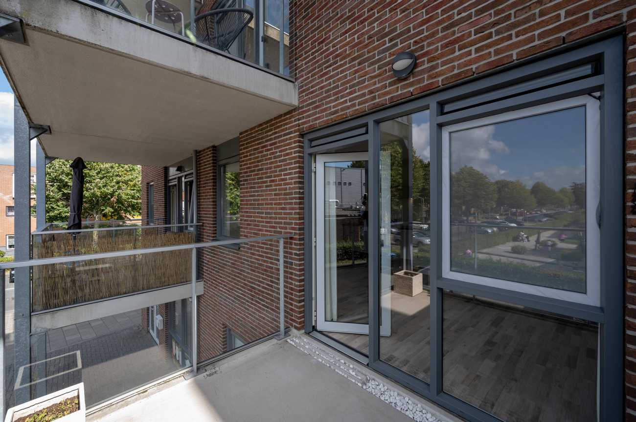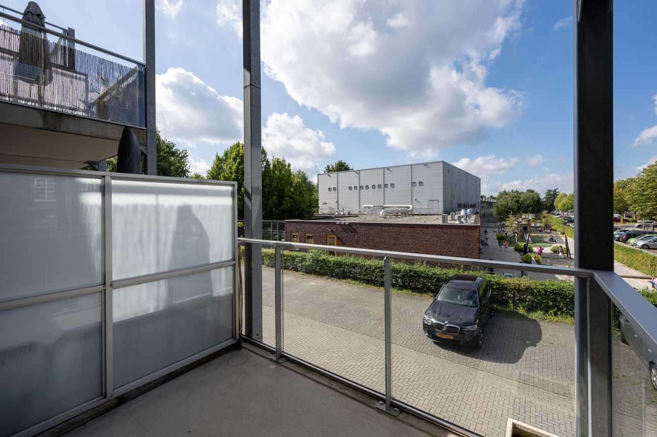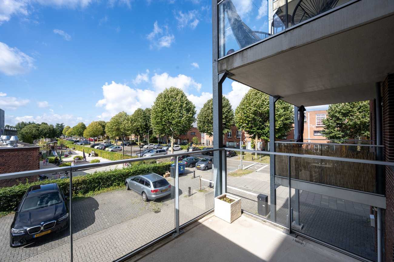 Het appartement is gelegen op de eerste verdieping en is voorzien van een nette laminaatvloer, wat bijdraagt aan een verzorgde en moderne uitstraling. Via de entree betreedt u de hal, waar zich de meterkast bevindt en van waaruit u toegang heeft tot alle vertrekken van de woning. De woonkamer is licht en ruim opgezet, met grote raampartijen die zorgen voor veel natuurlijke lichtinval. Vanuit de woonkamer heeft u toegang tot het balkon, dat is gesitueerd op het zuidwesten. Het balkon biedt een vrij uitzicht over de omgeving en is een prettige buitenruimte om te ontspannen tijdens de zonnige dagen. De open keuken is modern ingericht en volledig uitgerust met hoogwaardige inbouwapparatuur, waaronder een inductiekookplaat, afzuiger, combi-oven, vaatwasser en een koel-vriescombinatie. Hierdoor is de keuken zowel praktisch als stijlvol, en biedt deze alle gemakken voor dagelijks gebruik. Het appartement beschikt over twee ruime slaapkamers, beide gelegen aan de voorzijde van de woning. De badkamer heeft een moderne afwerking en is voorzien van een inloopdouche, een vrijhangend toilet en een wastafelmeubel, wat bijdraagt aan een strakke en eigentijdse uitstraling.