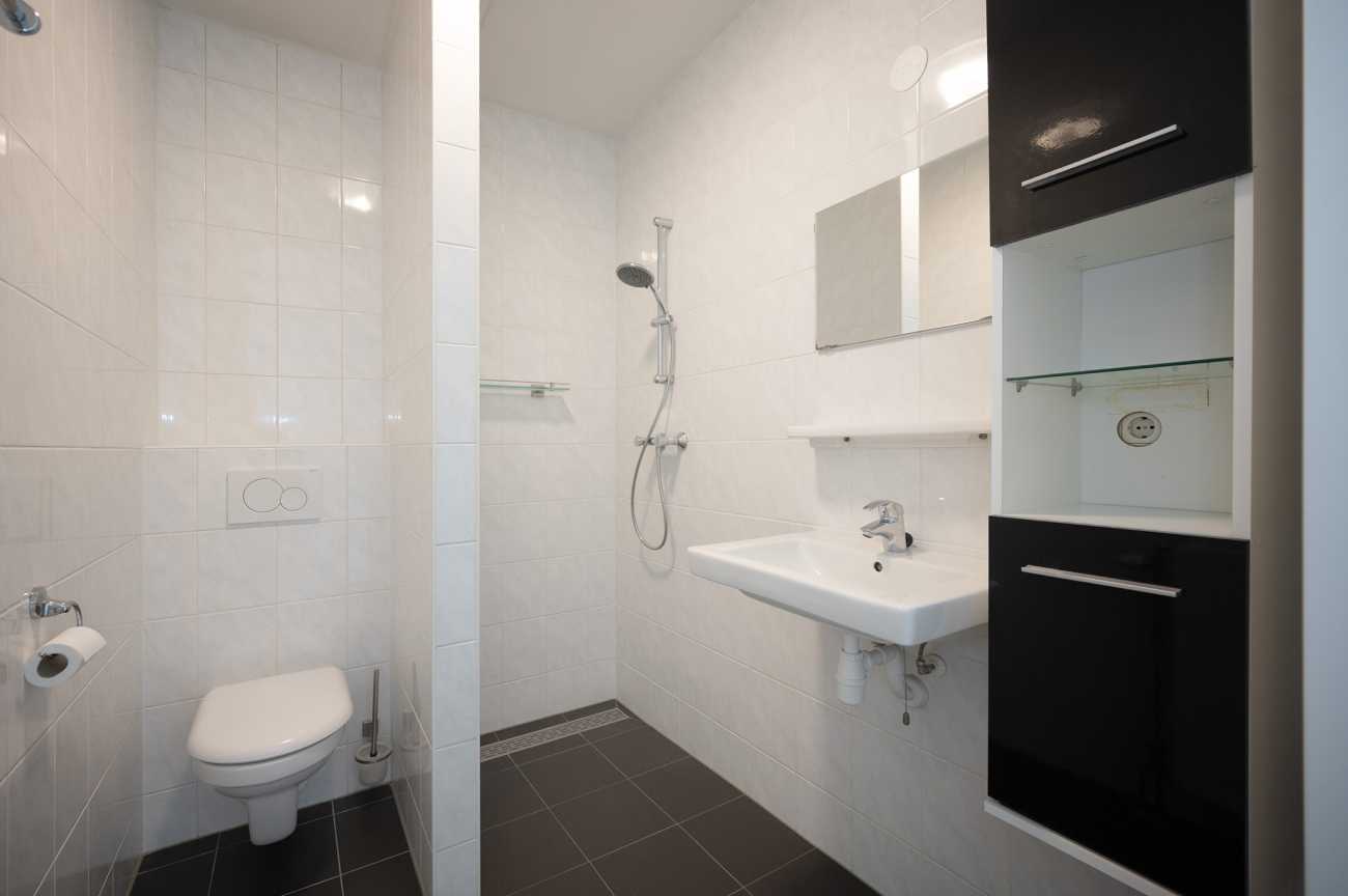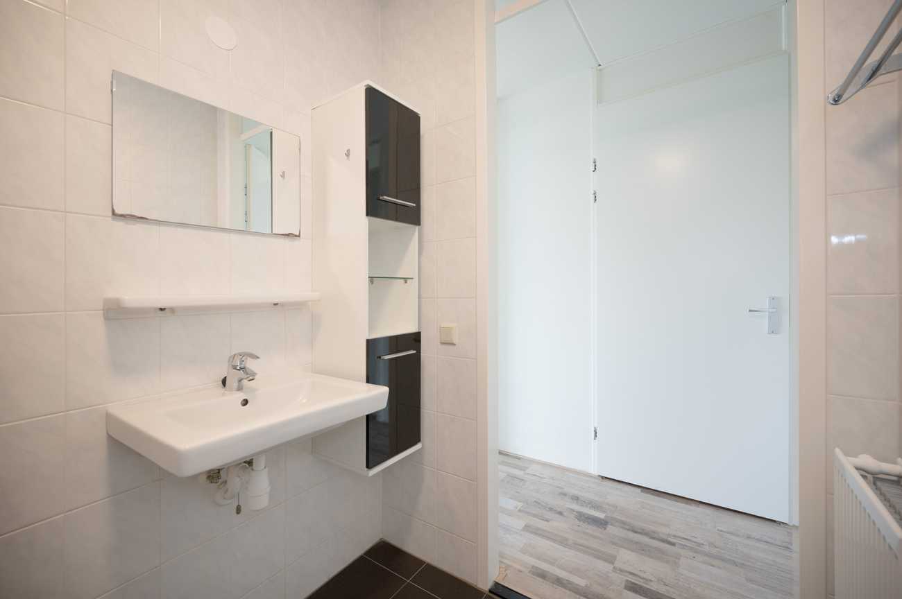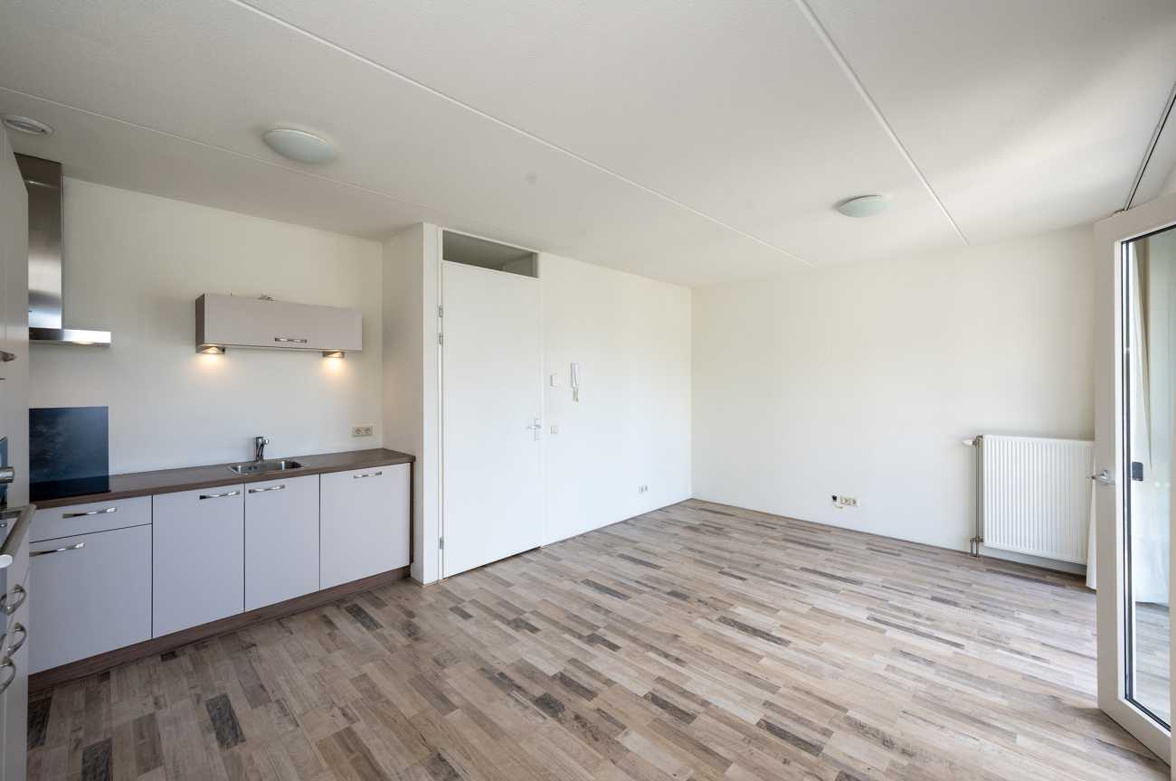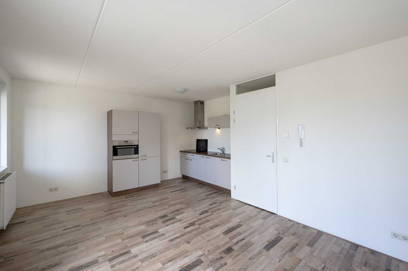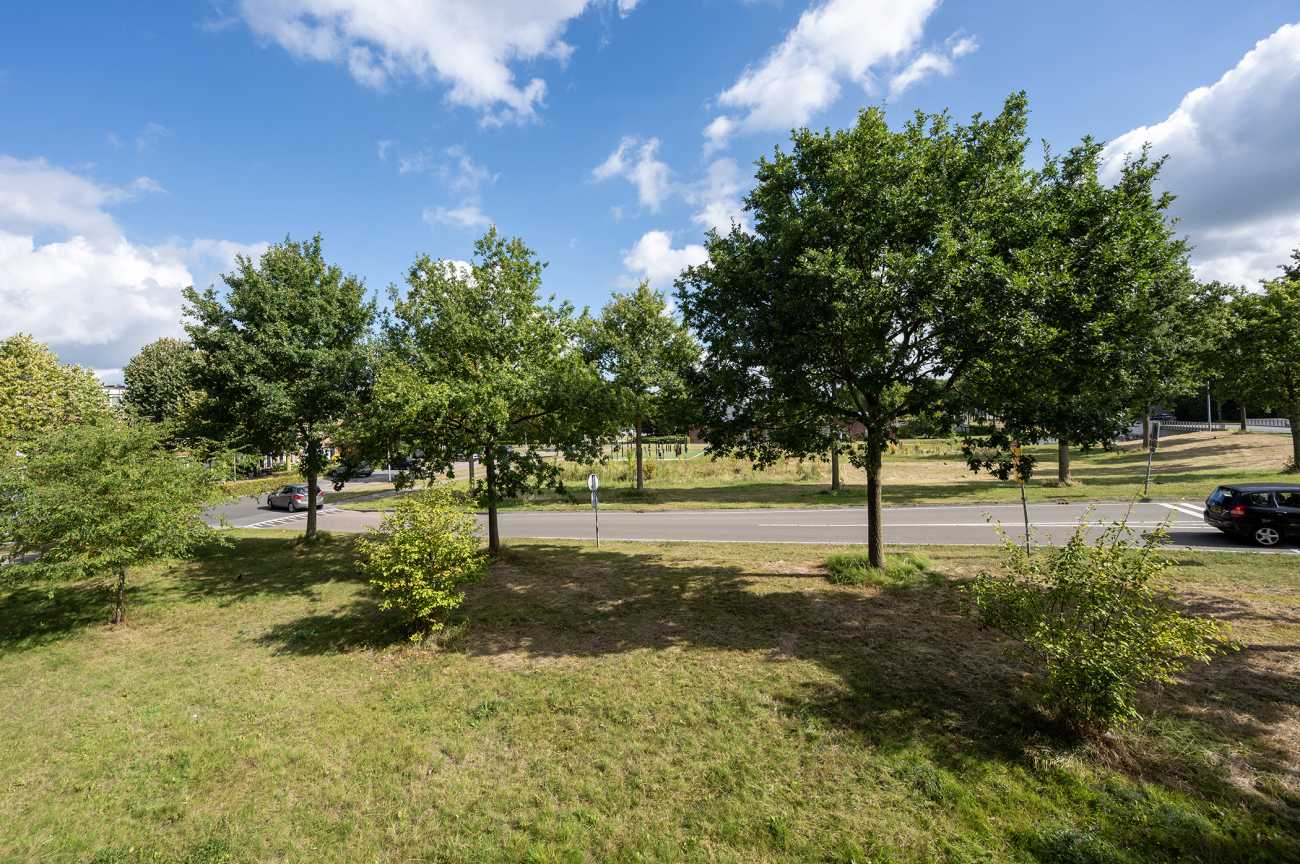 Het appartement is gelegen op de eerste verdieping en is voorzien van een nette laminaatvloer, wat bijdraagt aan een verzorgde en moderne uitstraling. Via de entree betreedt u de hal, waar zich de meterkast bevindt en van waaruit u toegang heeft tot alle vertrekken van de woning. De woonkamer is licht en ruim opgezet, met grote raampartijen die zorgen voor veel natuurlijke lichtinval. Vanuit de woonkamer heeft u toegang tot het balkon, dat is gesitueerd op het zuidwesten. Het balkon biedt een vrij uitzicht over de omgeving en is een prettige buitenruimte om te ontspannen tijdens de zonnige dagen. De open keuken is modern ingericht en volledig uitgerust met hoogwaardige inbouwapparatuur, waaronder een inductiekookplaat, afzuiger, combi-oven, vaatwasser en een koel-vriescombinatie. Hierdoor is de keuken zowel praktisch als stijlvol, en biedt deze alle gemakken voor dagelijks gebruik. Het appartement beschikt over twee ruime slaapkamers, beide gelegen aan de voorzijde van de woning. De badkamer heeft een moderne afwerking en is voorzien van een inloopdouche, een vrijhangend toilet en een wastafelmeubel, wat bijdraagt aan een strakke en eigentijdse uitstraling.