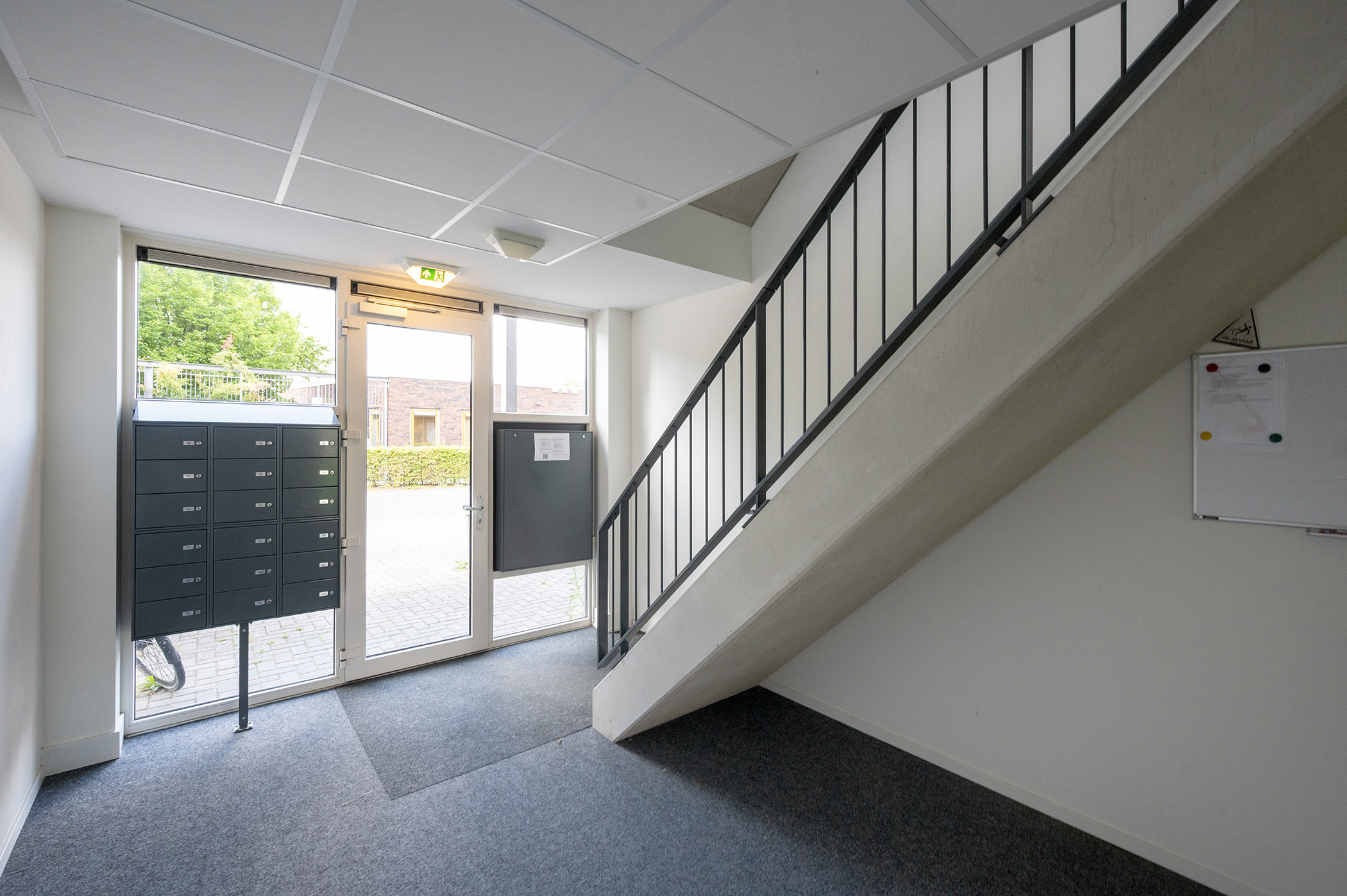 De woning is bereikbaar via de entree op de begane grond, waar zich de gemeenschappelijke hal bevindt. In deze hal vindt u de brievenbussen, het bellenbord en het trappenhuis, die toegang bieden tot de verdiepingen van het complex. Op de begane grond bevinden zich tevens de individuele bergingen, die voor de bewoners beschikbaar zijn. Het afgesloten buitenterrein biedt extra veiligheid en privacy, en hier beschikt u over een eigen parkeerplaats.