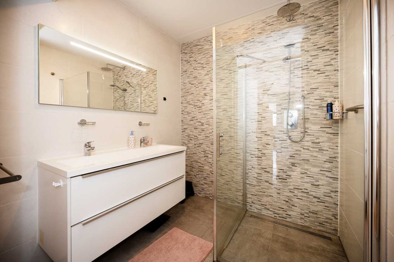 Het appartement beschikt over twee ruime slaapkamers. De badkamer is compleet ingericht met een royale inloopdouche en een dubbel wastafelmeubel.
