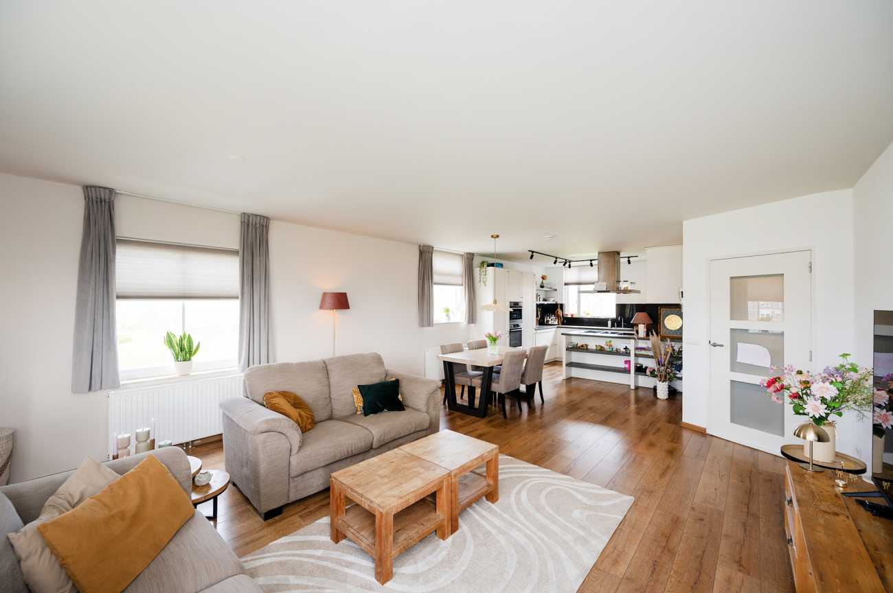 Vanuit de woonkamer heeft u toegang tot het ruime balkon, waar u in alle rust kunt genieten van het uitzicht en het buitenleven – een plek met een echt vakantiegevoel.