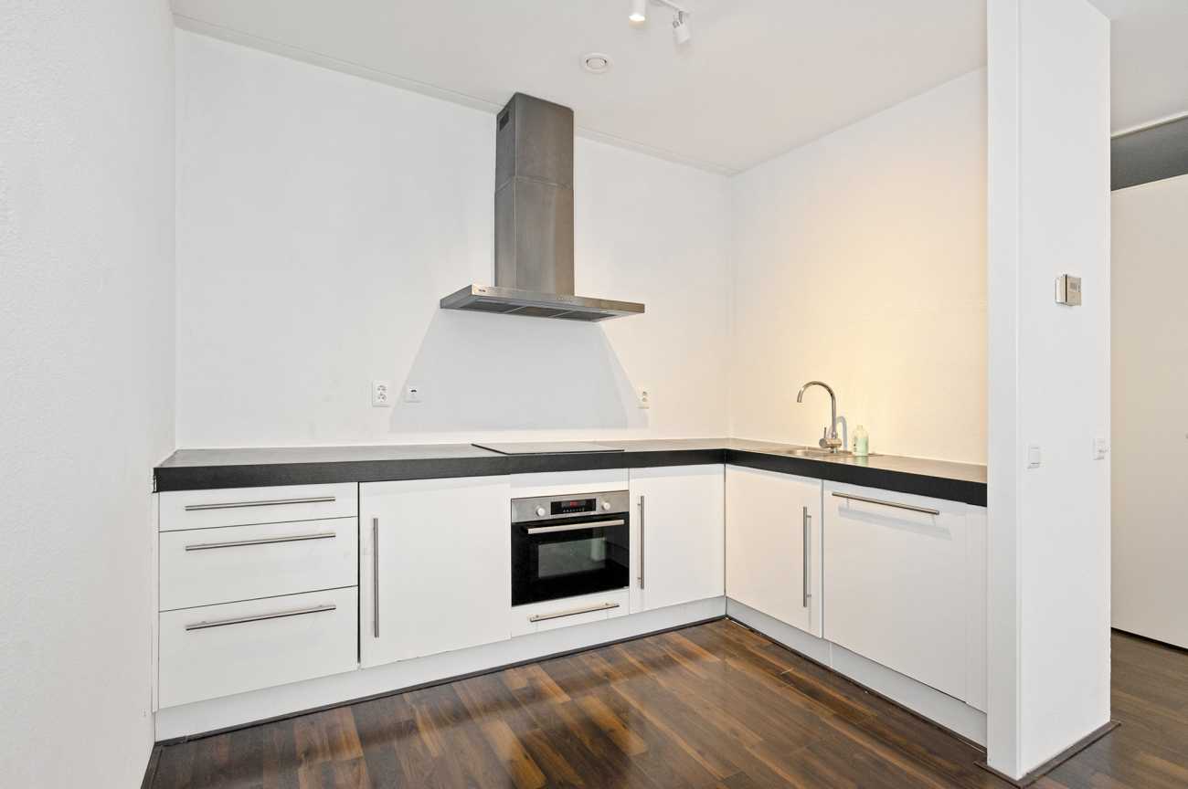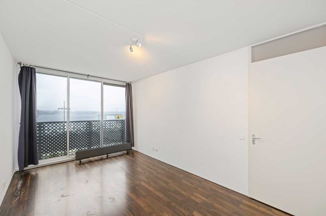 Bij binnenkomst bevindt zich de hal met toegang tot het volledig betegelde toilet en een praktische wasruimte. Vanuit de hal bereikt u de lichte en ruime woonkamer van circa 33 m². De woonkamer beschikt over een schuifpui die toegang biedt tot het zonnige balkon op het zuiden. Vanaf het balkon heeft u een fraai en weids uitzicht over het water. De moderne open keuken is uitgerust met diverse inbouwapparatuur, waaronder een inductiekookplaat, combimagnetron, afzuigschouw, koelkast, vriezer en vaatwasser. Hiermee is de keuken volledig ingericht op comfortabel koken en dagelijks gebruik. De slaapkamer, met een oppervlakte van circa 18 m², is eveneens voorzien van een schuifpui naar het balkon. Vanuit de slaapkamer heeft u directe toegang tot de badkamer. De badkamer is geheel betegeld en beschikt over een douche, wastafel en een nieuwe verlichte en verwarmde spiegel, wat extra comfort biedt. Het gehele appartement is voorzien van een nette laminaatvloer en strak afgewerkte wanden, waardoor het direct bewoonbaar is.