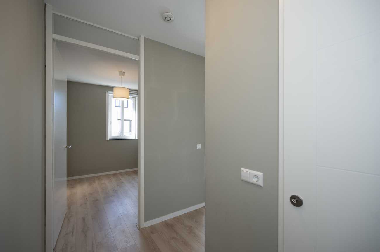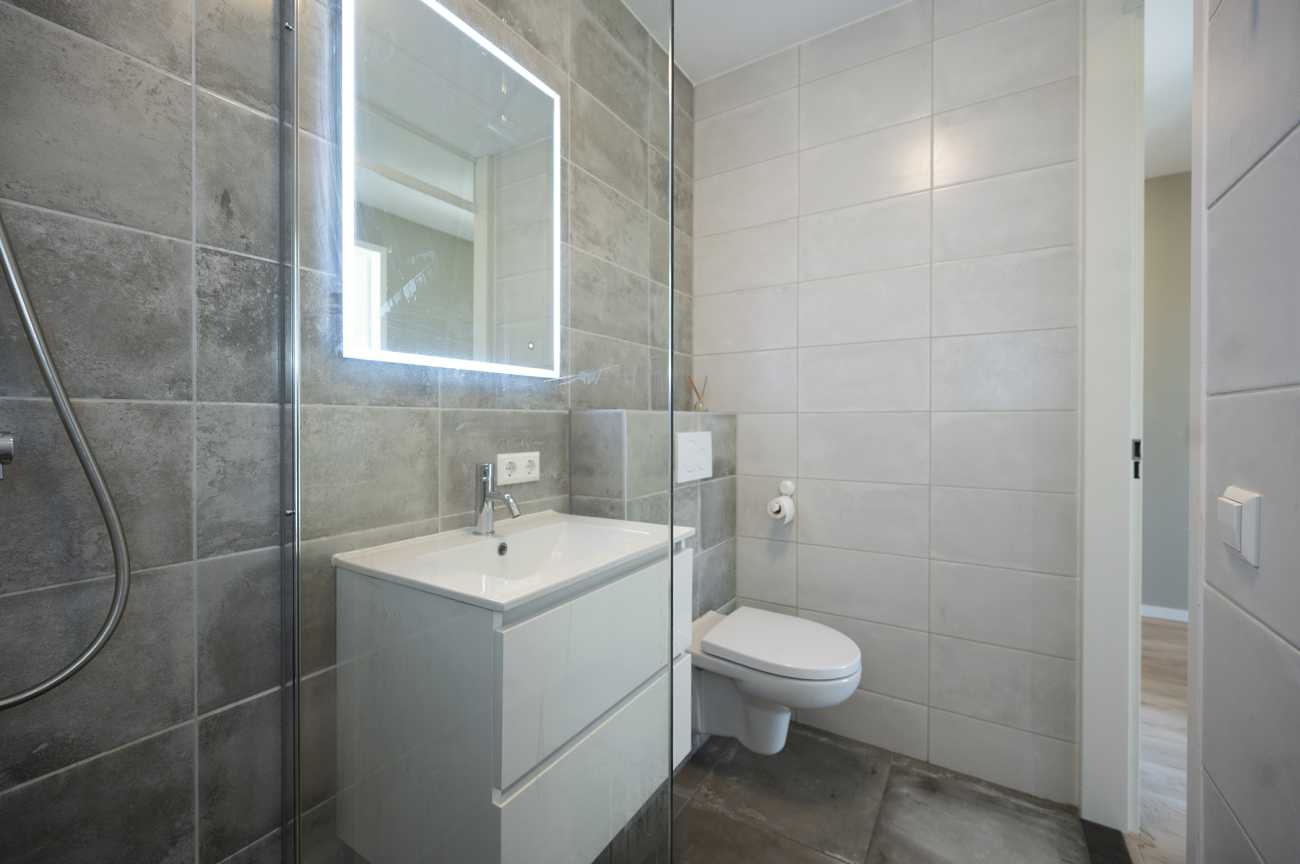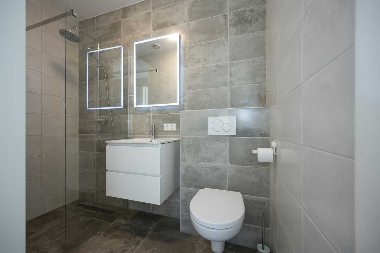 Indeling: Begane grond: Entree op de begane grond. Hier bevinden zich de bergingen, trappenhuizen en de lift. Er is ook een intercom met videoverbinding naar het appartement, welke tevens aan uw telefoon te koppelen is. Tweede verdieping: De ingang van dit gezellige appartement zit direct naast het trappenhuis. De hal geeft toegang tot de meterkasten, de tweede slaapkamer, badkamer en berging met plek voor de wasmachine. De luxe afgewerkte badkamer is volledig betegeld en voorzien van een ruime inloopdouche, wastafel met meubel, verlichte spiegel en toilet. Via een glazen deur komt u van de hal in de woonkamer. Door het hele appartement ligt een aangename vloerverwarming, met een keurige laminaatvloer welke is afgewerkt met hoge witte plinten. Daarnaast zijn de ramen voorzien van (rol)gordijnen en zijn alle ruimtes met sfeervolle plafondverlichting ingericht.