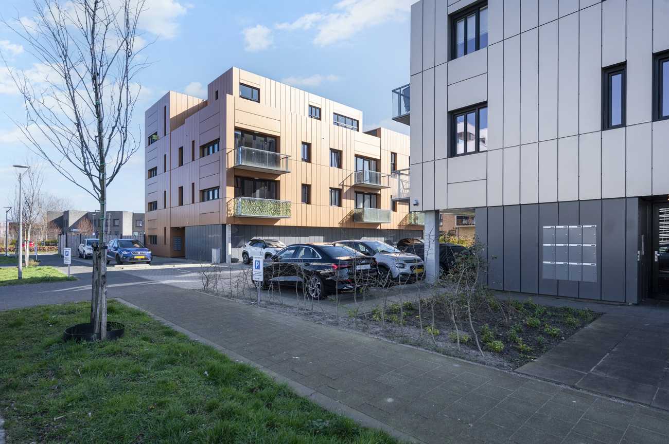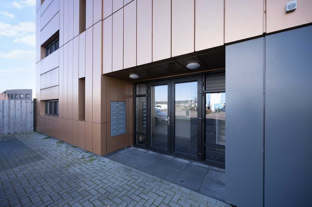 Door de lichtinval op de gevels verandert de kleur van het gebouw mee van effen donkerder naar een glanzende heldere uitstraling. Het gebouw heeft een heldere opzet met in totaal 14 appartementen en is duurzaam met een EPC van 0.39. Het appartement zelf is voorzien van energielabel A en is volledig gasloos.