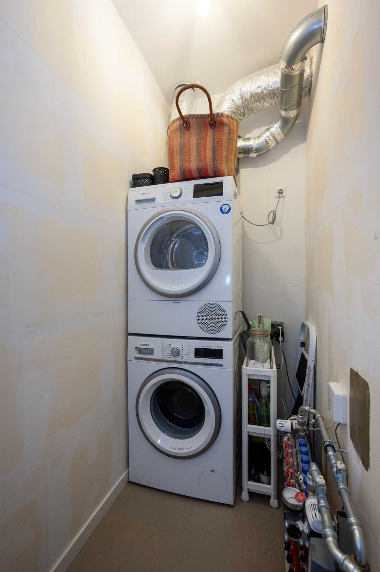 Vanuit de ruime hal heeft u toegang tot het separate toilet, de meterkast, de woonkamer, de badkamer en beide slaapkamers. De lichte en royale woonkamer vormt het centrale leefgedeelte van het appartement en sluit mooi aan op de moderne keuken. Deze is ingericht met een koelkast, vaatwasser, combi-oven, kookplaat met geïntegreerde afzuiging van Bora en een Quooker. Vanuit de woonkamer heeft u tevens toegang tot het balkon die gelegen is op het zuid westen. De badkamer is stijlvol afgewerkt, volledig betegeld en voorzien van een ruime inloopdouche, een wastafel met bijpassend meubel en een spiegel met verlichting. Daarnaast beschikt het appartement over een praktische inpandige berging met aansluitingen voor zowel de wasmachine als de droger. Tevens is het appartement voorzien van 2 ruime slaapkamers.
