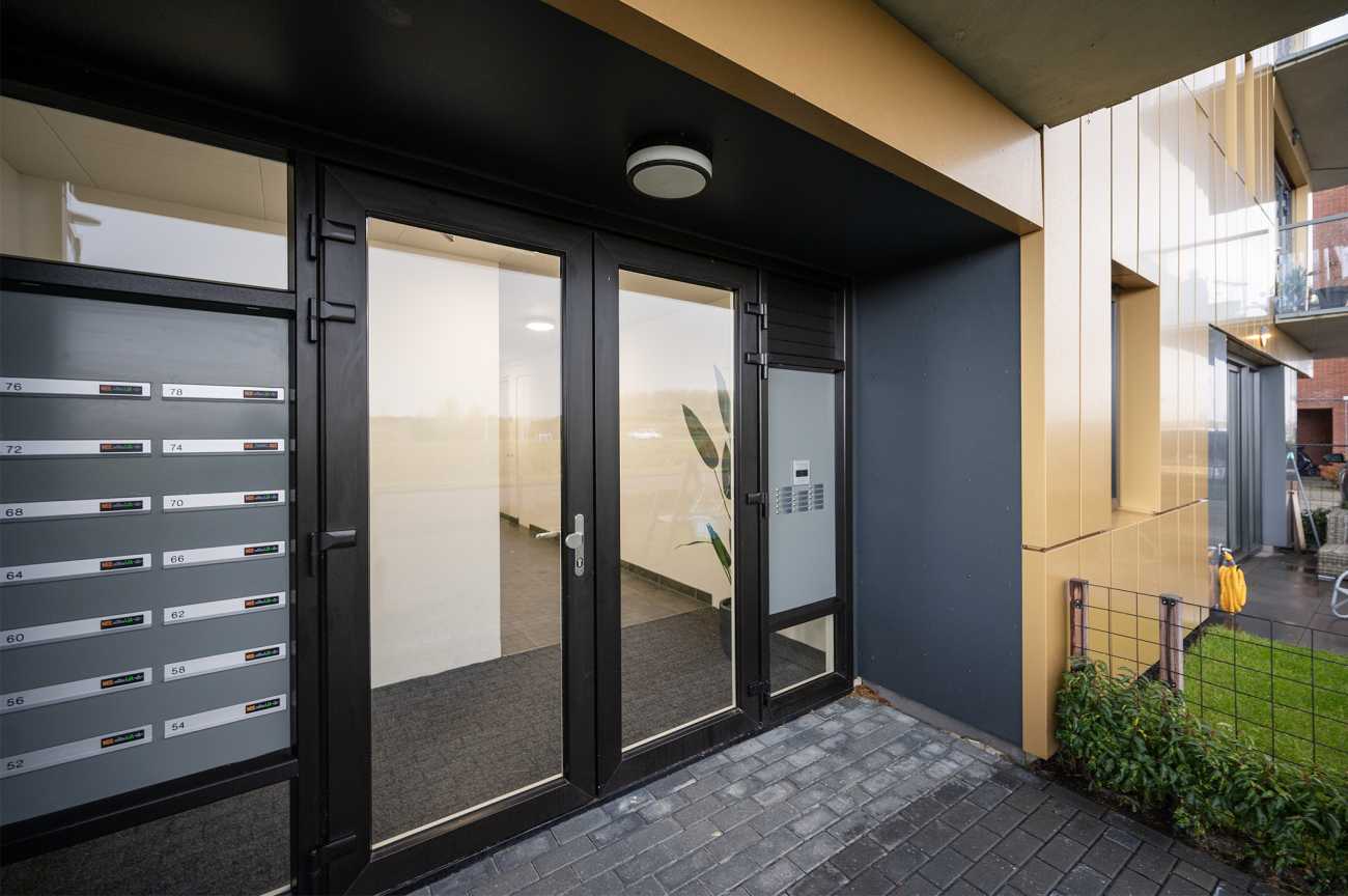 Via de centrale entree op de begane grond krijgt u toegang tot de bergingen, het trappenhuis en de lift. Het appartement beschikt over een intercomsysteem.