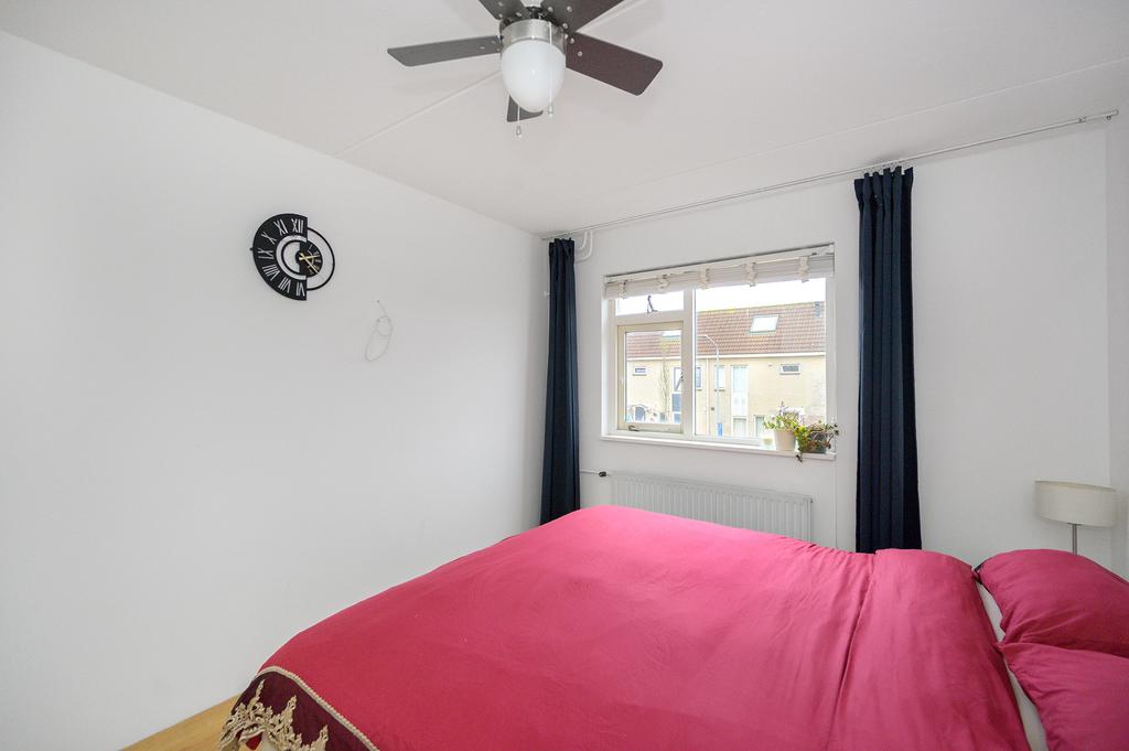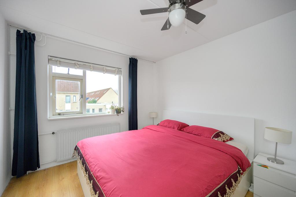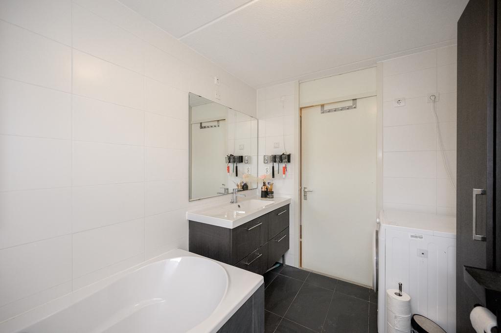 Op de eerste verdieping bevindt zich een overloop met toegang tot twee slaapkamers aan de achterzijde en een derde slaapkamer en de badkamer aan de voorzijde van de woning. De badkamer beschikt over een ligbad, douche, toilet, wastafel met meubel en voldoende kastruimte. Daarnaast vindt u hier de aansluitingen voor de wasmachine en droger. De gehele verdieping is voorzien van laminaat.