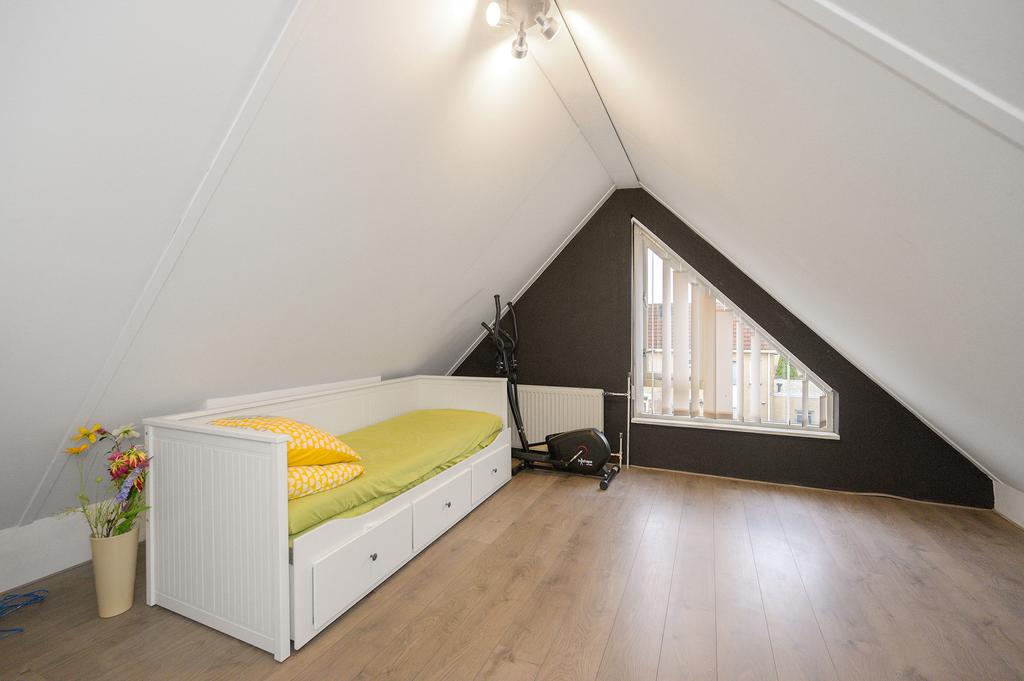 Op de tweede verdieping vindt u een grote kamer die veelzijdig kan worden gebruikt. U kunt er bijvoorbeeld een extra slaapkamer van maken, een werkkamer inrichten of de ruimte gebruiken als speelkamer.