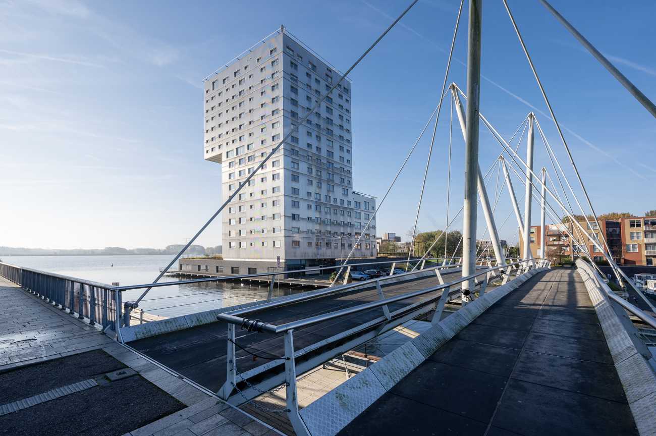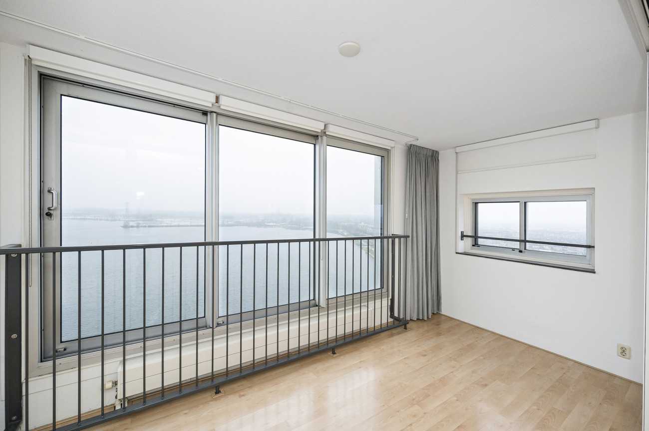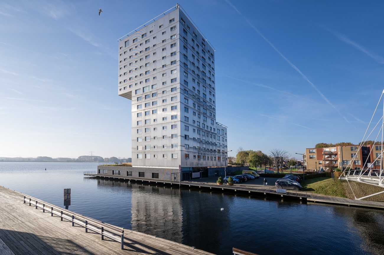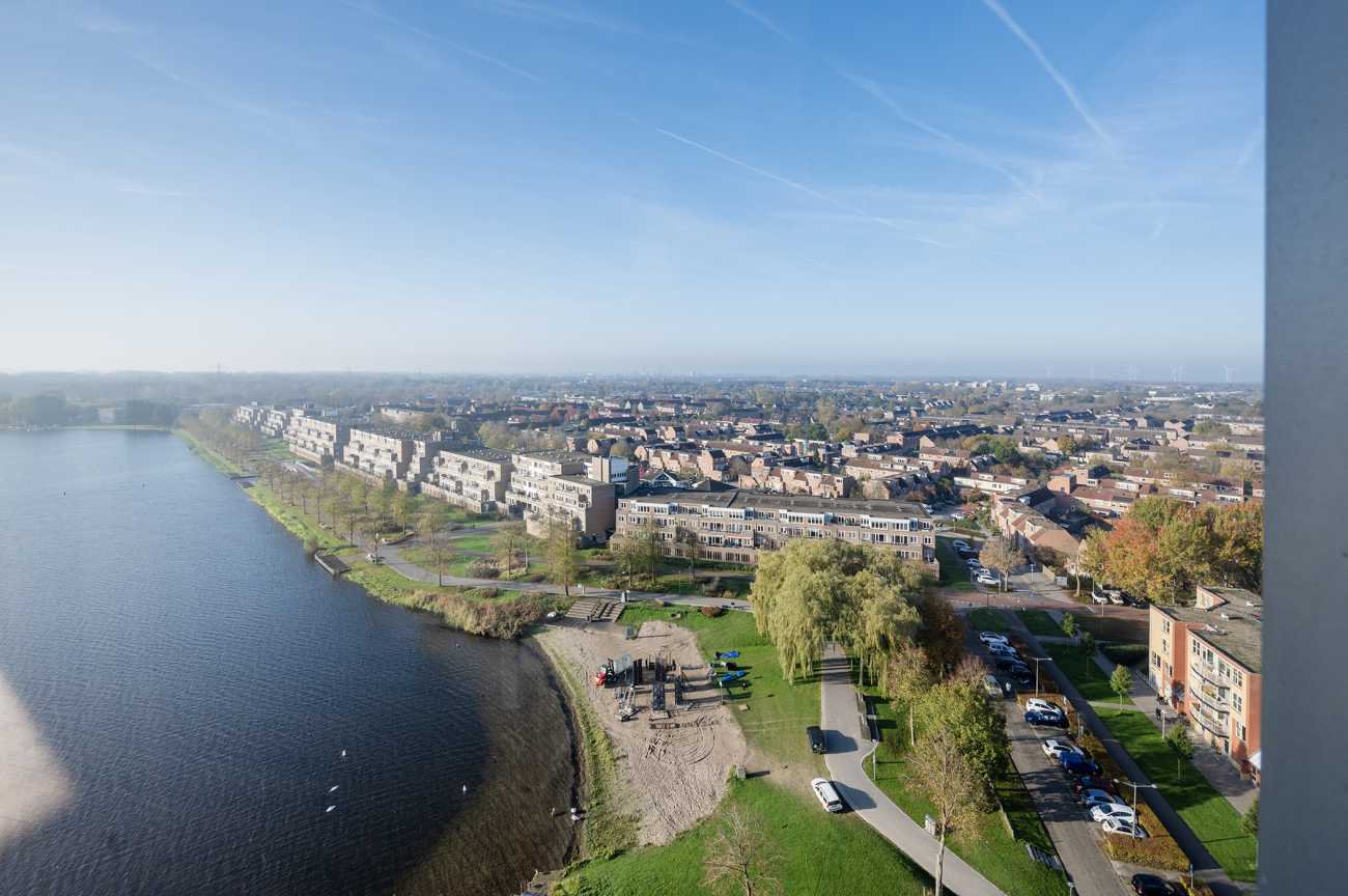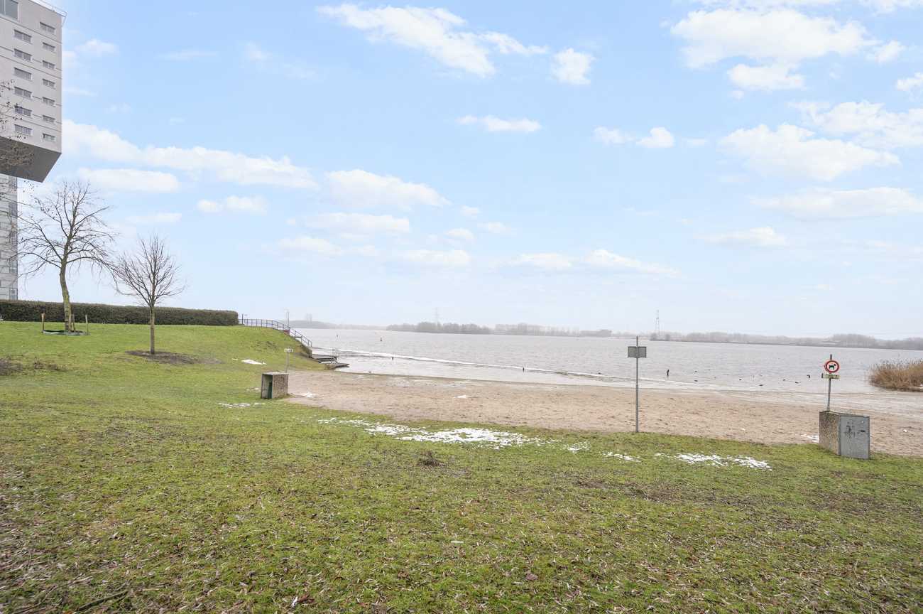 Dit lichte en aantrekkelijk ingedeelde 3-kamerappartement is gesitueerd op de 13e verdieping van het markante appartementencomplex Silverline en biedt een fraai uitzicht over het Weerwater. Het complex is ontworpen door het gerenommeerde architectenduo Claus en Kaan (OMA) en is gerealiseerd in de periode 1999–2001. Rondom het gebouw is een verzorgde tuin aangelegd die bijdraagt aan een prettige woonomgeving. Aan de waterzijde bevindt zich een afgeschermde loopsteiger met zitgelegenheden, waar u in alle rust kunt genieten van het uitzicht over het water. Via de zwemvoorziening is het mogelijk om in de zomer een verkoelende duik te nemen, terwijl het water in de winter uitnodigt tot schaatsplezier. Bij het appartement horen een eigen parkeerplaats en een fietsenberging. De ligging is bijzonder centraal: het Silverline-complex bevindt zich in het centrum van Almere, met een uitgebreid aanbod aan winkels, horeca en culturele voorzieningen op loopafstand. Ook onder meer het Flevoziekenhuis en de Schouwburg Almere zijn nabij gelegen. De bereikbaarheid is uitstekend dankzij de gunstige ligging ten opzichte van het station Almere Centrum, openbaar vervoer en de uitvalswegen richting de A6 en A27.
