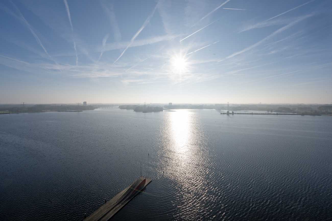 Via de royale galerij bereikt u de entree van het appartement. De ruime hal vormt het centrale punt van de woning en biedt toegang tot alle vertrekken. De woonkamer is opvallend licht en ruim van opzet en staat in directe verbinding met de loggia, waar u in alle seizoenen comfortabel kunt genieten van het uitzicht. Dankzij de meerdere zijramen in zowel de woonkamer als de keuken wordt het appartement overspoeld met daglicht, wat zorgt voor een prettige en open sfeer. De open keuken is praktisch ingedeeld in een L-opstelling en uitgerust met diverse inbouwapparatuur, waaronder een koelkast, kookplaat, vaatwasser en een combimagnetron. Deze opstelling maakt de keuken niet alleen functioneel, maar ook een fijne plek om te koken en te verblijven. Vanuit de hal zijn tevens de twee goed bemeten slaapkamers bereikbaar. Deze liggen naast elkaar en bieden beide een fraai uitzicht over het Weerwater. De badkamer is netjes afgewerkt en voorzien van een ruime inloopdouche en een wastafel. Daarnaast beschikt het appartement over een separaat toilet en twee praktische bergruimten, waarvan één met aansluiting voor de wasmachine en de andere ingericht kan worden als de garderobekast. Het gehele appartement is afgewerkt met een verzorgde laminaatvloer, wat bijdraagt aan een nette en onderhoudsvriendelijke uitstraling. Kortom, een comfortabel en licht appartement met een prettige indeling en een prachtig uitzicht.