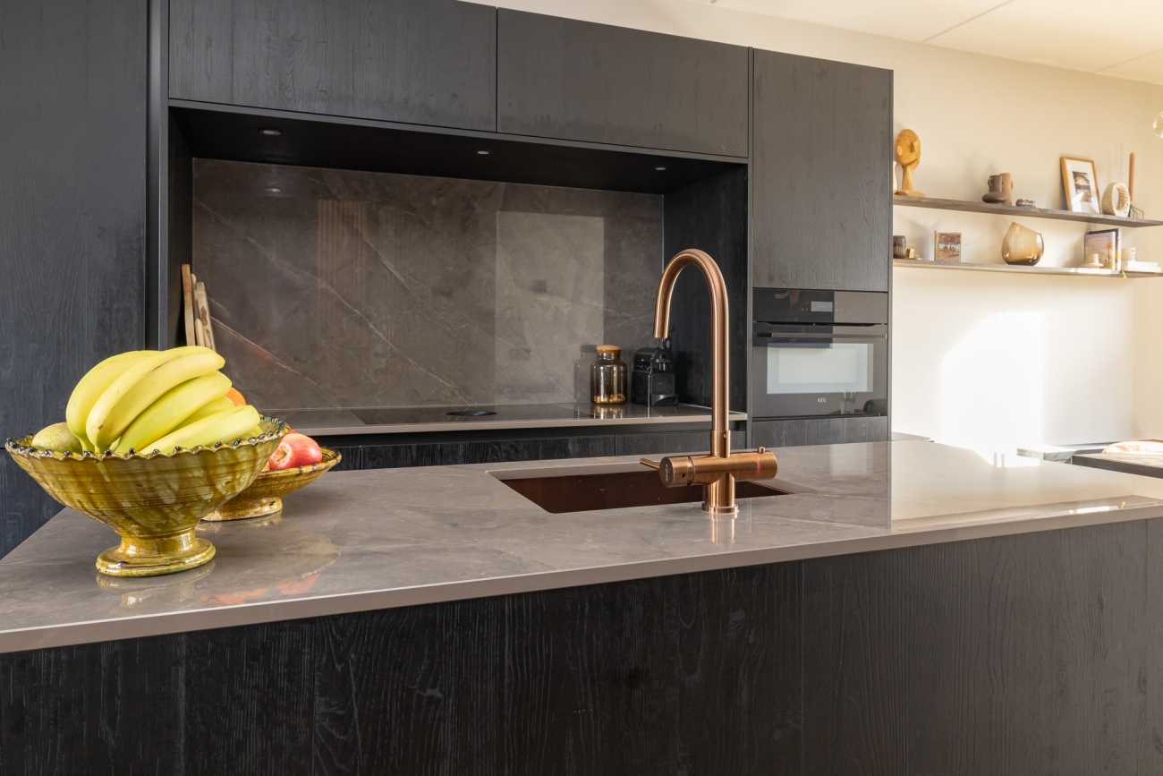 Voortuin met voldoende parkeerplaatsen rondom de woningen in het hofje. Entree van de woning met toegang tot de meterkast en toiletruimte, welke is uitgerust met een hangend toilet en een fontein. De sfeervolle woonkamer beschikt over een pvc vloer en is voorzien van een praktische trapkast voor extra opbergruimte. Dankzij de plafondhoge raampartij treedt er veel natuurlijk daglicht binnen, wat bijdraagt aan een ruimtelijk en aangenaam wooncomfort. Vanuit de woonkamer is er directe toegang tot de achtertuin. De moderne en luxe keuken is ingericht met een centraal spoeleiland, waardoor u voldoende werkruimte heeft en gezellig kunt aanschuiven, wanneer er gekookt wordt. De keuken biedt veel bergruimte en is voorzien van hoogwaardige inbouwapparatuur, waaronder een Bora-kookplaat, een spoelbak met heet waterkraan, een geïntegreerde vaatwasser, een combi-oven en een ruime koel-vriescombinatie. Aan de voorzijde van de woning vindt u de eettafel met wederom hoge raampartijen. Dit is een gezellige hoek om lekker bij te praten en te tafelen met vrienden of familie.