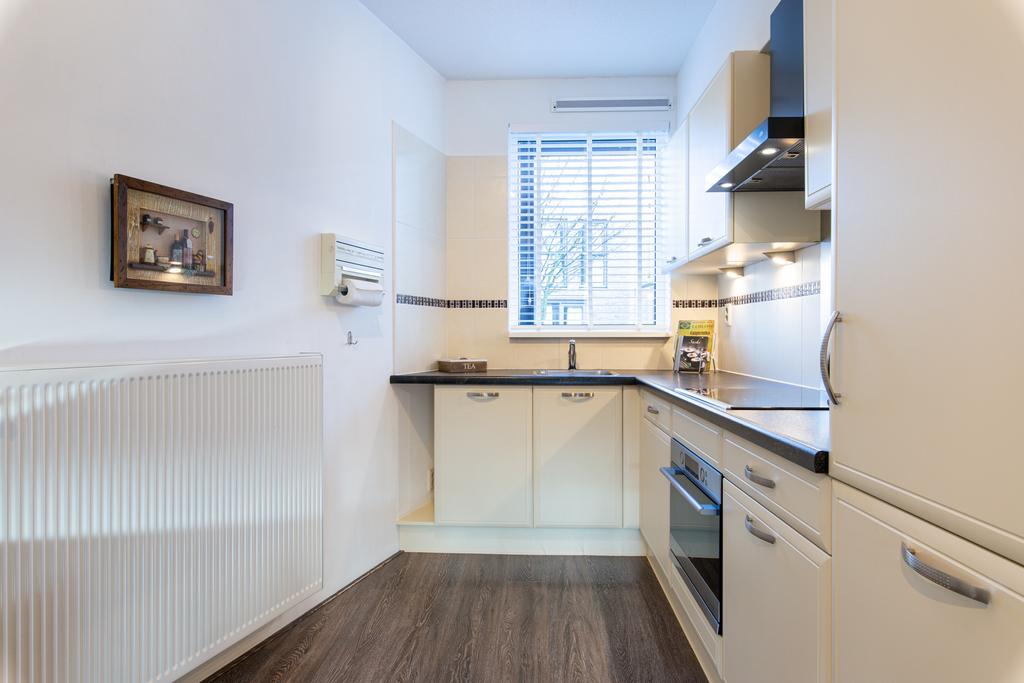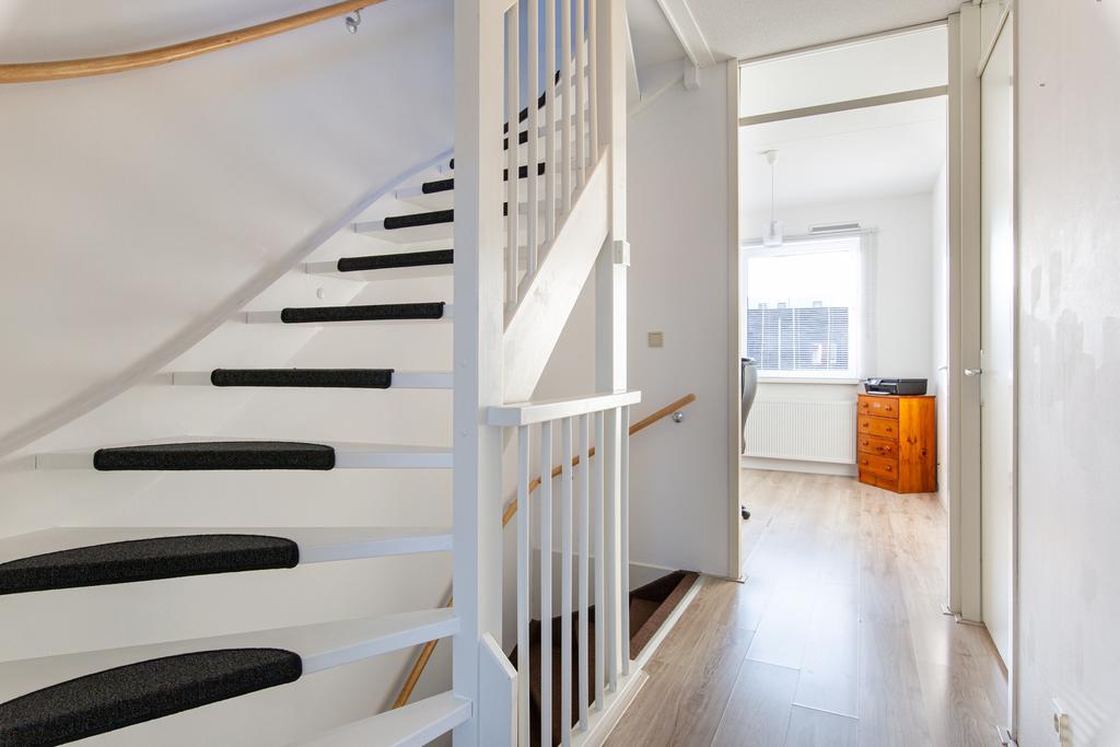 Voortuin met vlonder, ruime hal, meterkast met stadswarmte-aansluiting, toiletruimte en toegang woonkamer met half open keuken. De moderne inbouwkeuken is uitgevoerd in lichte kleurstelling, voorzien van de gewenste inbouwapparatuur zoals een kookplaat, koelkast, vriezer, vaatwasser en oven. De ruime living heeft veel lichtinval en toegang naar de achtertuin, waar u heerlijk kunt genieten van een keurig aangelegde tuin.