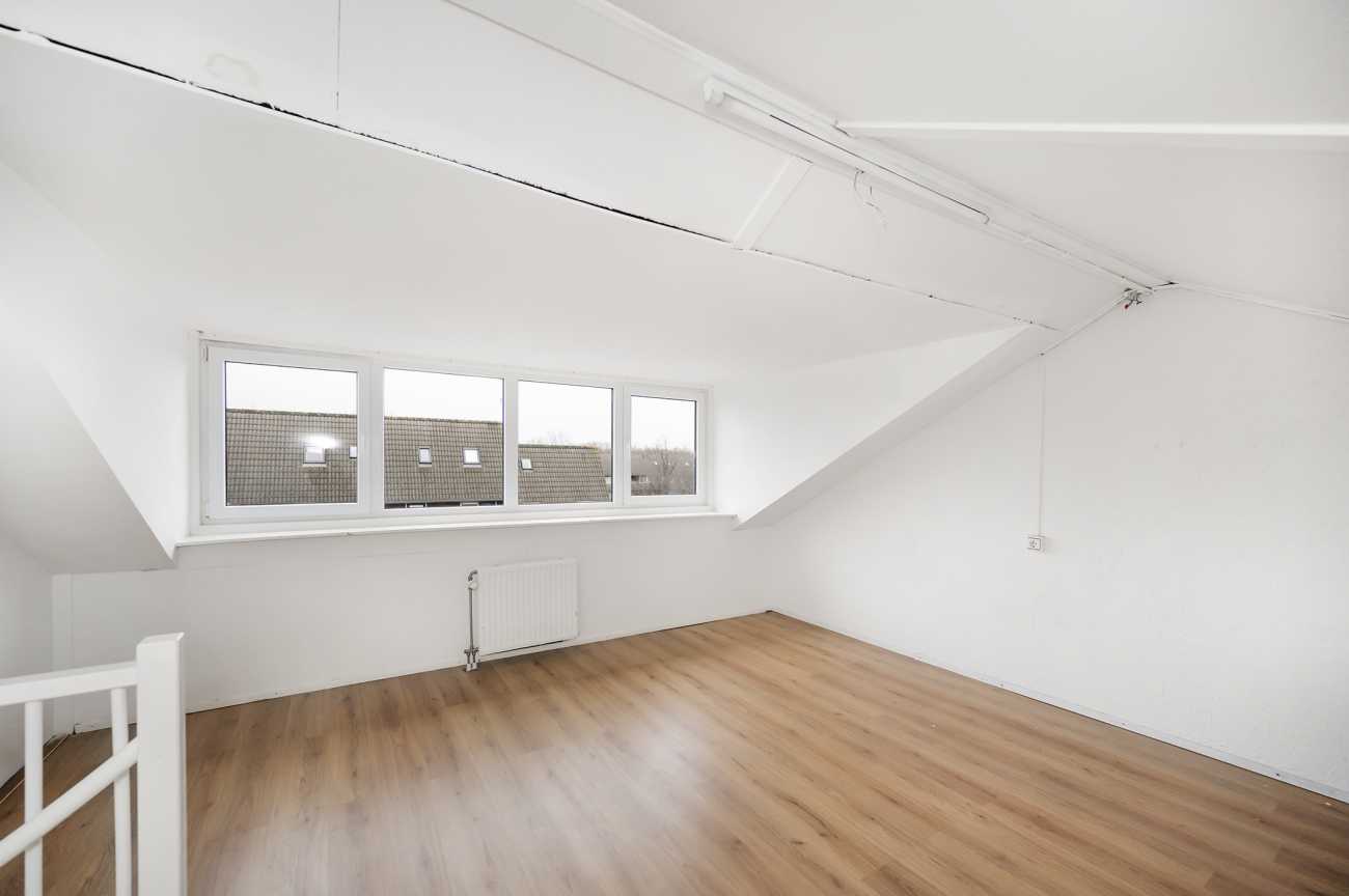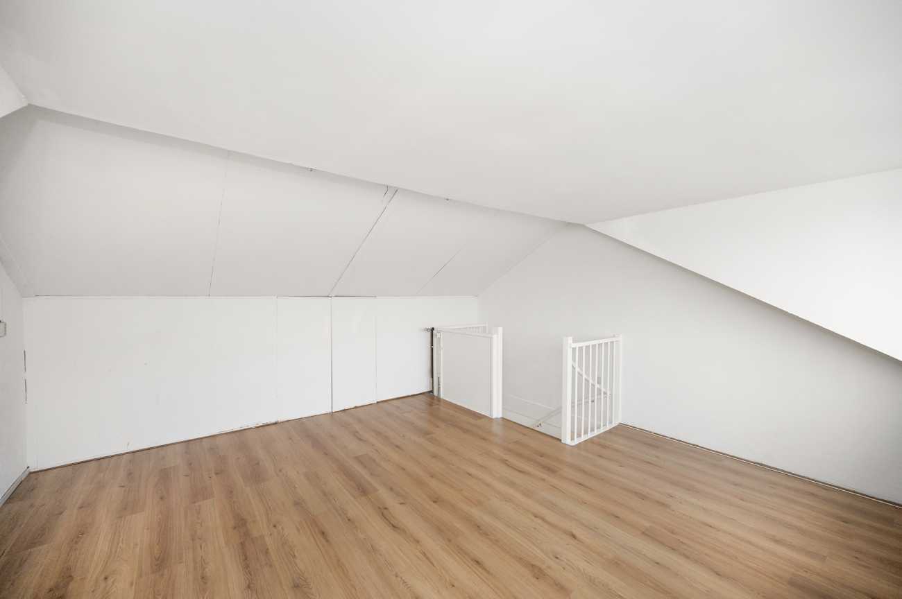 Via een vaste trap bereikt u de tweede etage. Deze volwaardige zolderverdieping is dankzij het brede dakkapel bijzonder ruim en aangenaam licht. Hierdoor is deze verdieping uitstekend geschikt als extra slaapkamer, werkkamer of multifunctionele ruimte. Tevens bevinden zich hier de aansluitingen voor de wasmachine. Ook deze etage is afgewerkt met een laminaatvloer.