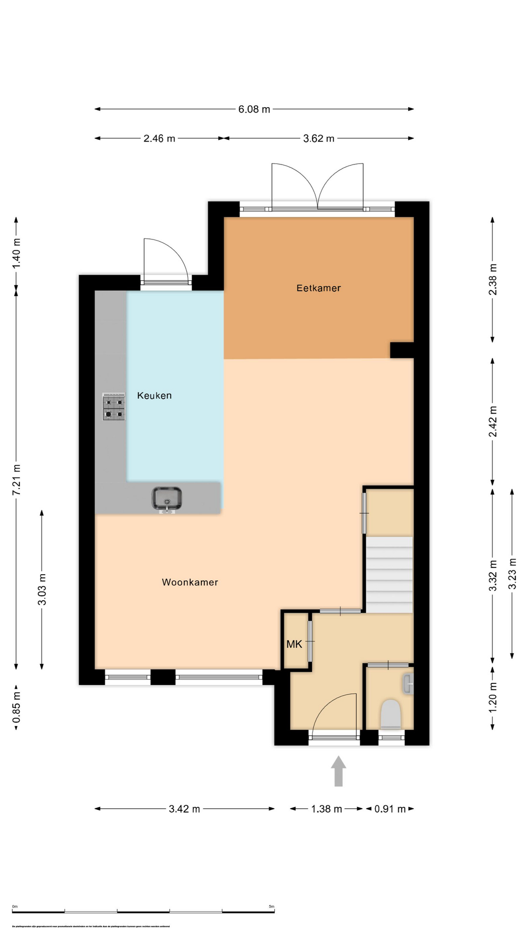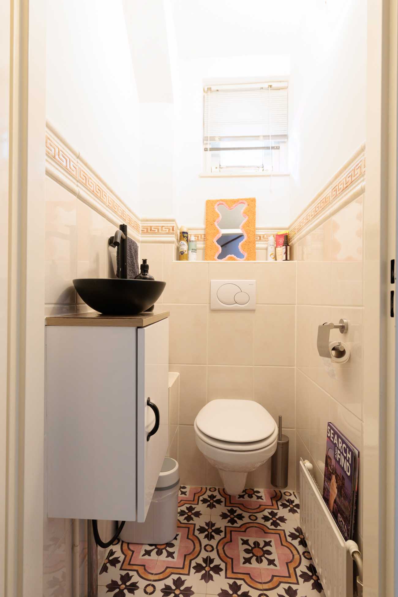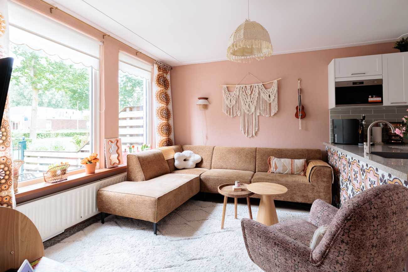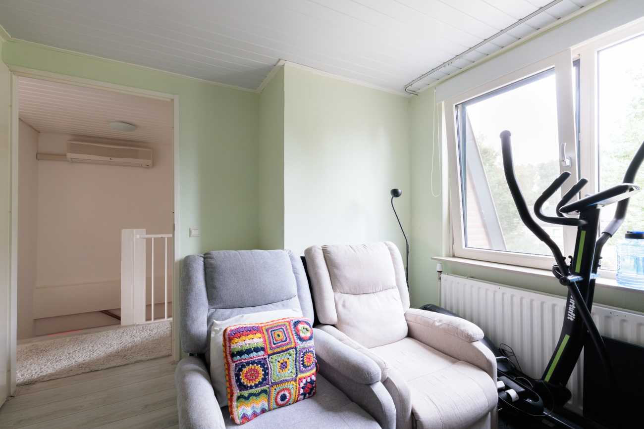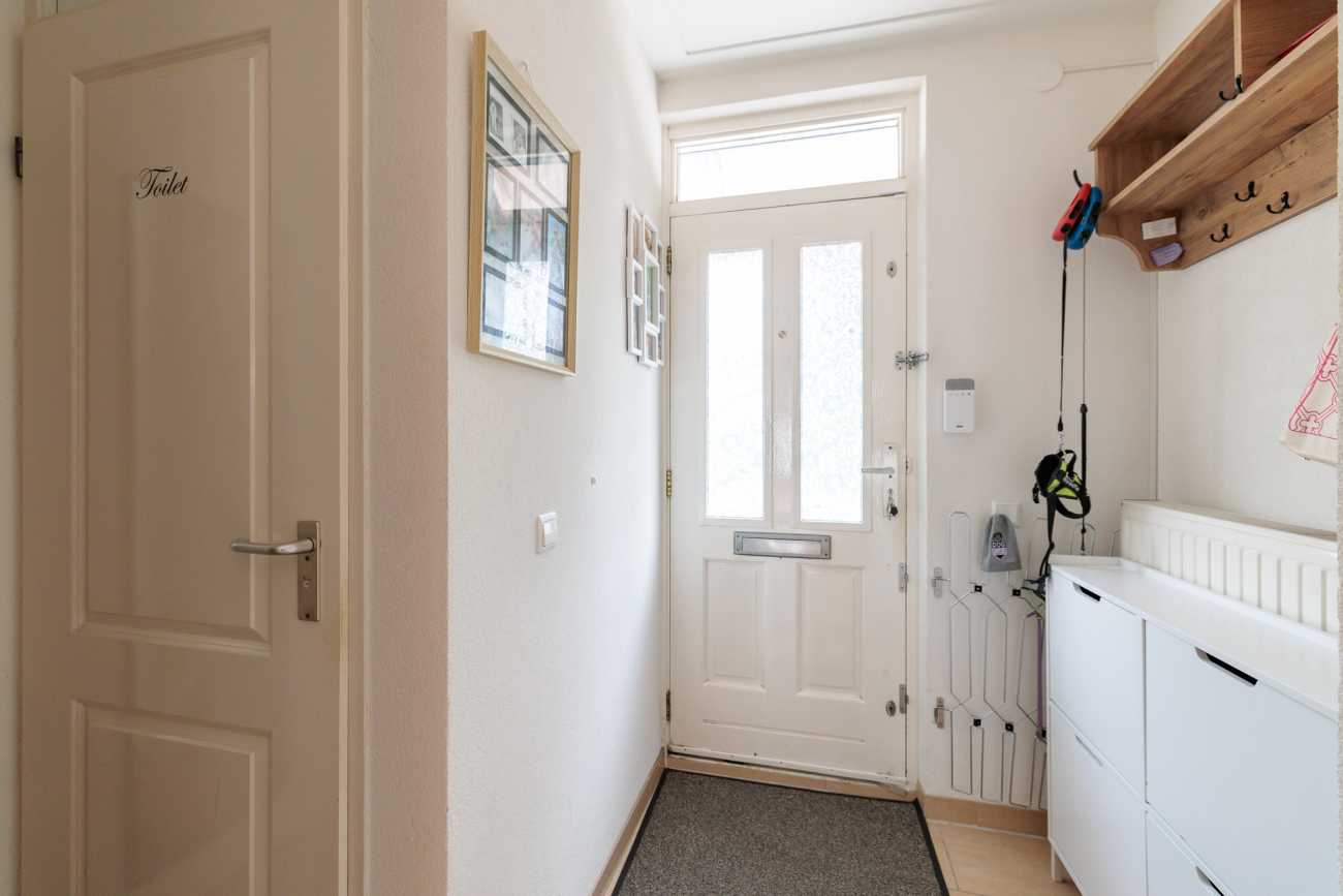 Bij binnenkomst treft u een ruime hal met de meterkast, een modern zwevend toilet met fonteintje, de trapopgang naar de eerste verdieping en toegang tot de woonkamer. De woonkamer is aan de achterzijde uitgebouwd en biedt hierdoor extra leefruimte. De sfeervolle zithoek en de apart ingerichte eethoek zorgen voor een warme, huiselijke ambiance.