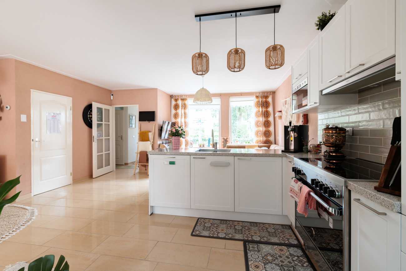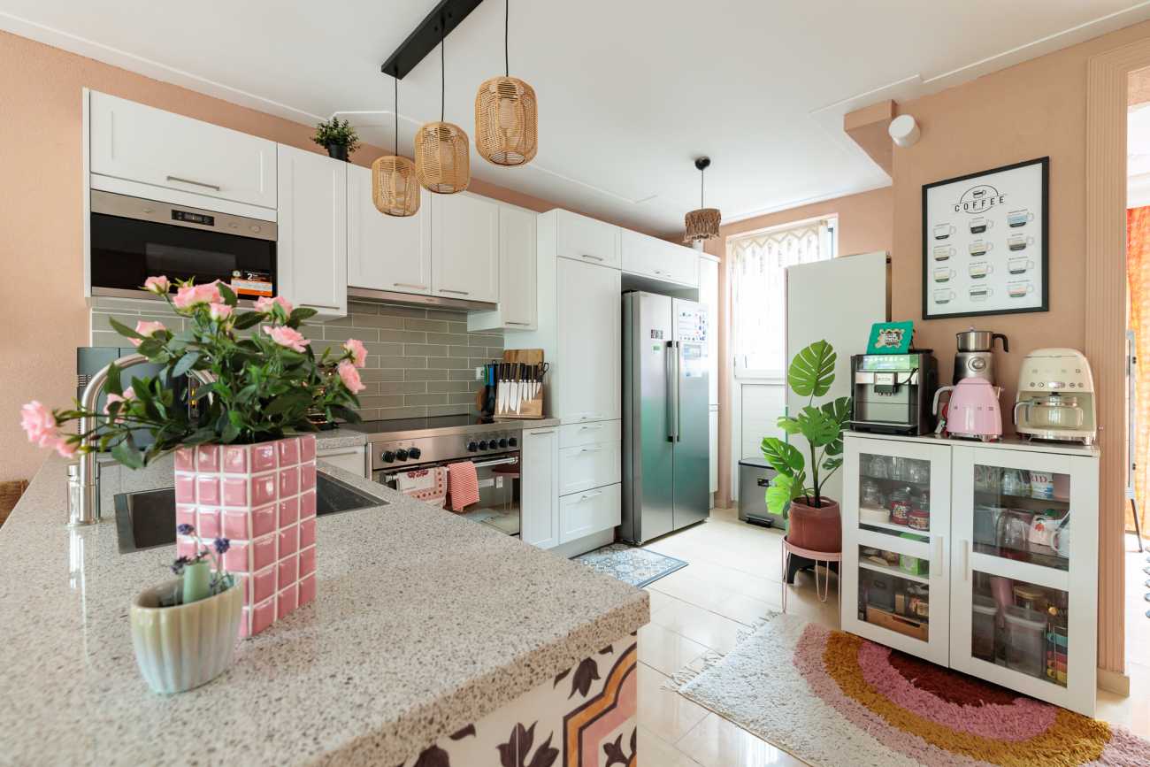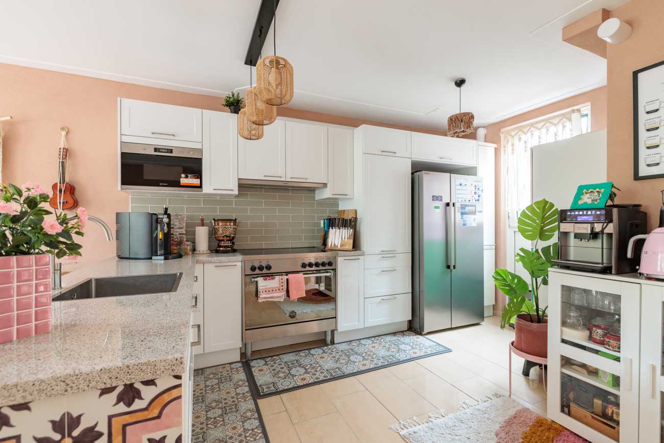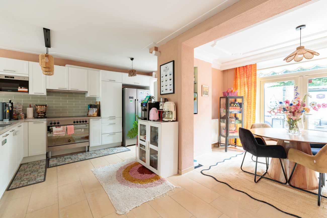 Aan de achterzijde bevindt zich de luxe keuken (2022), uitgevoerd in een moderne stijl en voorzien van hoogwaardige inbouwapparatuur met o.a. een vaatwasser, elektrische kookplaat, oven, magnetron en een ruime Amerikaanse koel-vriescombinatie. De keuken biedt bovendien volop bergruimte. De gehele begane grond is afgewerkt met een onderhoudsvriendelijke tegelvloer, wat bijdraagt aan de strakke en verzorgde uitstraling.