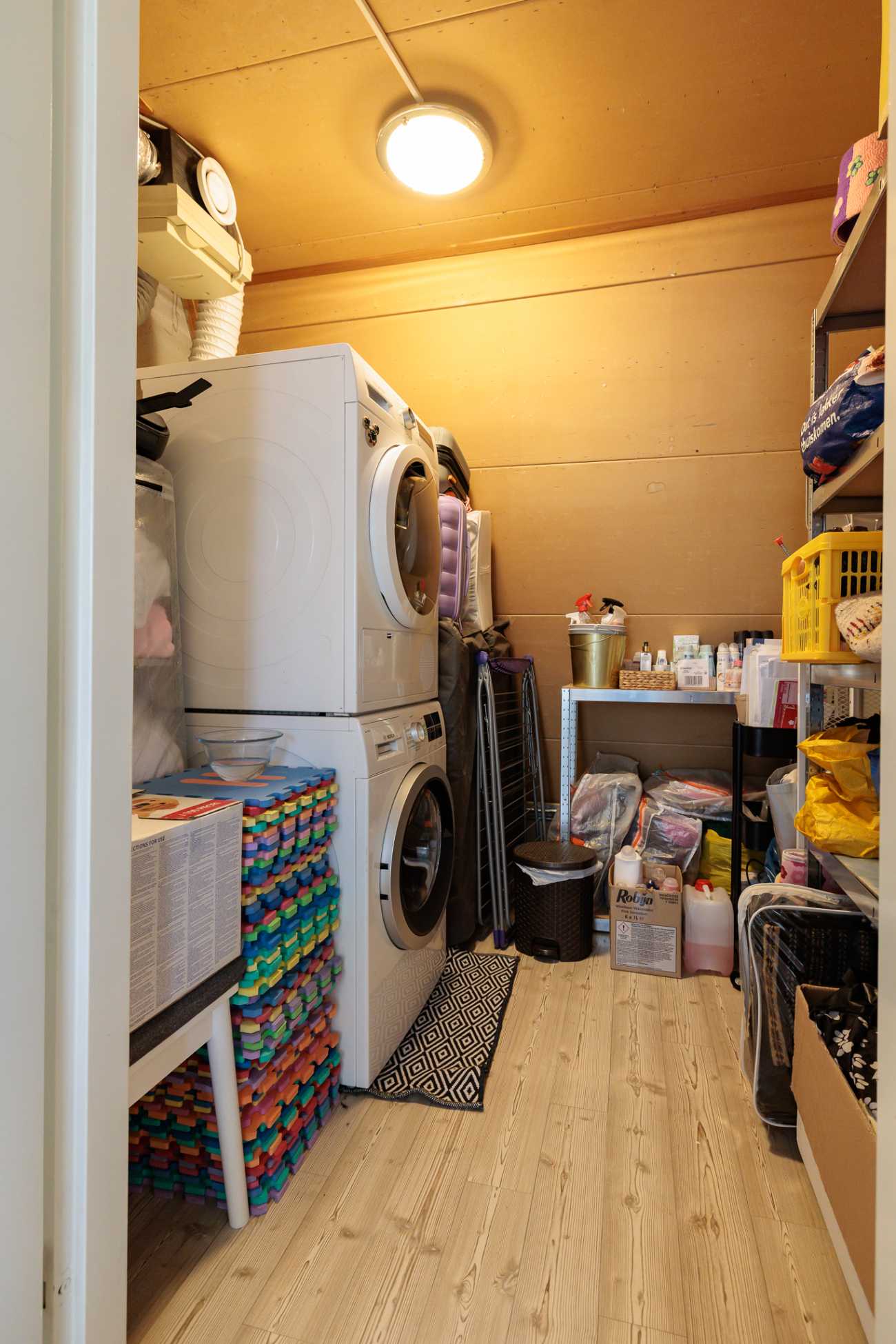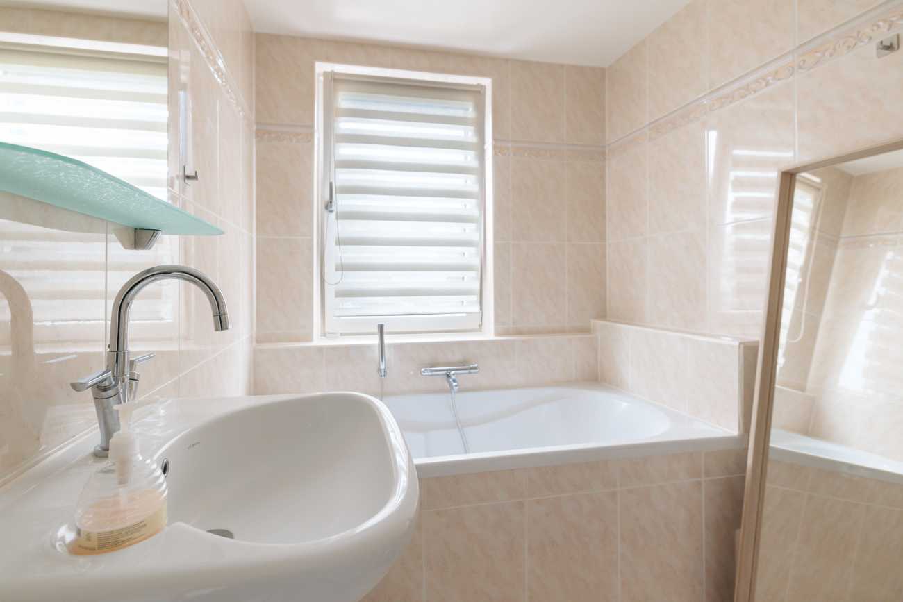 Op de tweede verdieping bevinden zich nog twee goed bemeten slaapkamers, een aparte wasruimte en een tweede badkamer. Deze badkamer is eveneens volledig betegeld en uitgerust met een ligbad, douche en wastafel. Dankzij het aanwezige raam beschikt ook deze badkamer over natuurlijke ventilatie. De slaapkamers lenen zich uitstekend als extra slaap- of werkkamers en zijn voorzien van laminaatvloeren. Bovendien is op deze verdieping airconditioning aanwezig.