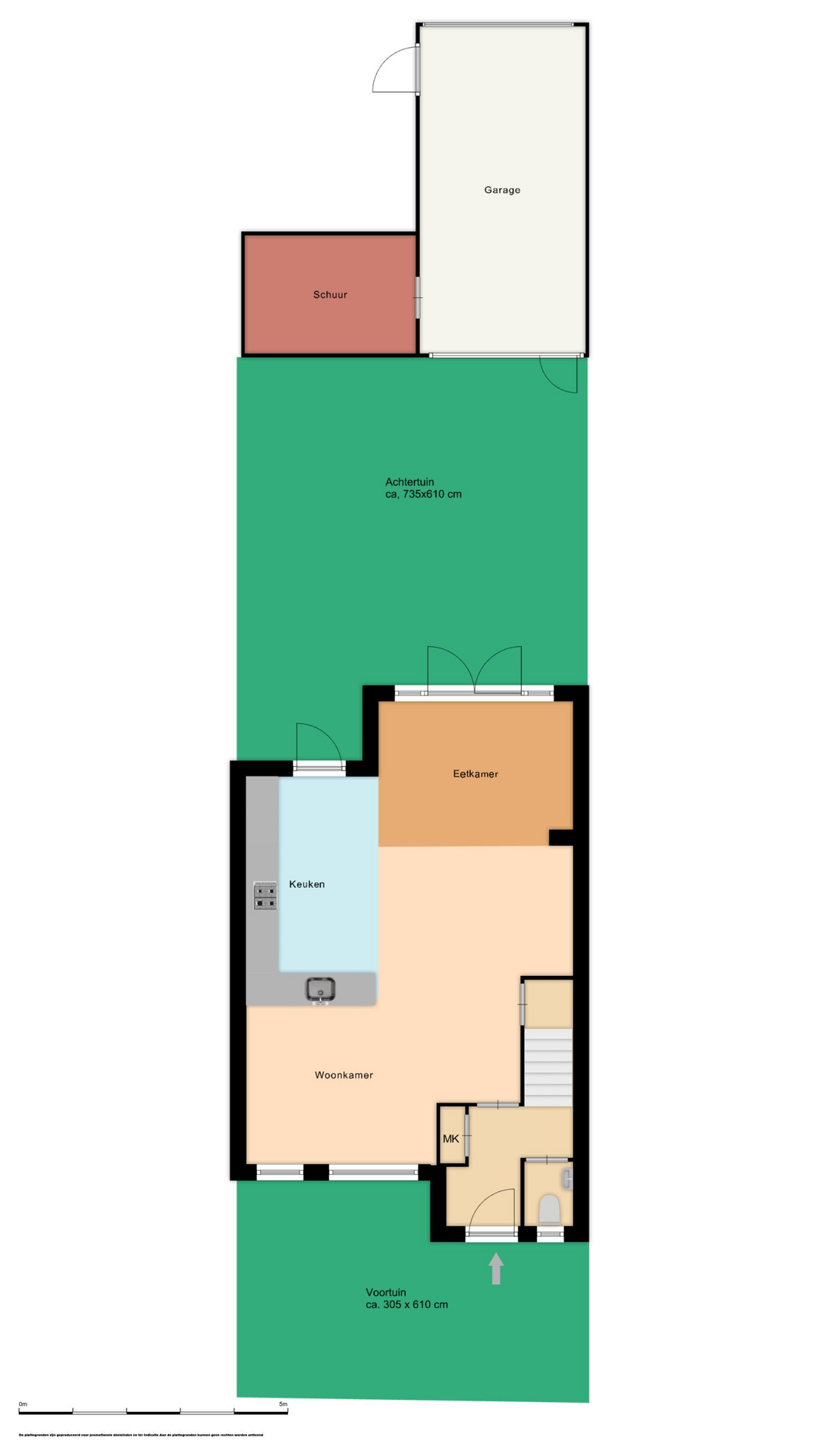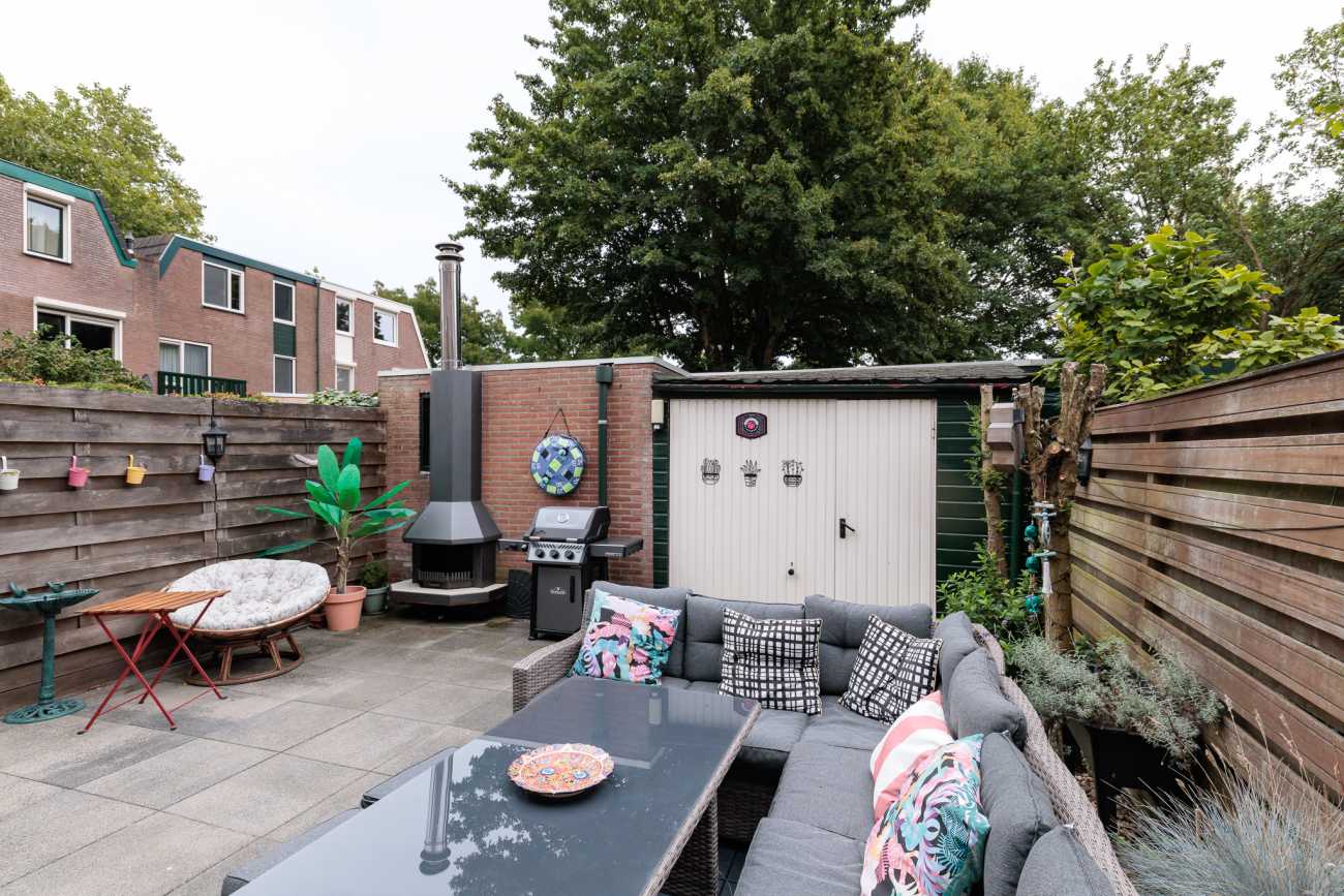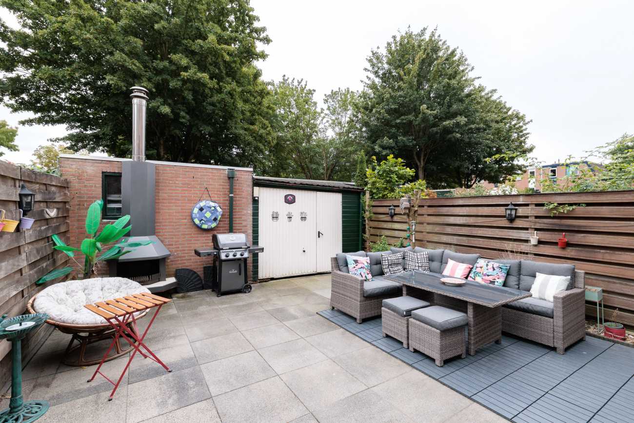 De achtertuin is ondanks de uitbouw verrassend ruim en onderhoudsvriendelijk aangelegd met grotendeels bestrating. Hierdoor kunt u optimaal genieten van de buitenruimte zonder veel onderhoud. Achterin de tuin bevinden zich een garage (ca. 20 m²) en een separate berging (ca. 6 m²), ideaal voor het stallen van fietsen, tuinmeubilair en overige spullen.