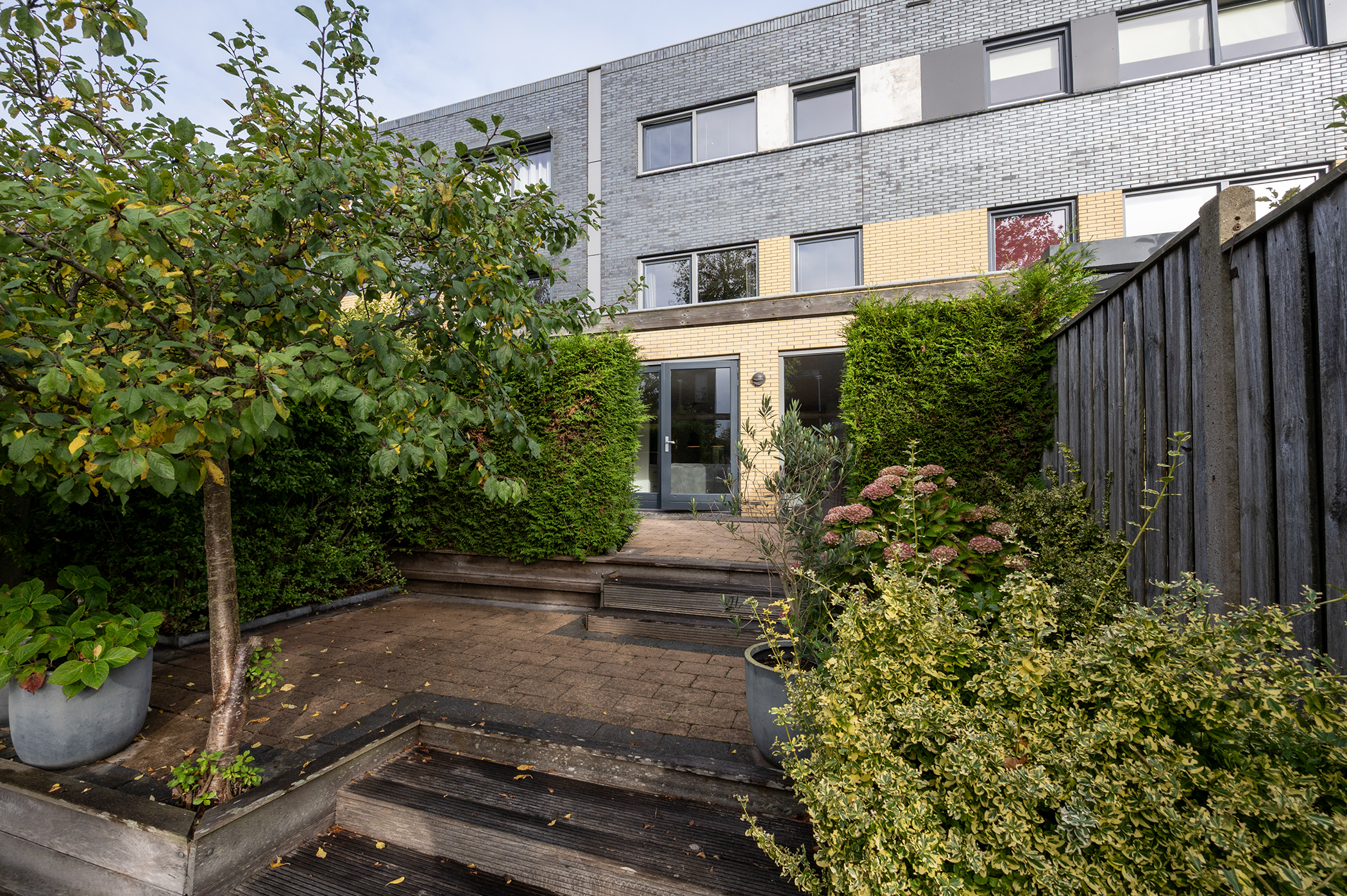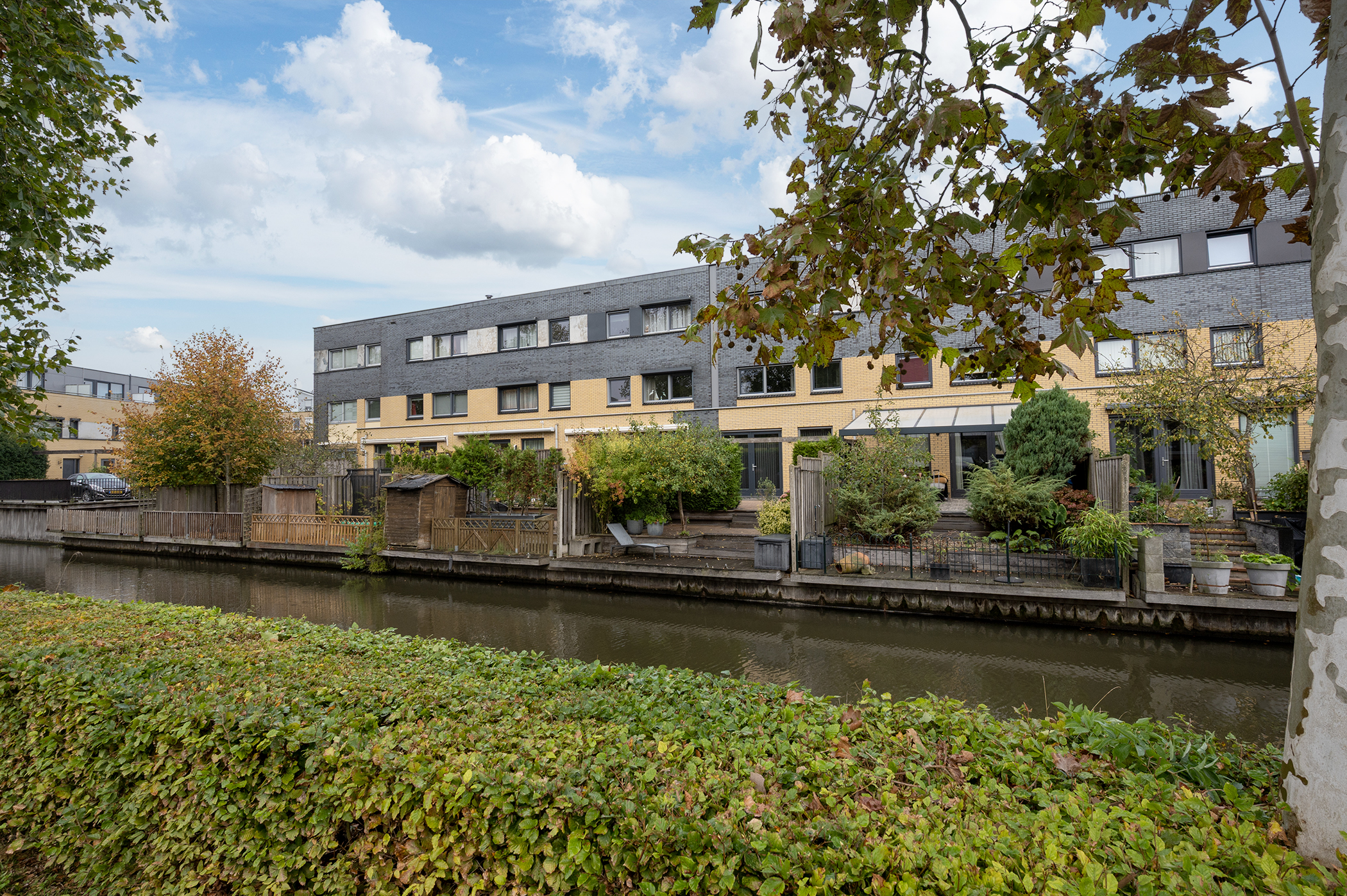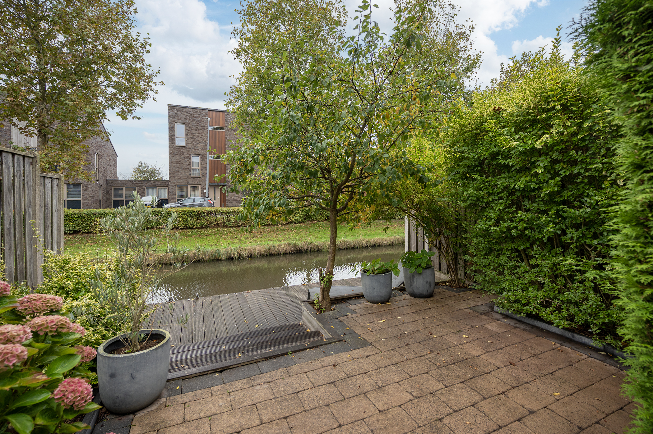 – Sunny south-facing garden bordering a waterway;