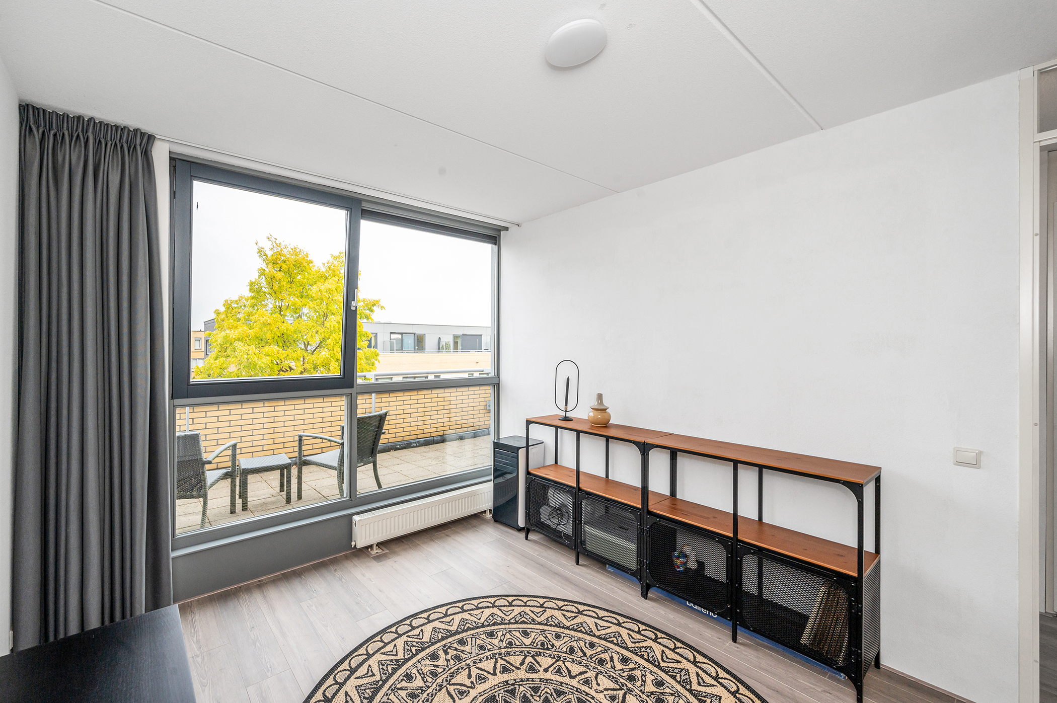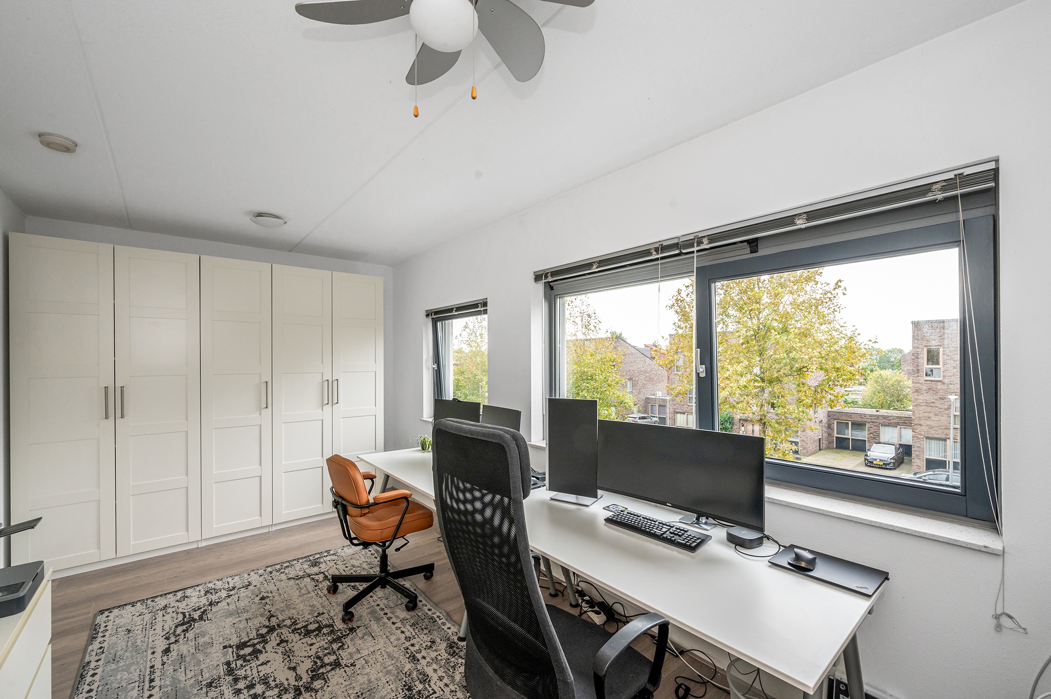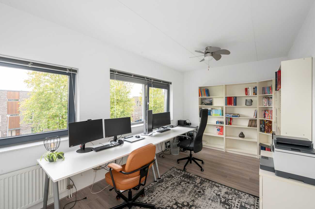 On this floor, you will find two more spacious bedrooms, a landing with storage space and the central heating system, and access to the roof terrace. Both rooms are generously sized, making the house ideal for a large family or for those working from home. The room at the front has large windows, making it wonderfully bright. The room at the rear has a beautiful view of the water and greenery at the rear of the house. The entire floor has laminate flooring. The roof terrace is accessible from the landing. This house is the width of a house, offering a lovely additional outdoor space with unobstructed views.