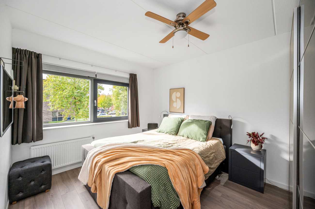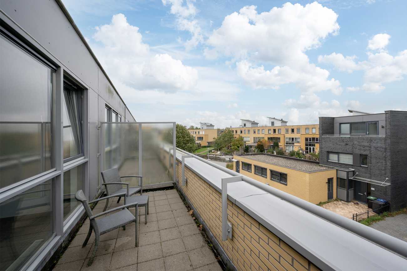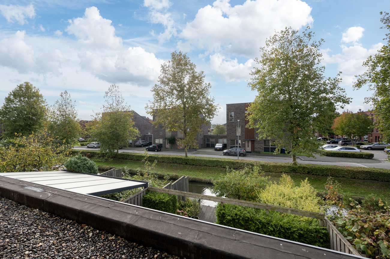 Op deze verdieping vindt u nog twee ruime slaapkamers, een overloop met bergruimte en cv-opstelling, én toegang tot het dakterras. Beide kamers zijn royaal van opzet, waardoor de woning zich goed leent voor een groot gezin of wanneer u vanuit huis werkt. De kamer aan de voorzijde is voorzien van grote raampartijen en is hierdoor heerlijk licht. De kamer aan de achterzijde kijkt mooi uit over het water en groen aan de achterzijde van de woning. De gehele verdieping is voorzien van een laminaatvloer. Vanaf de overloop bereikt u het woning brede dakterras, dus een leuke extra buitenruimte met vrij uitzicht.