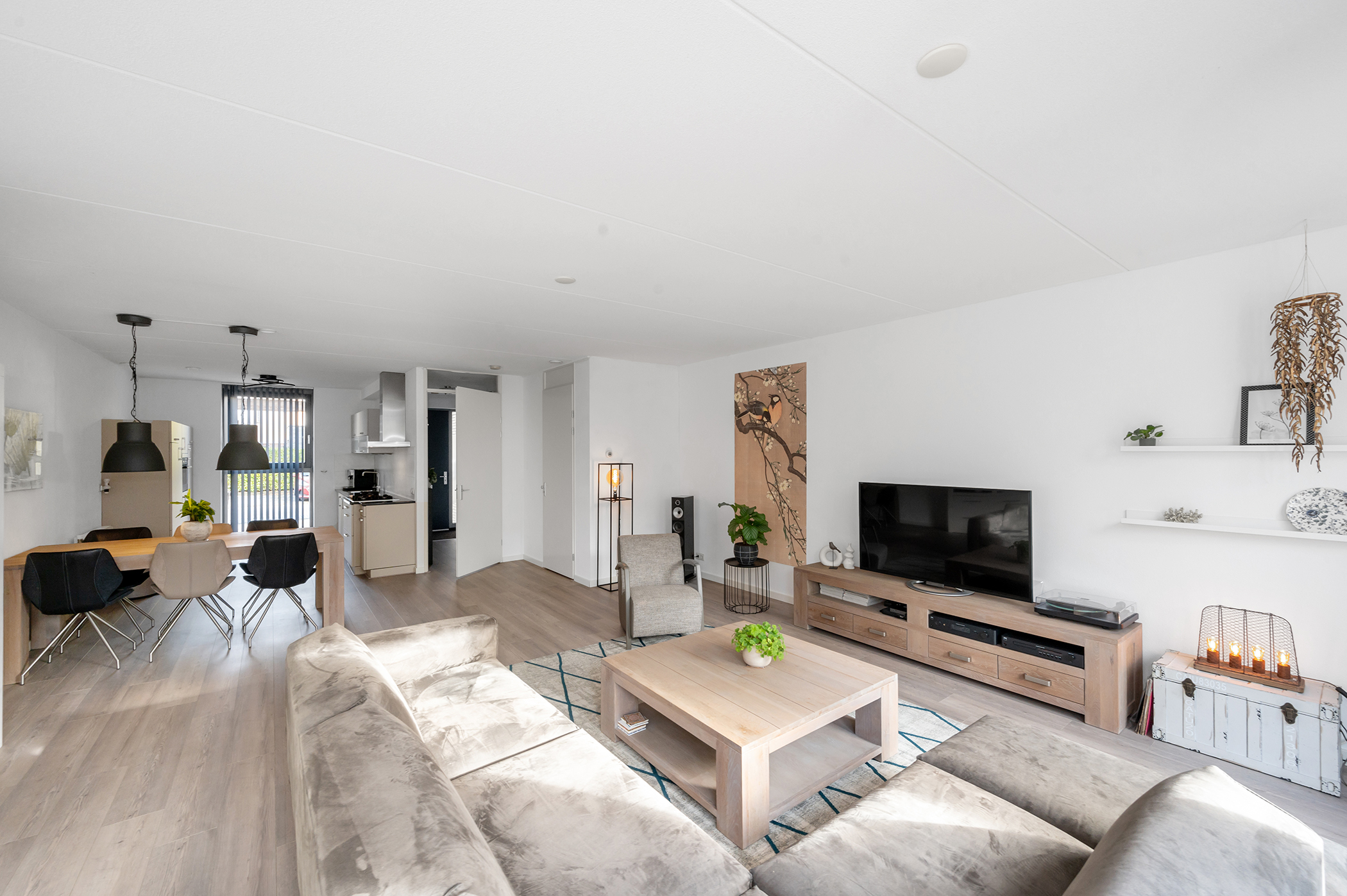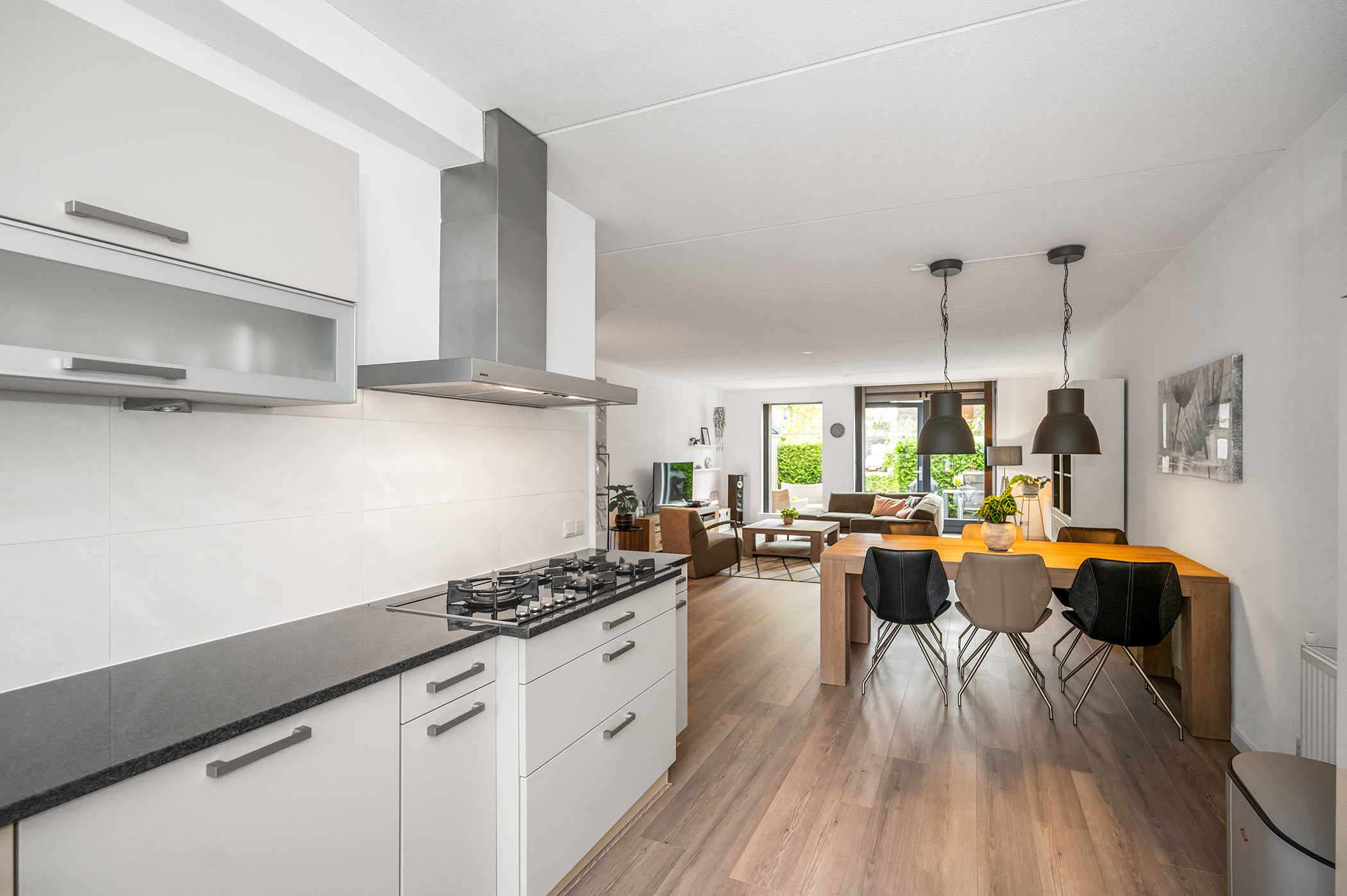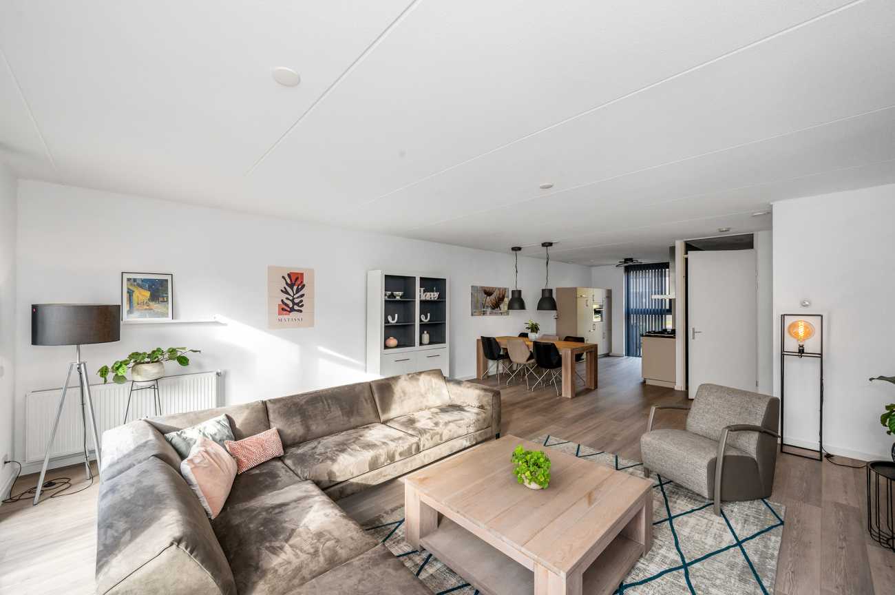 – Ruime, uitgebouwde woonkamer met open keuken;