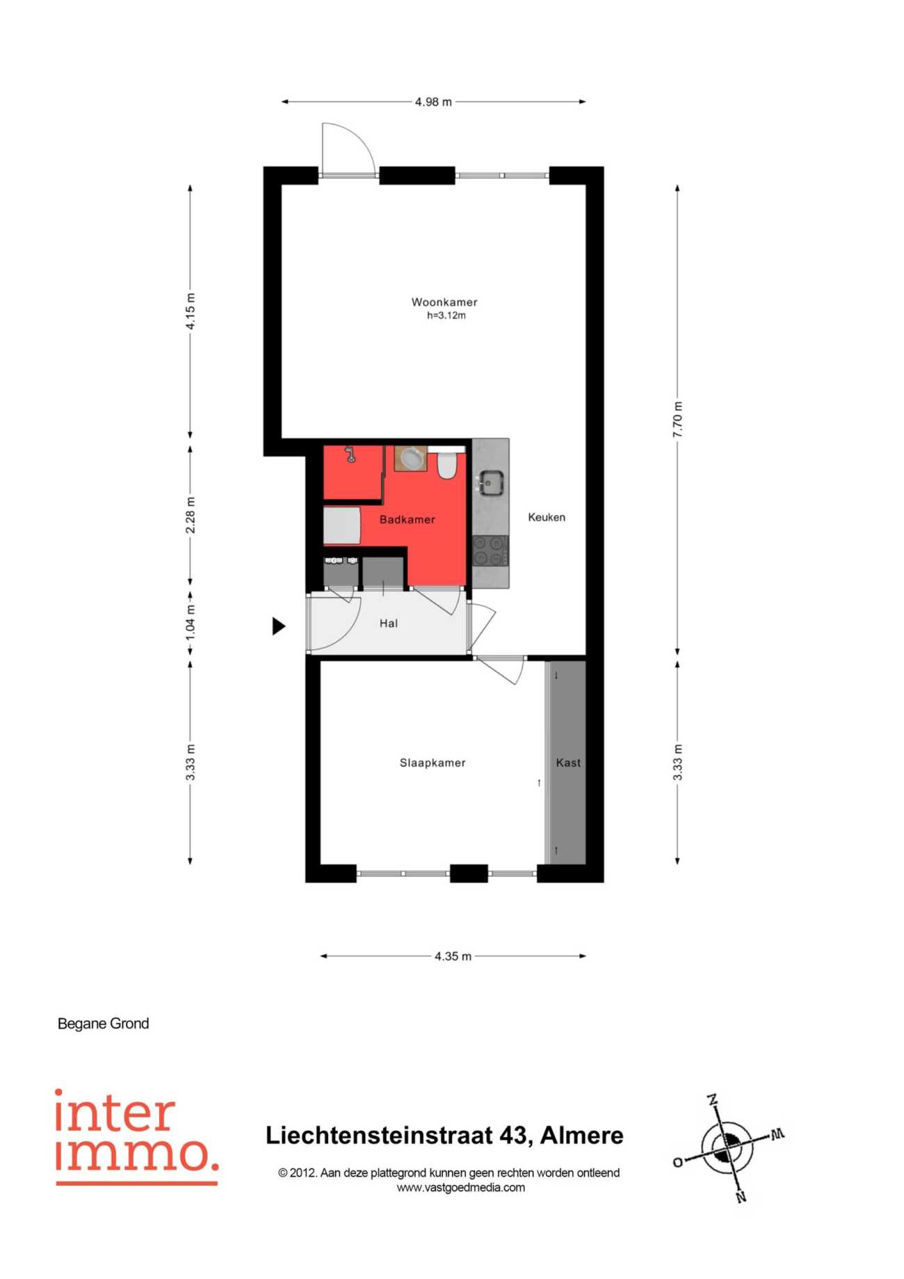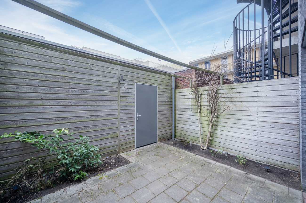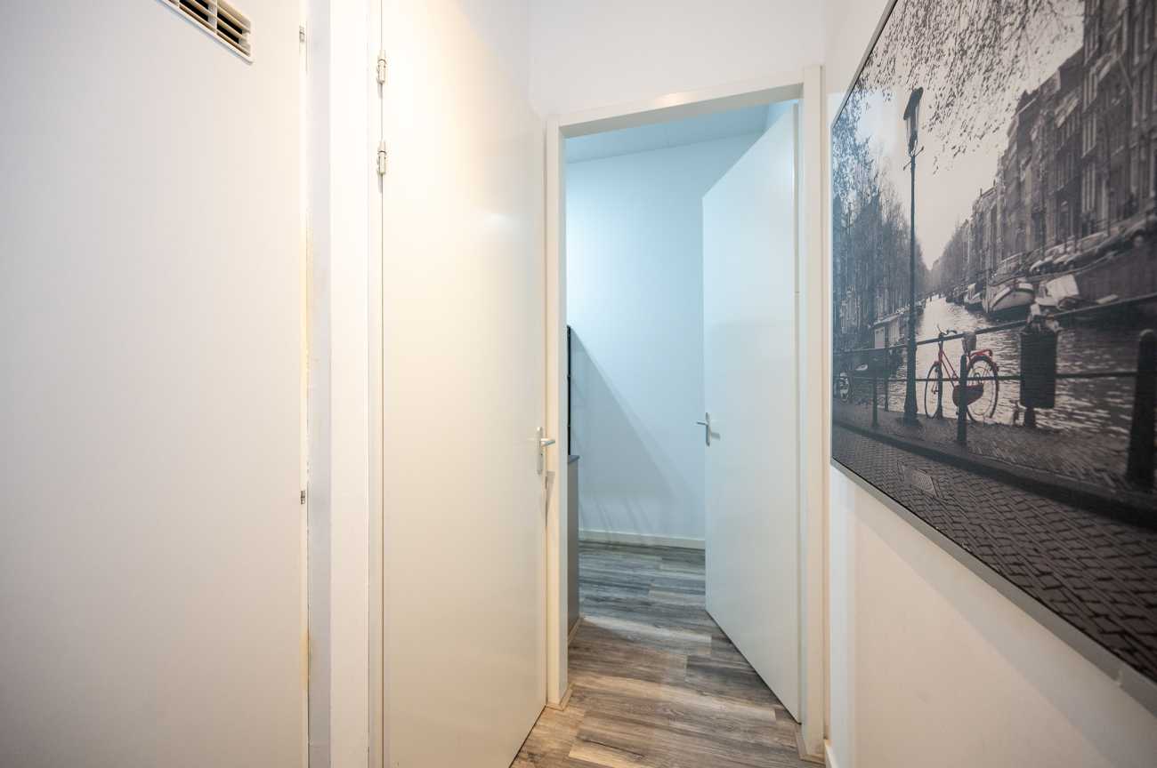 Through the entrance, you enter the hall with access to the meter cupboard, bathroom, bedroom, and open-plan kitchen with living room. The cozy living room faces the garden, and the high ceilings give the apartment a spacious feel. A patio door leads to the back garden with a storage shed. Here you can relax and enjoy the outdoors. The open-plan kitchen is centrally located in the house and features various built-in appliances, including a dishwasher, fridge-freezer, hob, extractor fan, and ample storage space. The fully tiled bathroom has a walk-in shower, sink, wall-hung toilet, radiator, and washing machine connection. The spacious bedroom is located at the front of the house, spanning the entire width of the house. This room features a custom-made, wall-to-wall wardrobe. Its height provides ample storage space, making it ideal for storing everything. The entire apartment has neat laminate flooring.