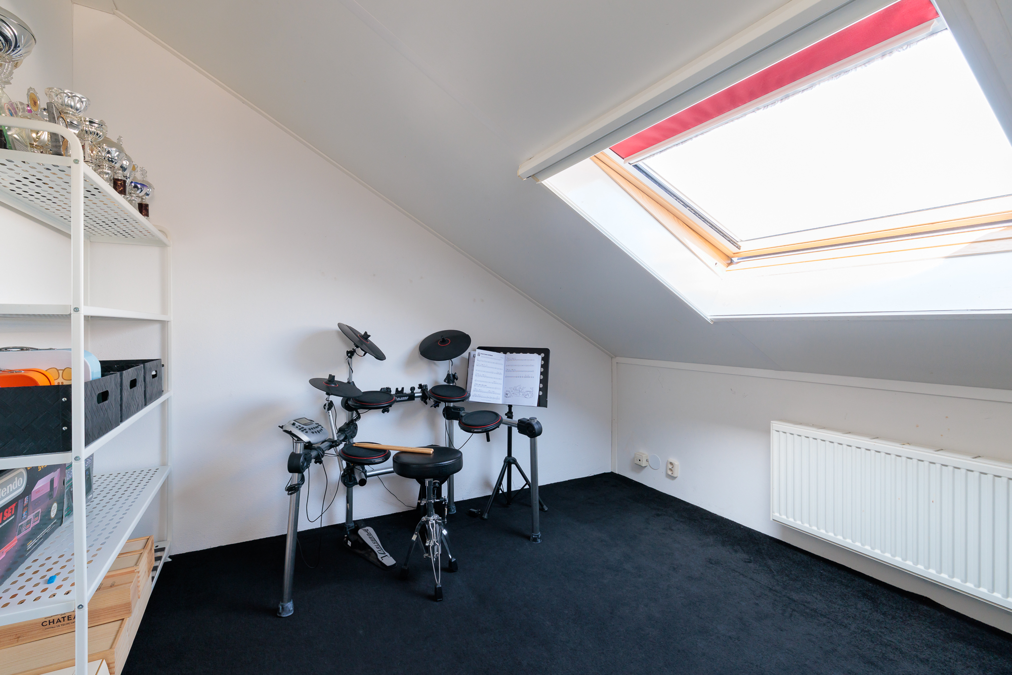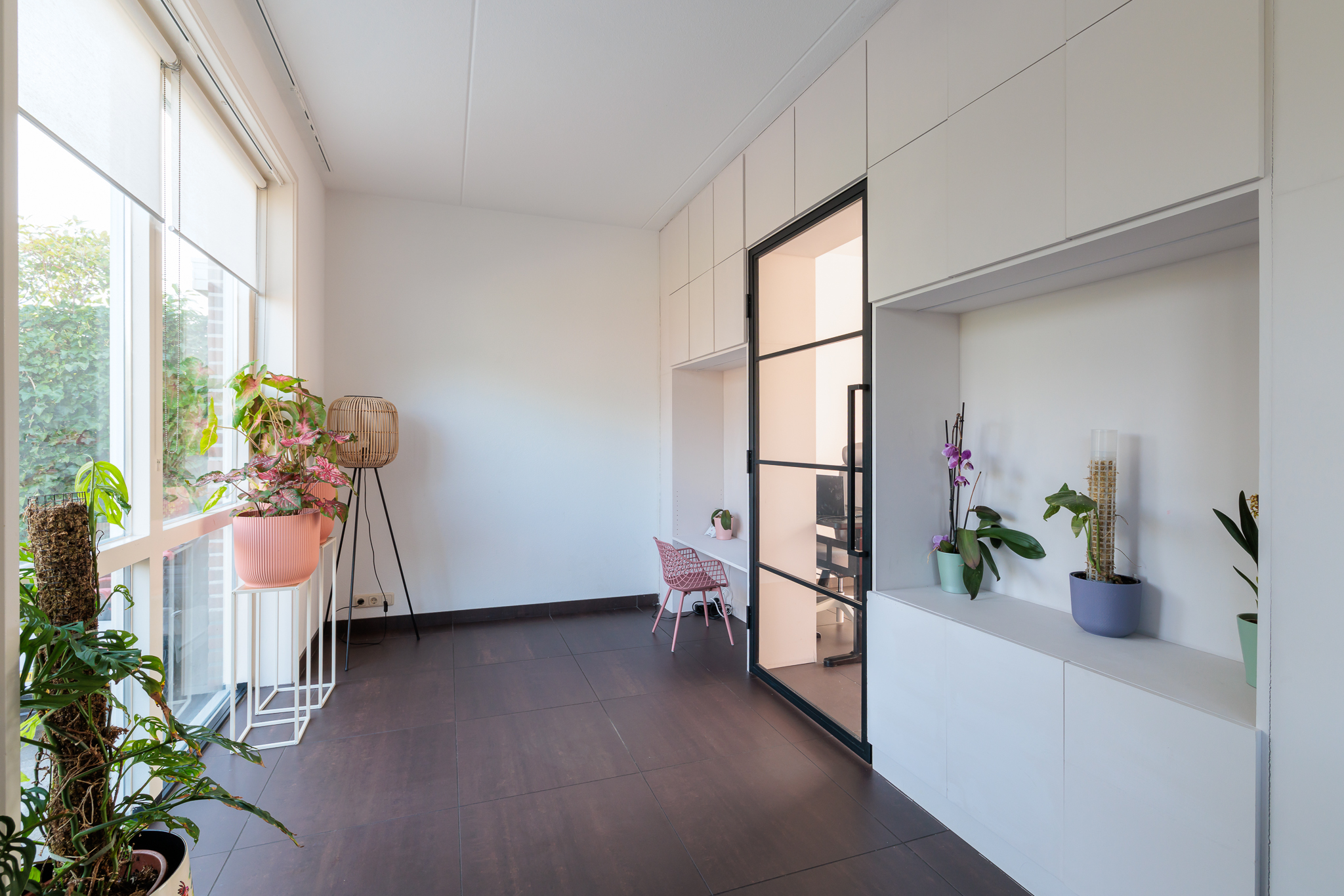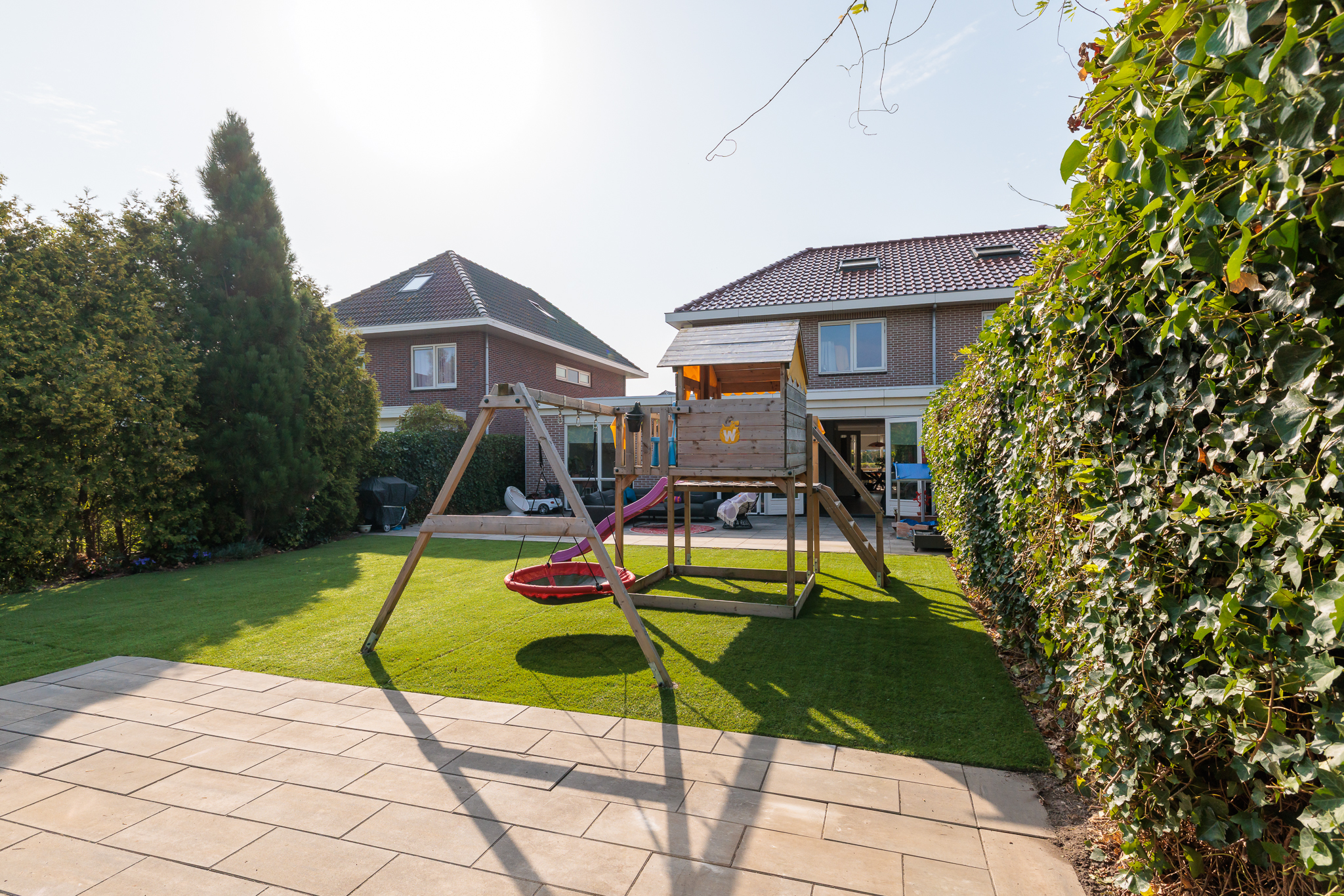 The house features a beautifully landscaped backyard, approximately 20 meters deep and 11 meters wide. This generous layout offers plenty of space and privacy. The garden is functionally and practically designed with several patios, providing a pleasant spot to lounge at any time of the day. Various shrubs surround the garden, creating a good balance between greenery and the surrounding area. In the center, you’ll find a large lawn with a playhouse and swings, providing a fun and safe play area for children. The depth of the garden and its northwesterly orientation make it very sunny, allowing you to enjoy it from morning to evening in good weather. In the back corner of the garden is a detached 15 m² garden office, currently used as a home gym, but easily adaptable for other purposes. It is fully insulated, fitted with uPVC window frames and a door with high-efficiency glass, and constructed of low-maintenance materials. Air conditioning makes this garden office easy to cool or heat, offering ample opportunities for customization.