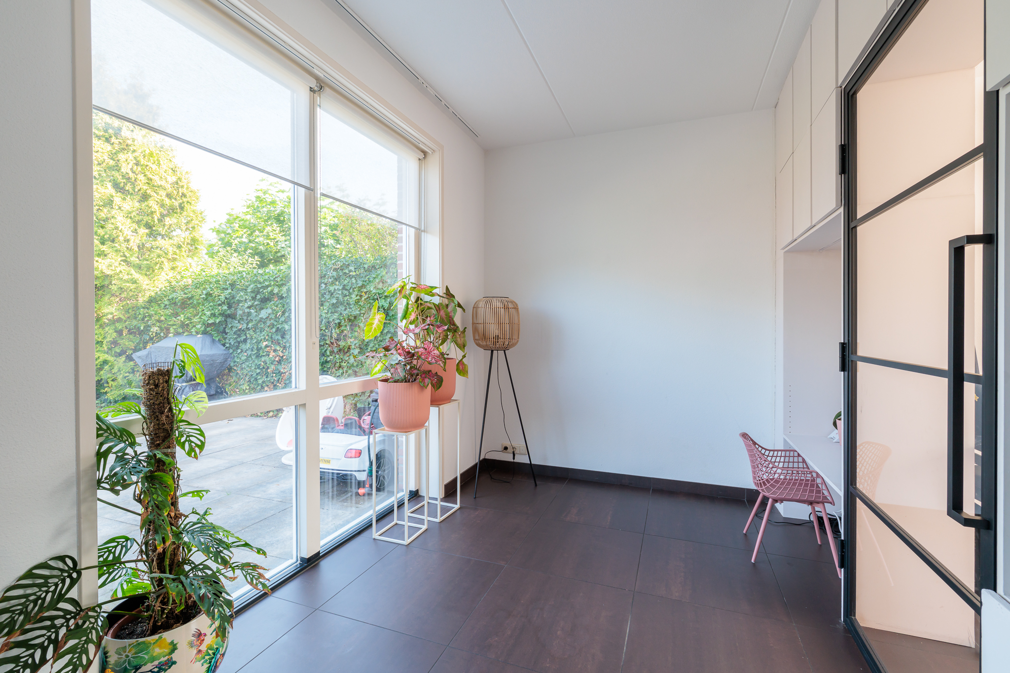 – Extra woon-/werk-/slaapkamer op de begane grond met eigen entree, toegankelijk vanaf de woonkamer én buitenzijde van de woning;