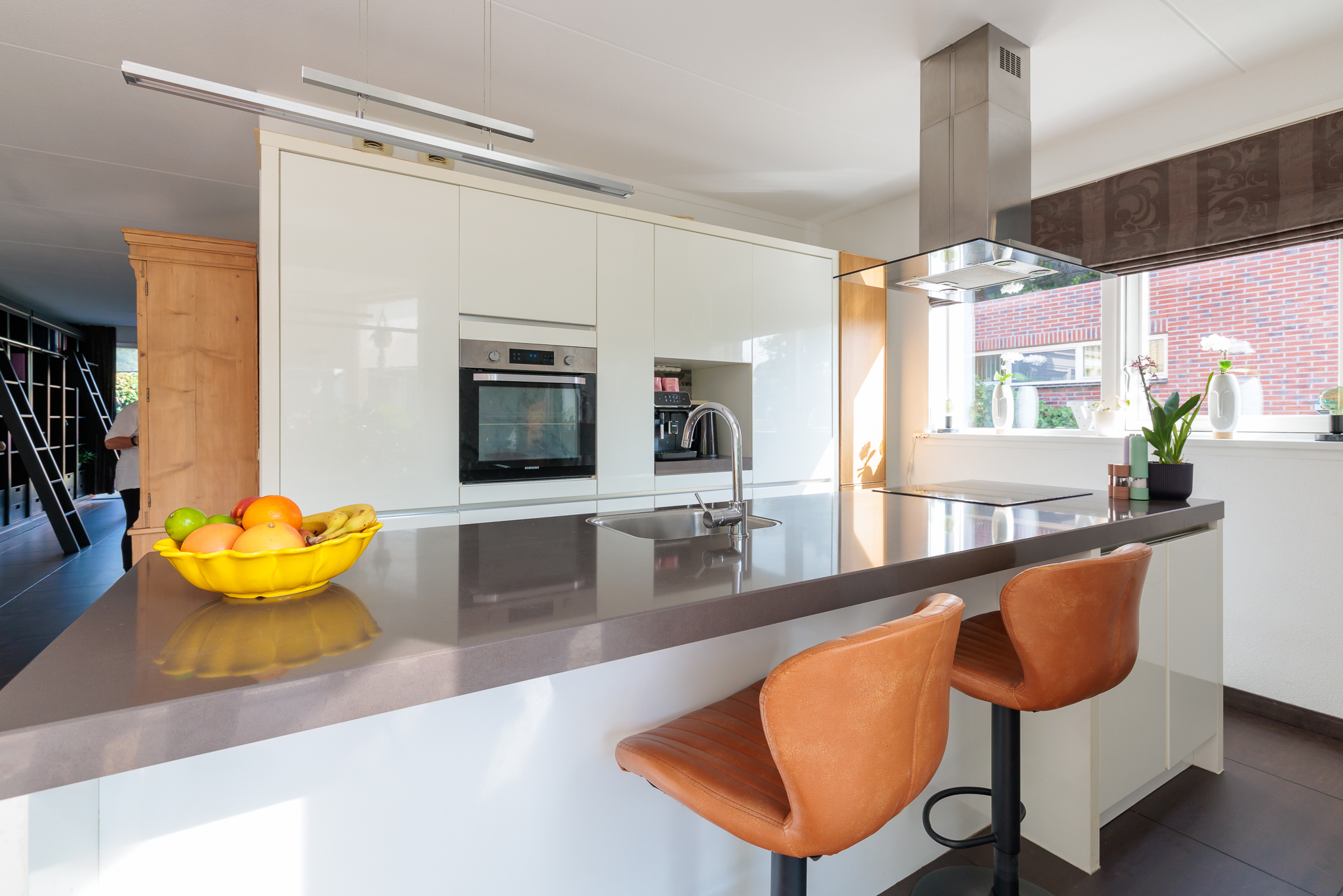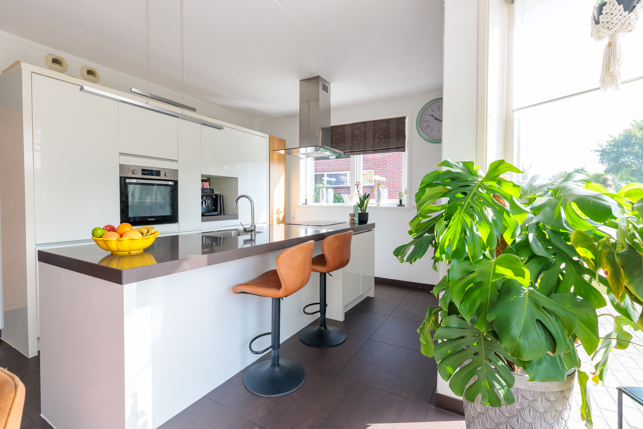– Gezellige woonkeuken met kookeiland en karakteristieke erker;
