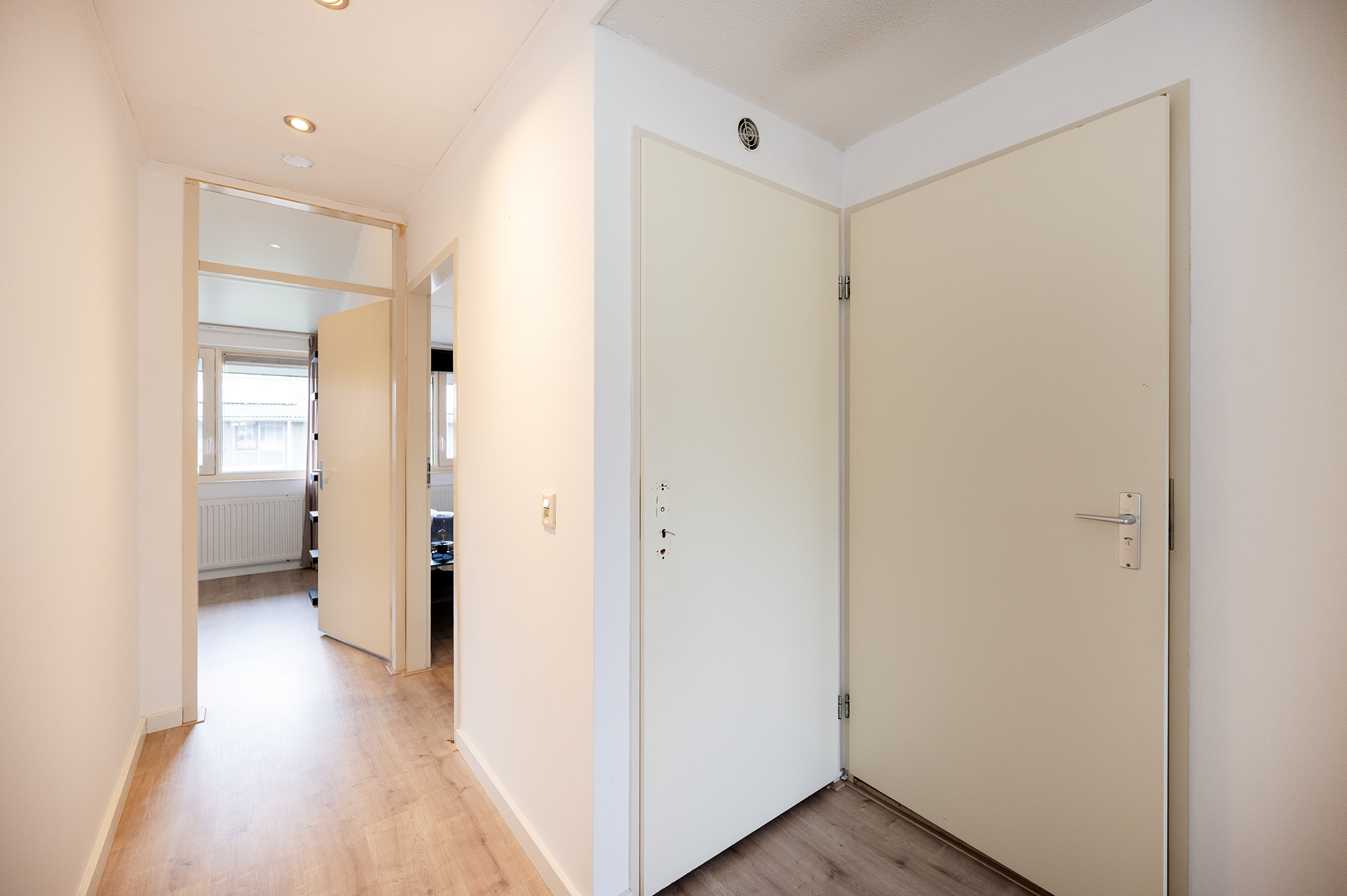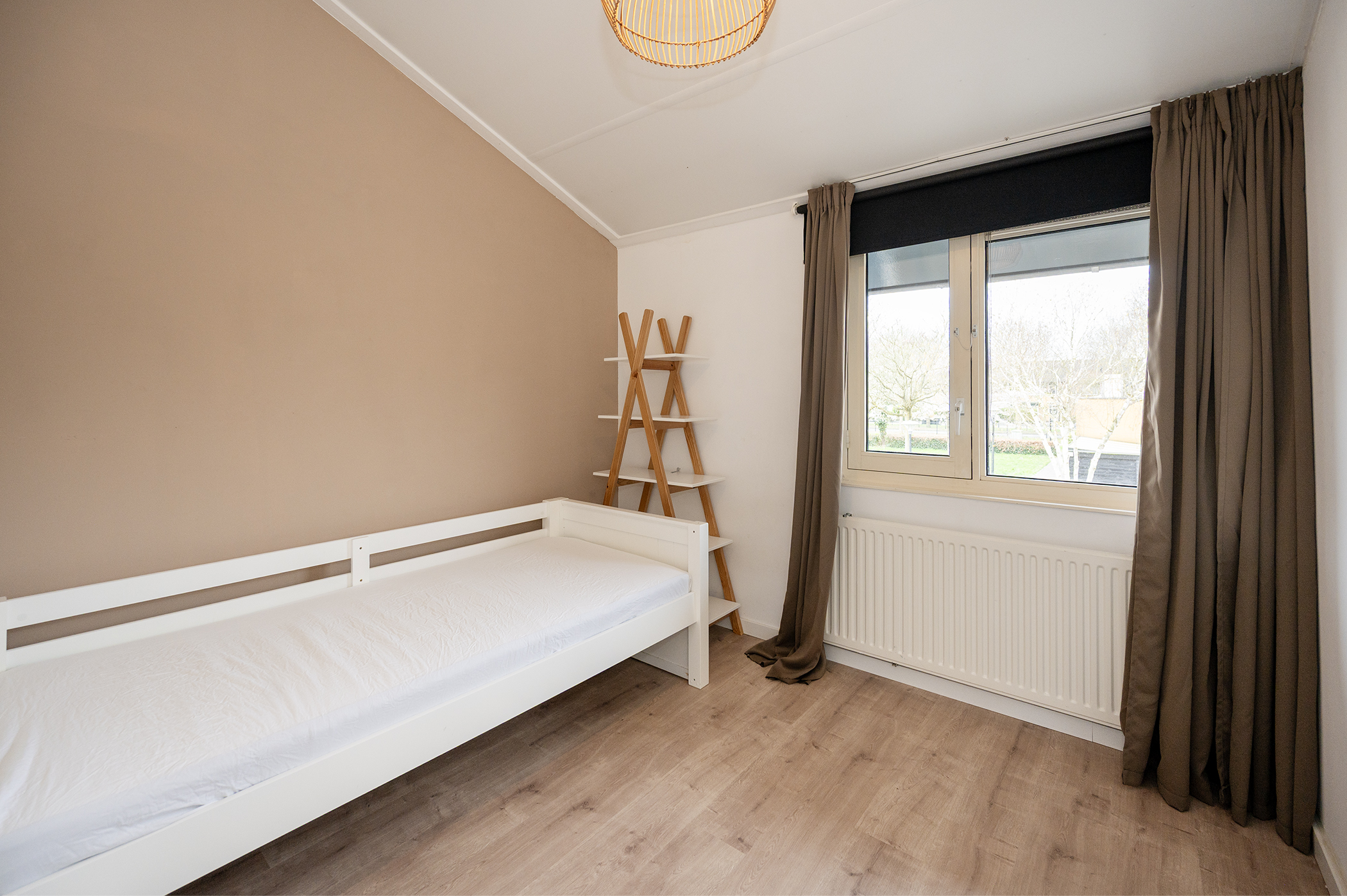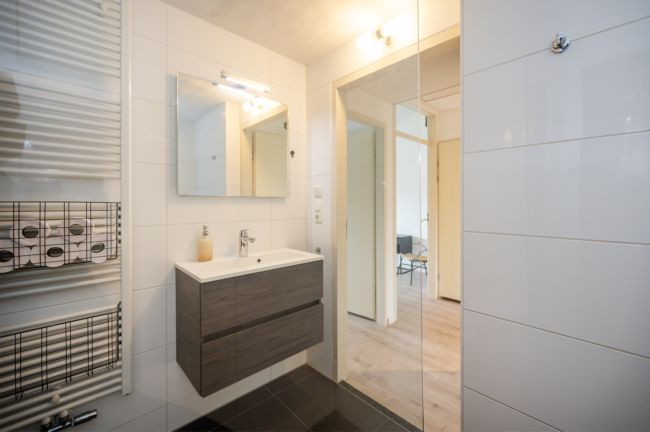 Op deze verdieping bevinden zich maar liefst vier slaapkamers, stuk voor stuk van een goed en praktisch formaat. De kamers zijn flexibel in te delen en daardoor geschikt voor diverse doeleinden, zoals een ouderslaapkamer, kinderkamers, een thuiswerkplek of een hobbyruimte. Dankzij de aanwezige raampartijen profiteren de slaapkamers van een prettige lichtinval, wat zorgt voor een aangename en comfortabele sfeer. De volledig betegelde badkamer is netjes afgewerkt en van alle gemakken voorzien. U treft hier een ruime inloopdouche, een modern hangend toilet en een wastafel met bijpassend wastafelmeubel, wat zorgt voor voldoende opbergruimte voor uw toiletartikelen. Daarnaast is de badkamer uitgerust met een radiator, waardoor de ruimte ook in de koudere maanden comfortabel warm blijft. De indeling is praktisch en biedt alles wat u nodig heeft voor uw dagelijkse verzorging.