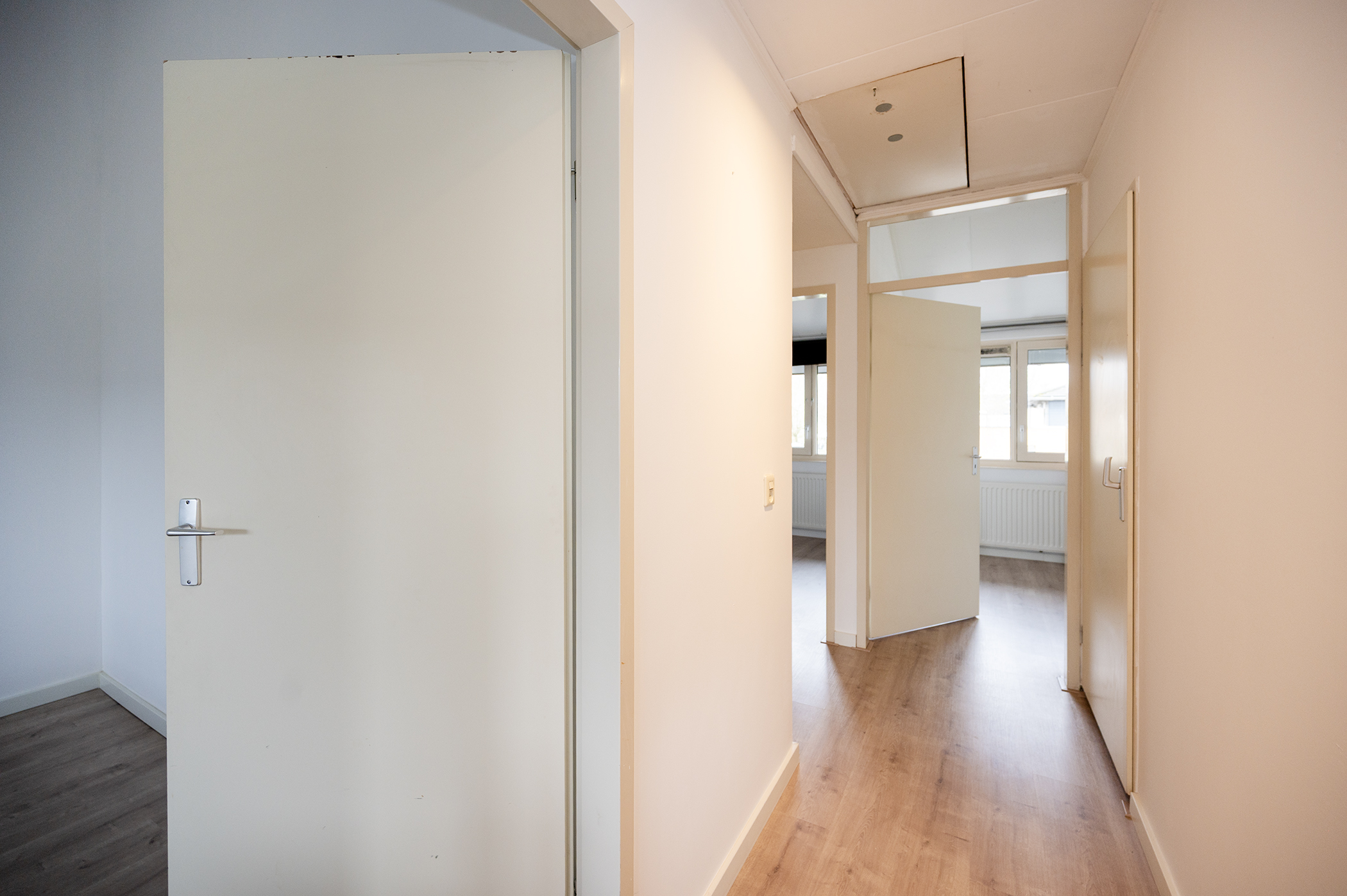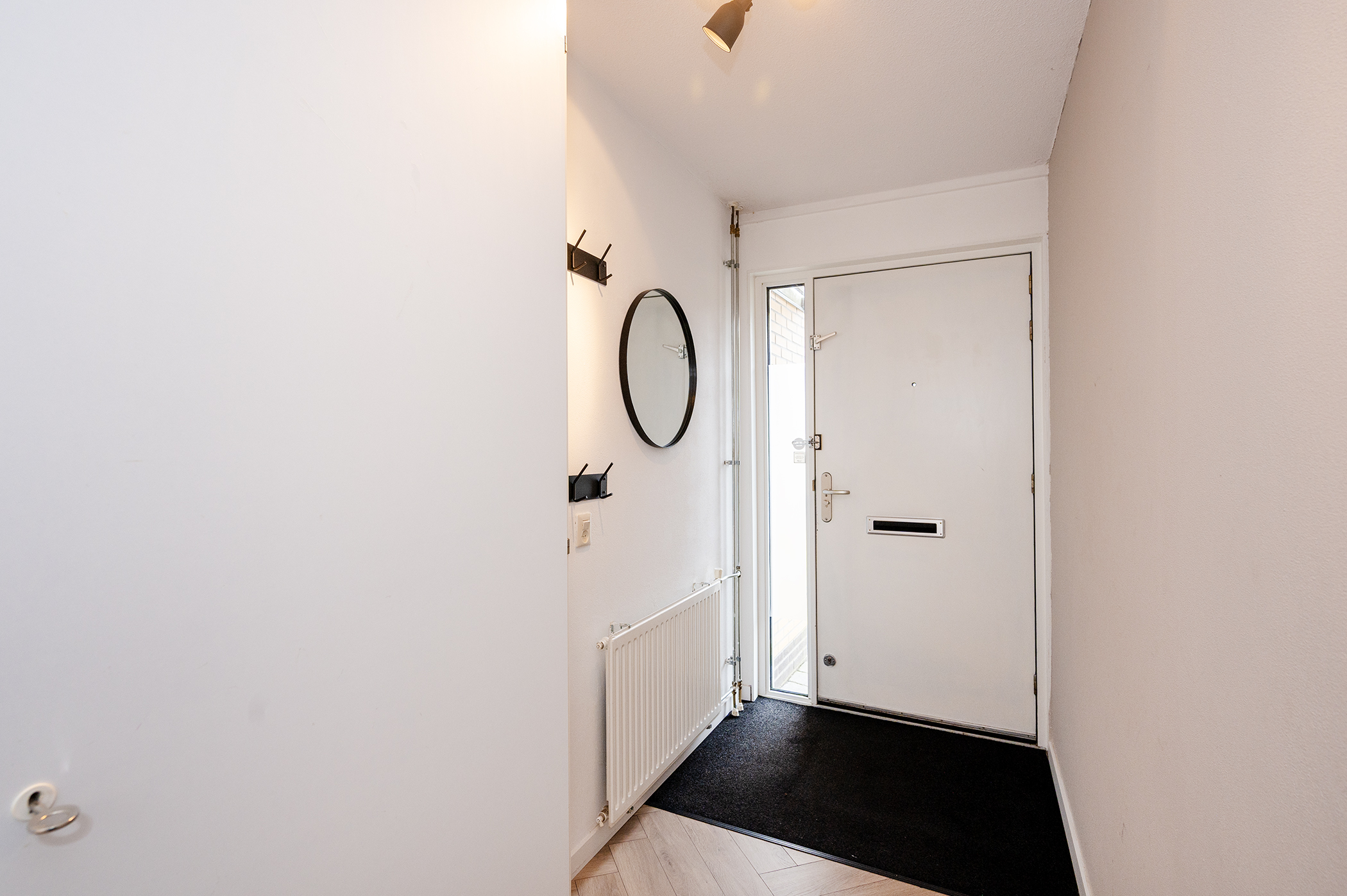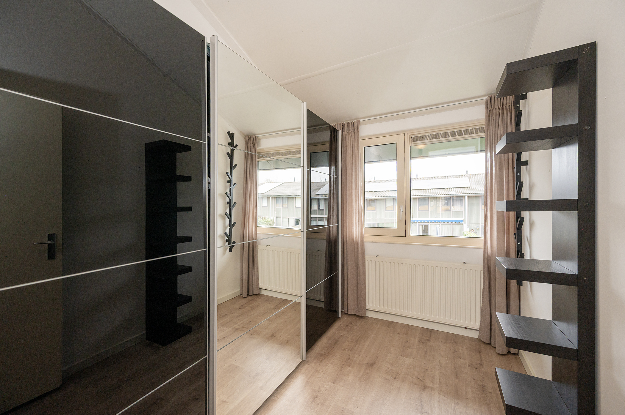 Op deze verdieping bevinden zich maar liefst vier slaapkamers, stuk voor stuk van een goed en praktisch formaat. De kamers zijn flexibel in te delen en daardoor geschikt voor diverse doeleinden, zoals een ouderslaapkamer, kinderkamers, een thuiswerkplek of een hobbyruimte. Dankzij de aanwezige raampartijen profiteren de slaapkamers van een prettige lichtinval, wat zorgt voor een aangename en comfortabele sfeer. De volledig betegelde badkamer is netjes afgewerkt en van alle gemakken voorzien. U treft hier een ruime inloopdouche, een modern hangend toilet en een wastafel met bijpassend wastafelmeubel, wat zorgt voor voldoende opbergruimte voor uw toiletartikelen. Daarnaast is de badkamer uitgerust met een radiator, waardoor de ruimte ook in de koudere maanden comfortabel warm blijft. De indeling is praktisch en biedt alles wat u nodig heeft voor uw dagelijkse verzorging.