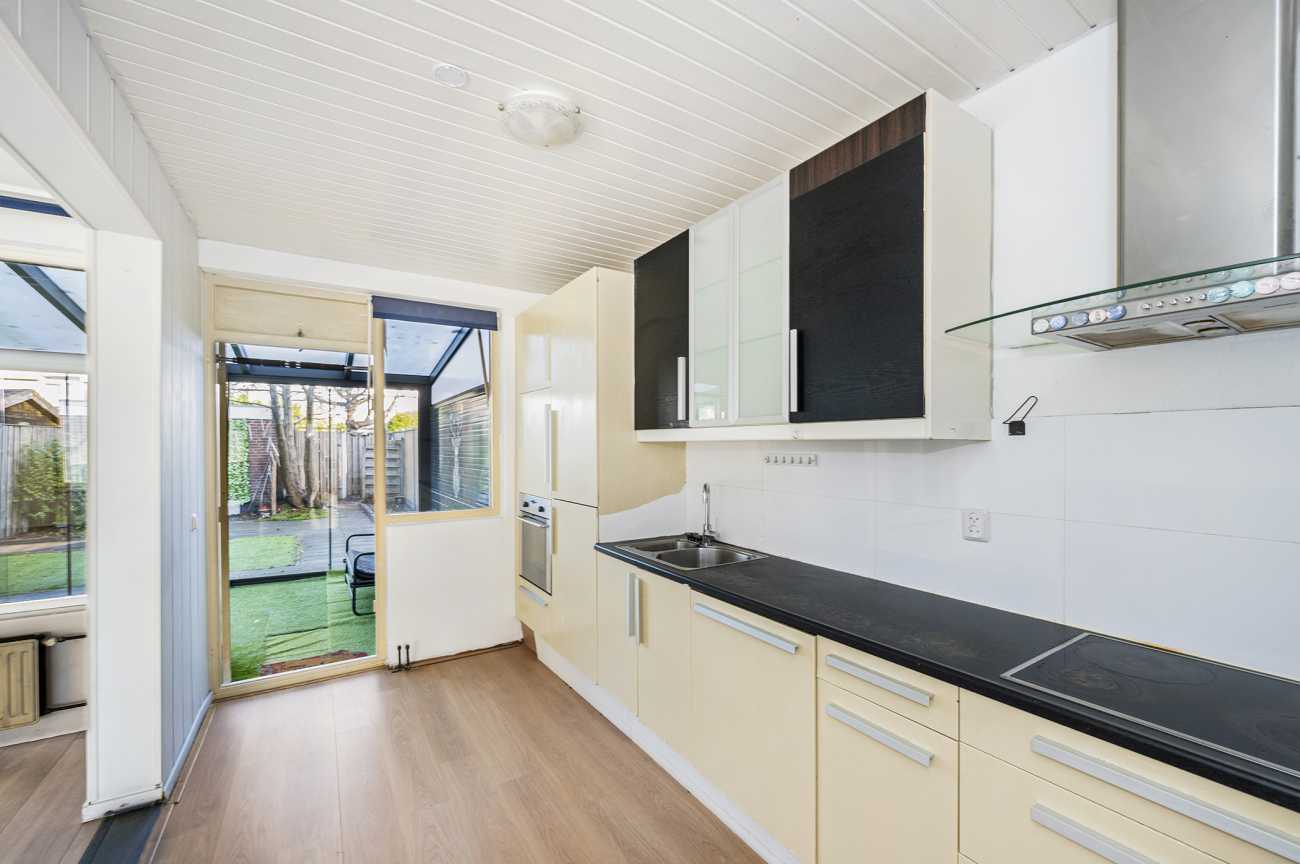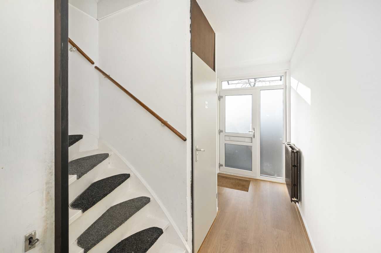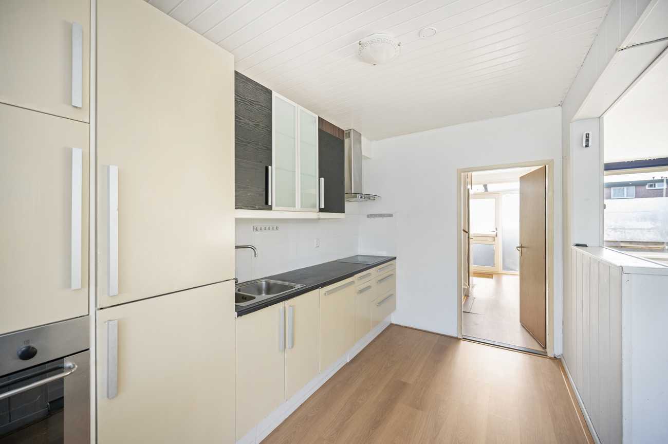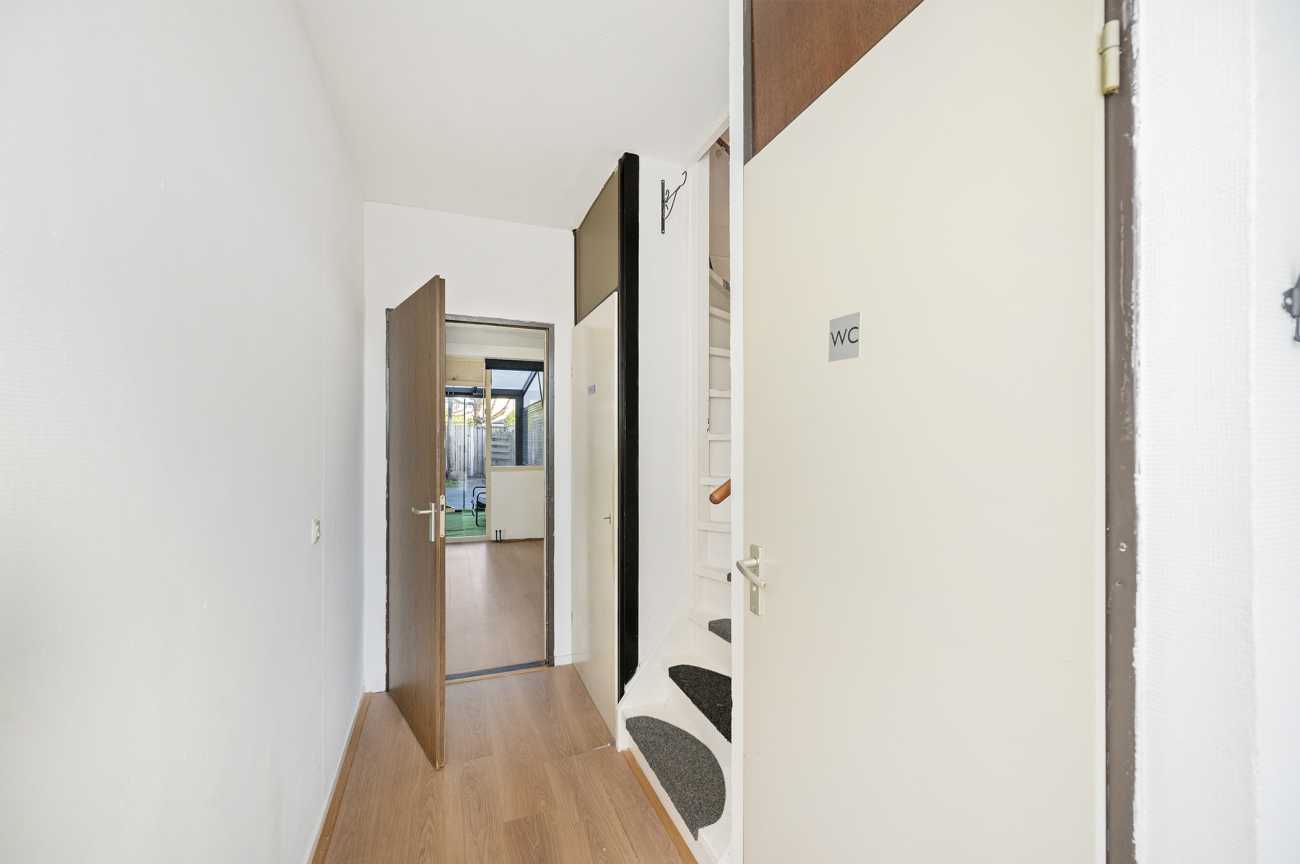 U komt binnen in de hal die toegang geeft tot het toilet, de woonkamer, meterkast en de trapopgang. De ruime tuingerichte woonkamer is voorzien van laminaatvloer. De grote raampartijen halen het daglicht royaal naar binnen en geven de woning een open, ruimtelijk gevoel. De keuken beschikt over een ingebouwde kookplaat, oven, koelkast, vriezer en vaatwasser en is deels afgescheiden van de woonkamer, wat zorgt voor een prettige balans tussen openheid en privacy.