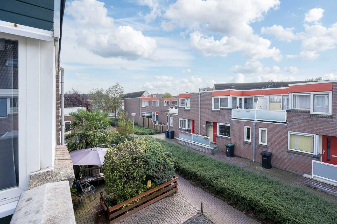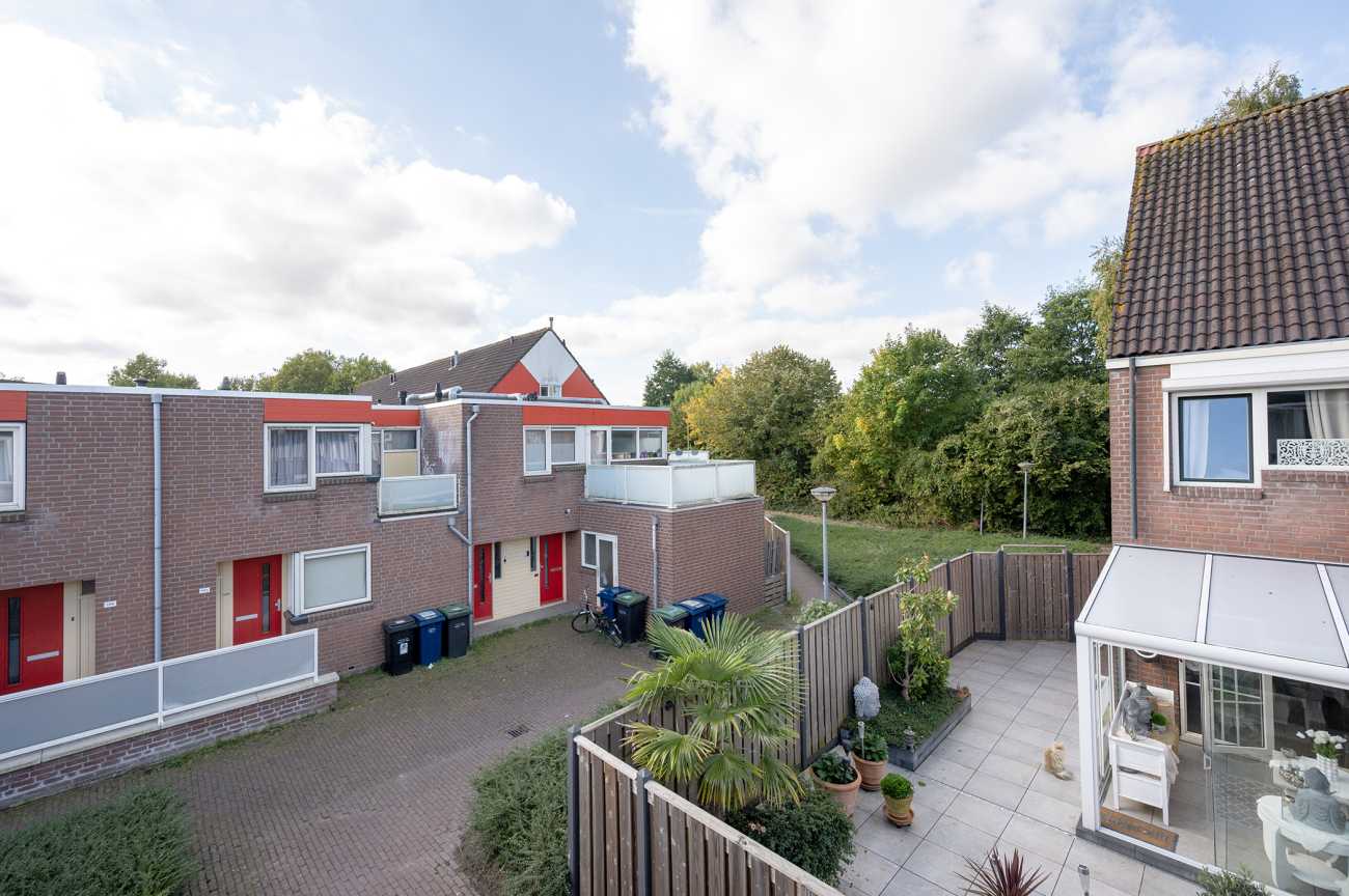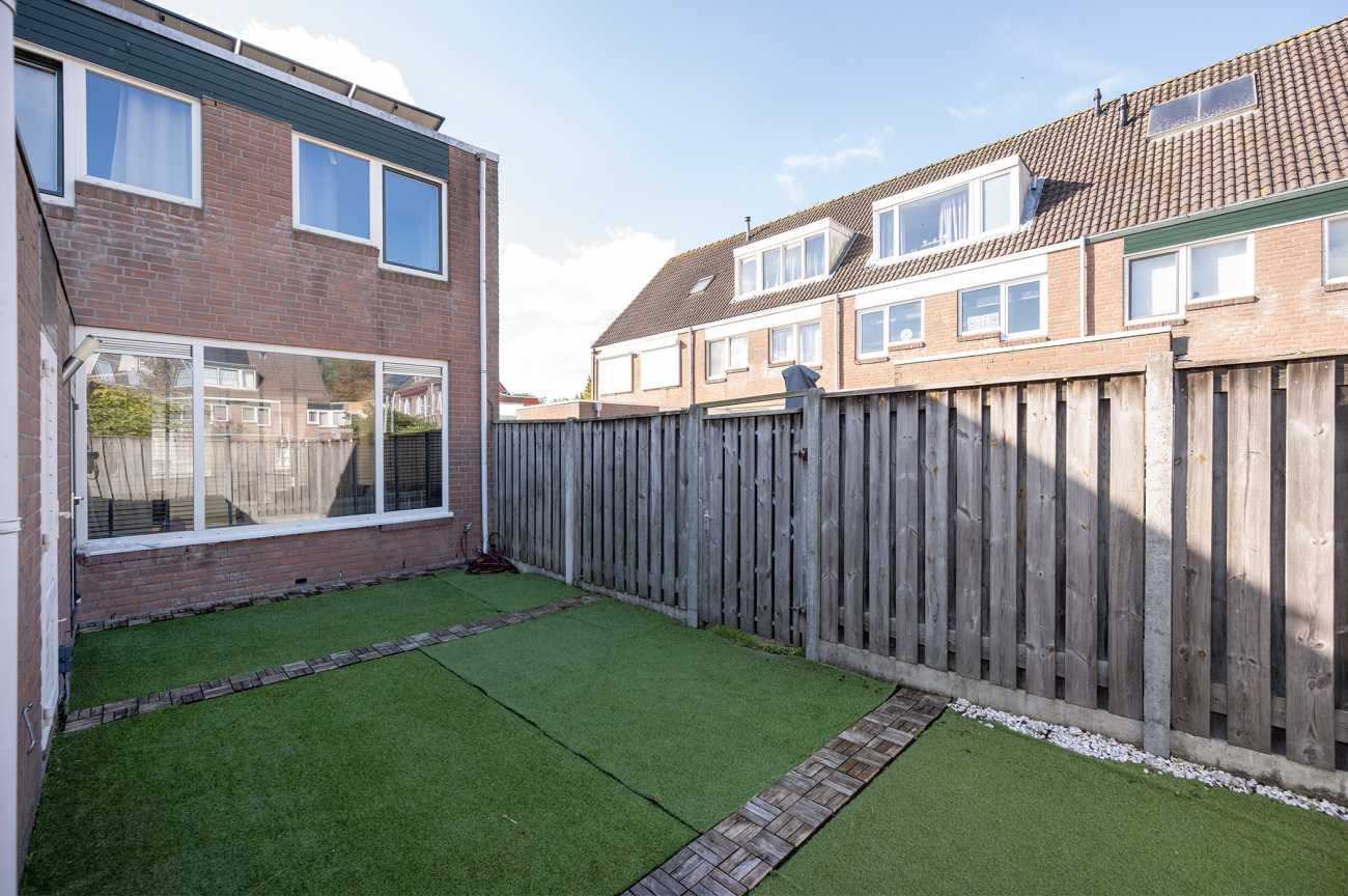 Ruime voortuin aan een autovrij pad met toegang tot de woning. Bij binnenkomst in de woning betreedt u de entreehal. Vanuit deze hal heeft u toegang tot de moderne toiletruimte, de meterkast en de trapopgang naar de eerste verdieping. Tevens is er een praktische trapkast aanwezig die extra bergruimte biedt voor bijvoorbeeld schoonmaakartikelen of provisie. De hal geeft middels een stijlvolle glazen stalen deur toegang tot de woonkamer. Deze deur draagt niet alleen bij aan een luxe uitstraling, maar zorgt ook voor een prettige lichtinval in de hal. De woonkamer is gesitueerd aan de achterzijde van de woning en is gericht op de tuin. De wanden en muren zijn glad afwerkt, wat een verzorgde indruk achter laat. Dankzij de grote raampartijen over de volledige breedte van de woning geniet deze ruimte van veel natuurlijk daglicht. Via een tuindeur is er direct toegang tot de achtertuin. Aan de voorzijde van de woning bevindt zich de royale open keuken uit 2020. Deze is uitgevoerd in een praktische hoekopstelling en voorzien van diverse inbouwapparatuur, waaronder onder andere een gasfornuis, afzuigkap, oven, koelkast, vriezer en vaatwasser. De keuken biedt voldoende werk- en opbergruimte en is ideaal voor dagelijks gebruik én voor wie graag kookt. De gehele begane grond is afgewerkt met een keurige laminaatvloer in moderne visgraat motief. De zonnige -tuin en achtertuin zijn onderhoudsarm aangelegd. De achtertuin is voorzien van praktische achterom en aangebouwde stenen schuur, welke zowel via woonkamer als tuin te bereiken is. Momenteel vindt u hier de bijkeuken met de opstelling van de wasmachine en droger. De achtertuin grenst aan een kindvriendelijk hofje met diverse speeltoestellen.