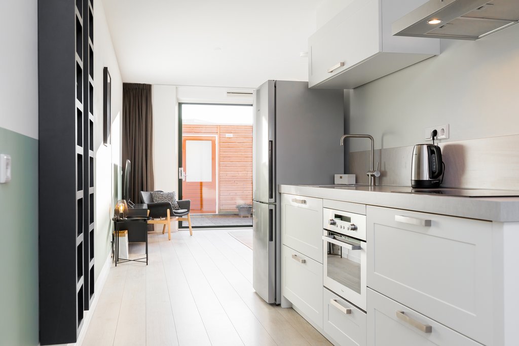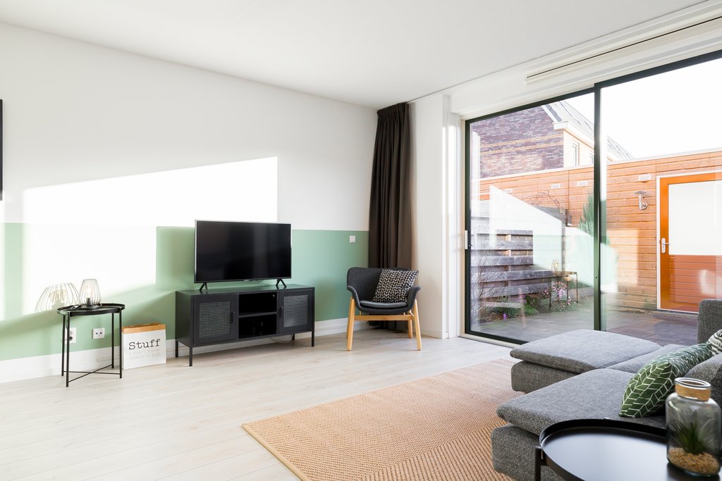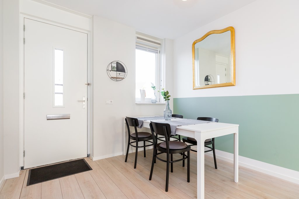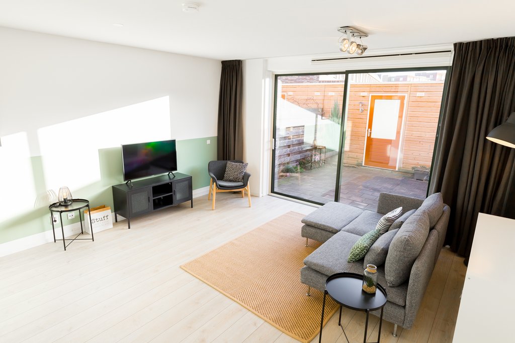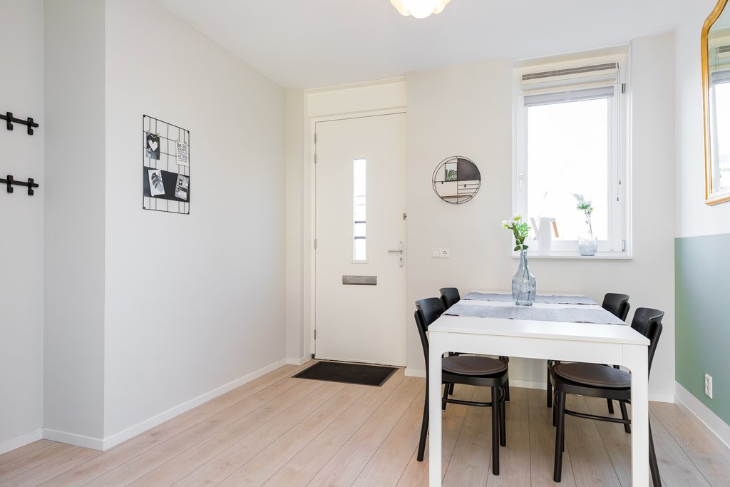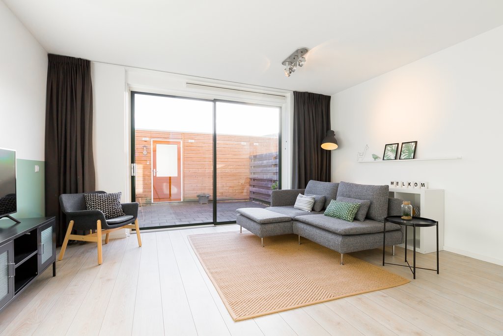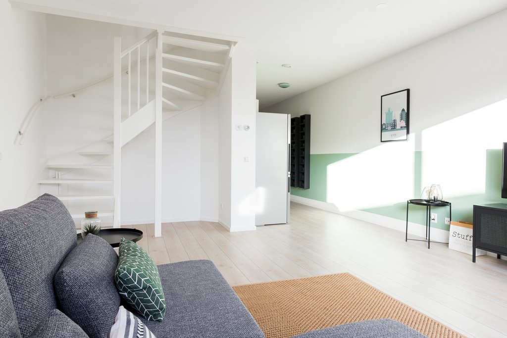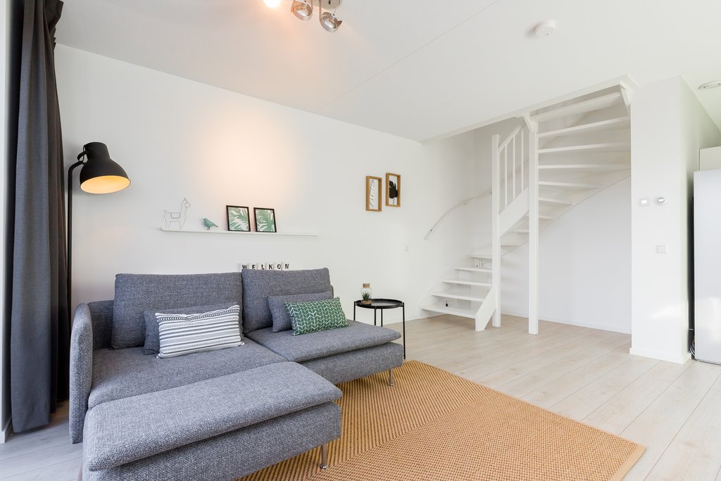 This charming duplex ground-floor/upper-floor apartment is located in the new district of Almere Poort and is offered fully furnished. As it is a split-level home, you benefit from both a sunny south-facing garden and an upper floor with 2 bedrooms, a complete bathroom, and a separate laundry room. At the front of the property, you will find a green strip with a city canal.