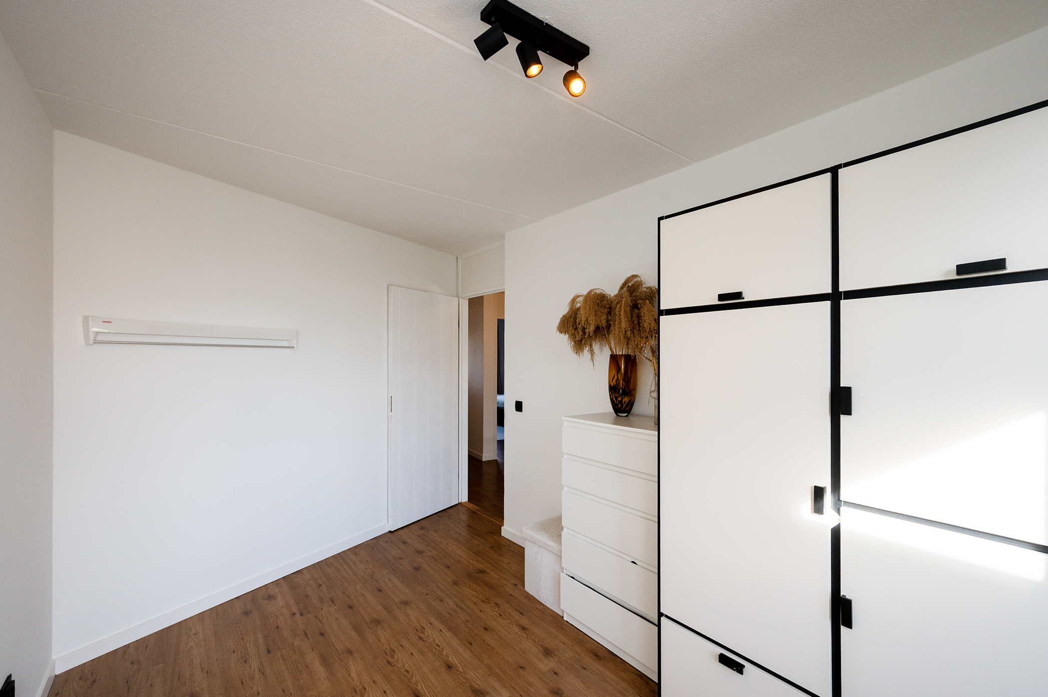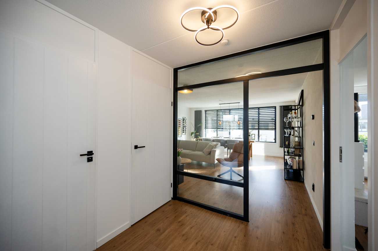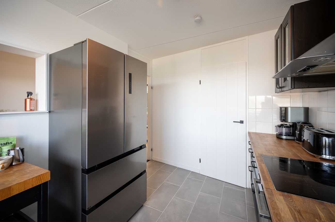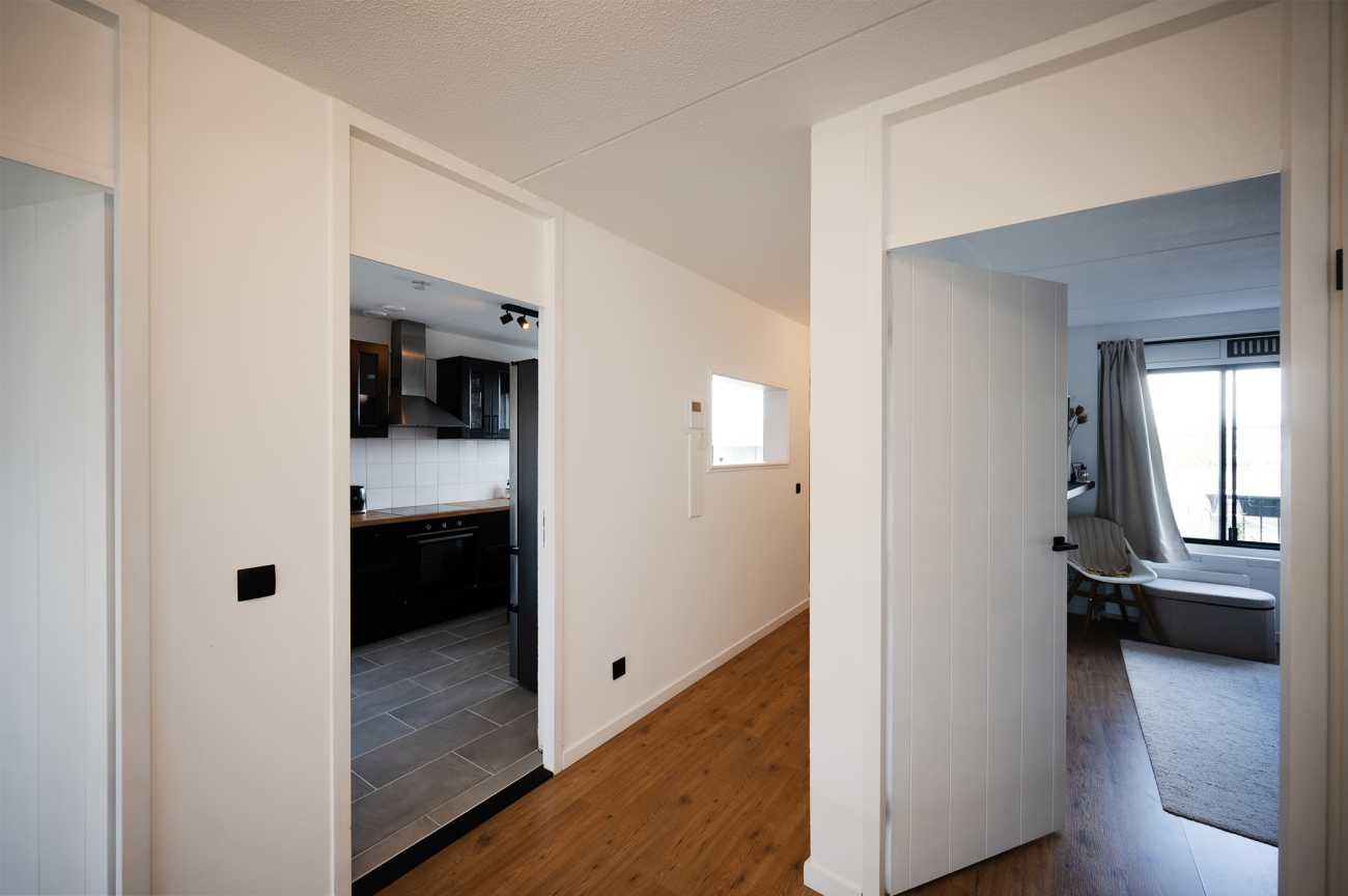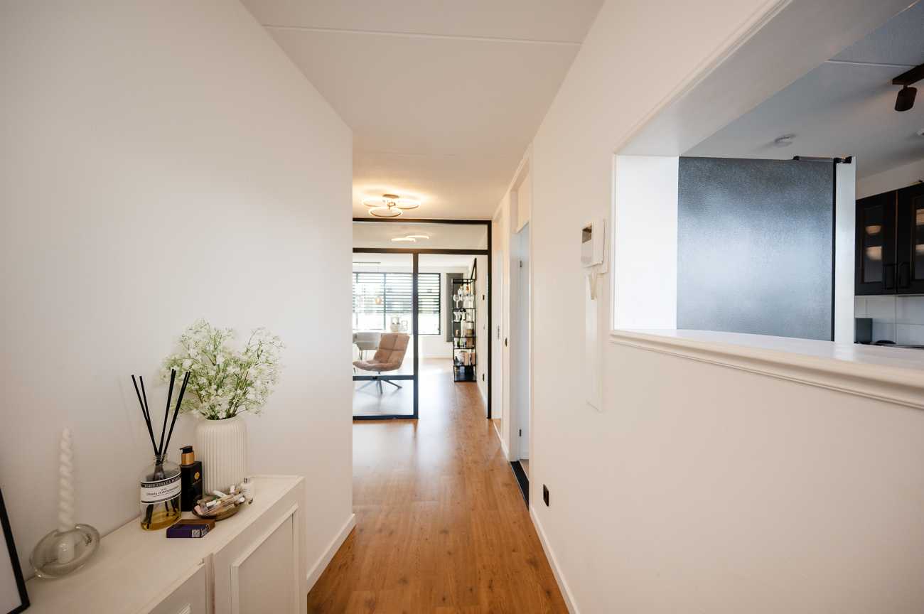 Upon entering the apartment, you enter a spacious hallway, from which all rooms are accessible. The apartment features a bright and inviting living room thanks to the large windows. From the living room, you have access to the balcony, which overlooks the shopping streets of Almere-Buiten. It faces south, so you won’t miss out on sunshine. The kitchen is located at the front of the apartment and is equipped with an electric cooktop, extractor hood, oven, and ample cupboard space for storing kitchenware and utensils. Adjacent to the kitchen is an additional storage room, offering ample space for appliances such as a washing machine and dryer. The central heating system is also located here. The apartment has two spacious bedrooms, one at the front of the apartment and the other at the rear. The rear bedroom also offers direct access to the balcony, allowing you to fully enjoy the outdoor space. The bathroom is tiled to the ceiling and equipped with a vanity and a walk-in shower. There is also a separate toilet. The apartment features laminate flooring and all walls are neatly finished, so you can unpack your moving boxes right away and start enjoying your home!