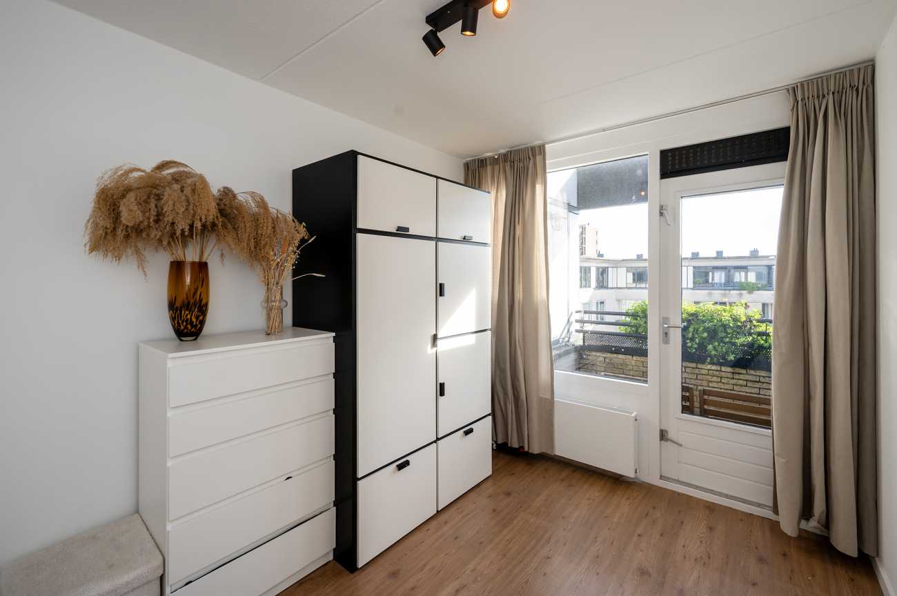 A wonderfully bright and spacious three-room apartment of approximately 86 m² in the vibrant center of Almere-Buiten. The apartment features a charming living room with a sunny balcony, two spacious bedrooms, a well-maintained kitchen, a neat bathroom with a separate toilet, and a private storage unit within the complex. Here, you’ll live among charming shops and terraces. For daily groceries or a spot of shopping, you only need to take the elevator down. A time-saving and, above all, very pleasant! The train and bus lines are literally around the corner from the complex, making it convenient if you rely on public transport. Access roads to the highway are very close by, so traveling by car is also easy. There are several parks in the area perfect for a stroll, and if you’re a true nature lover, you’re just a short distance from the Oostvaarderplassen lakes. A wonderful location for all ages!